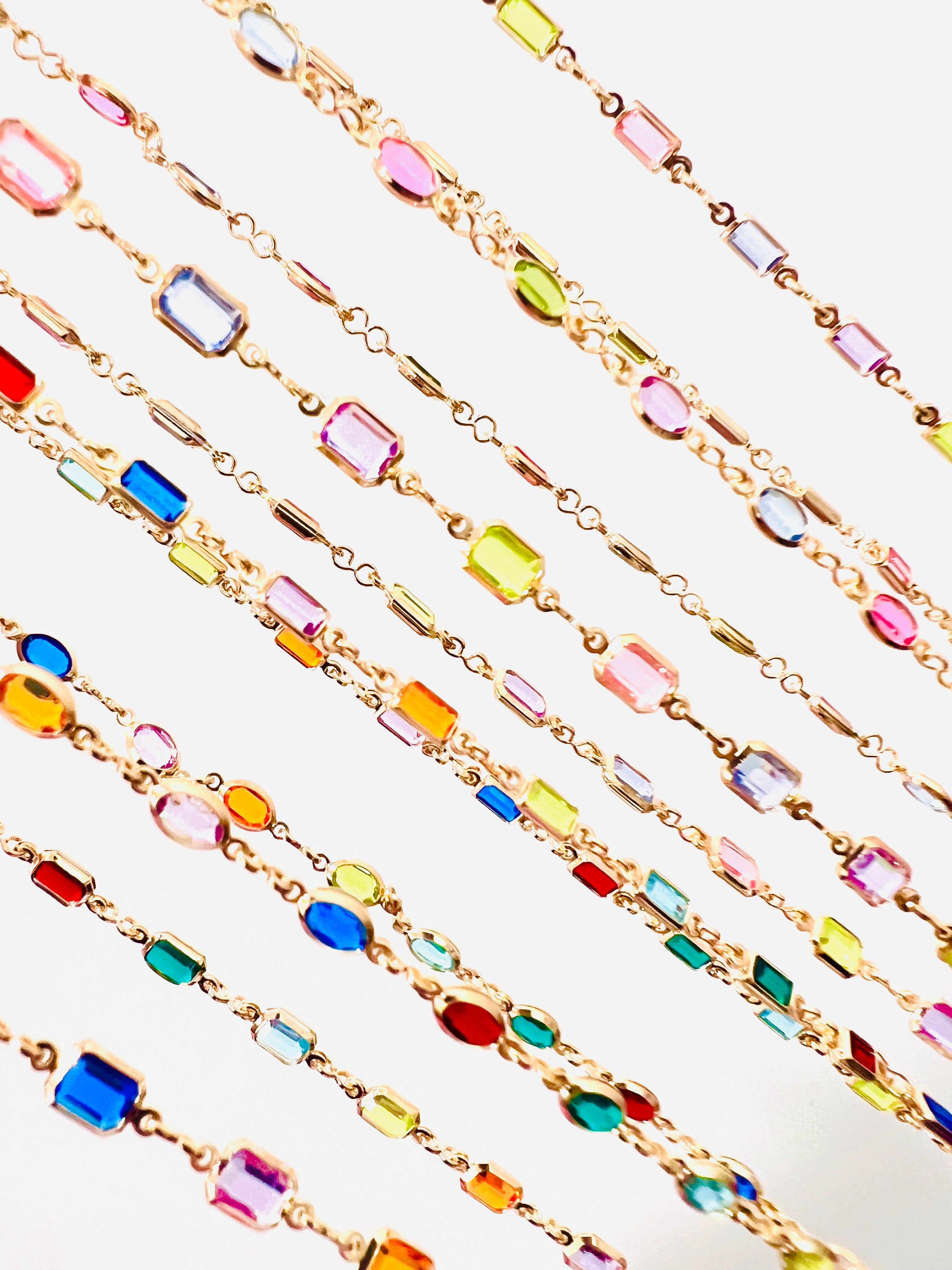 Gold Filled Rectangle Gemstone Necklace | Bold Crystal Chain