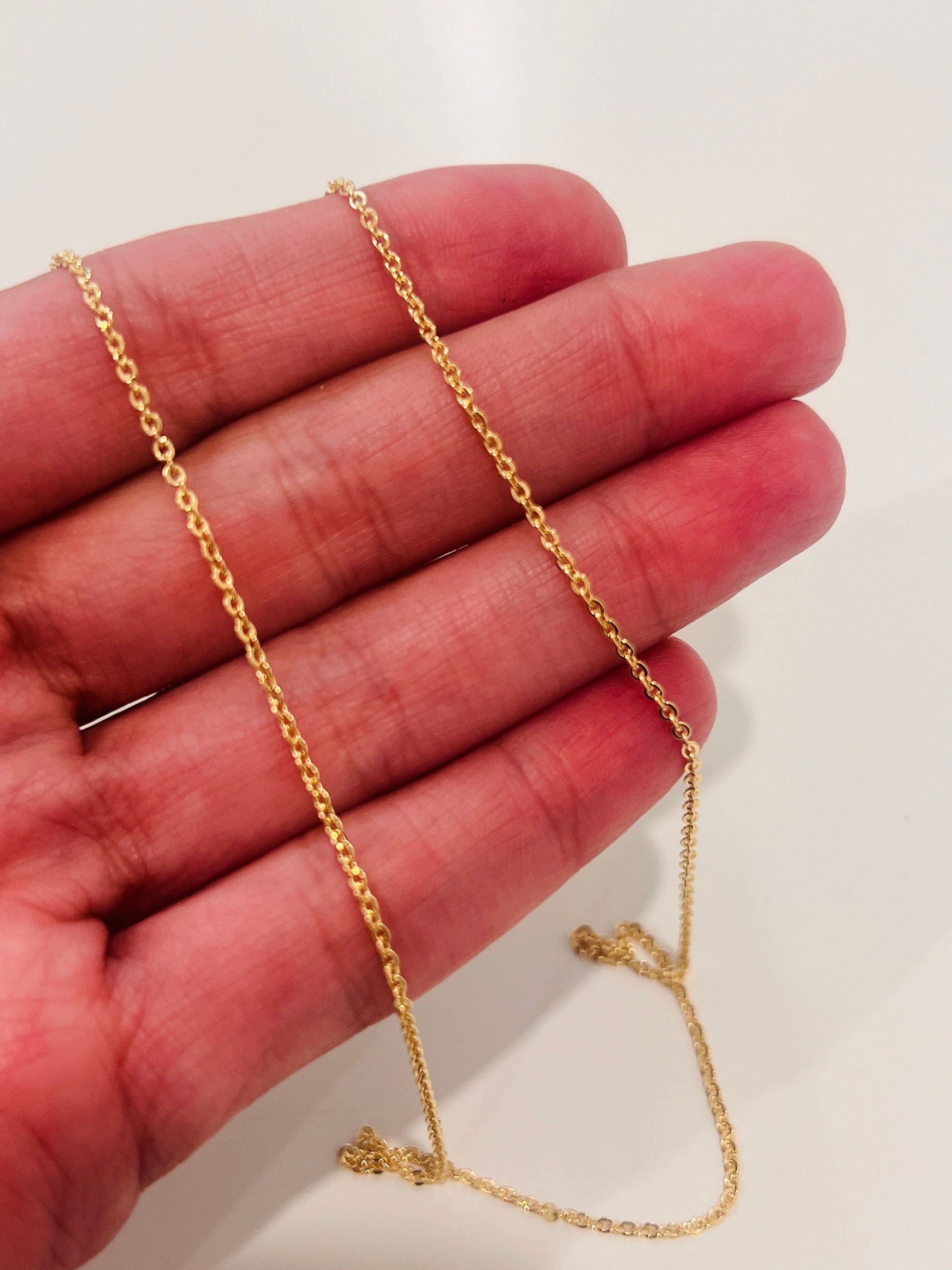 Keeping it dry and storing it in the plastic bag included in your purchase. Avoiding harsh chemicals like perfume, hairspray, lotions, and oils. Never using abrasive products to clean your jewelry. A must-have foundation chain designed to last and shine—day after day.