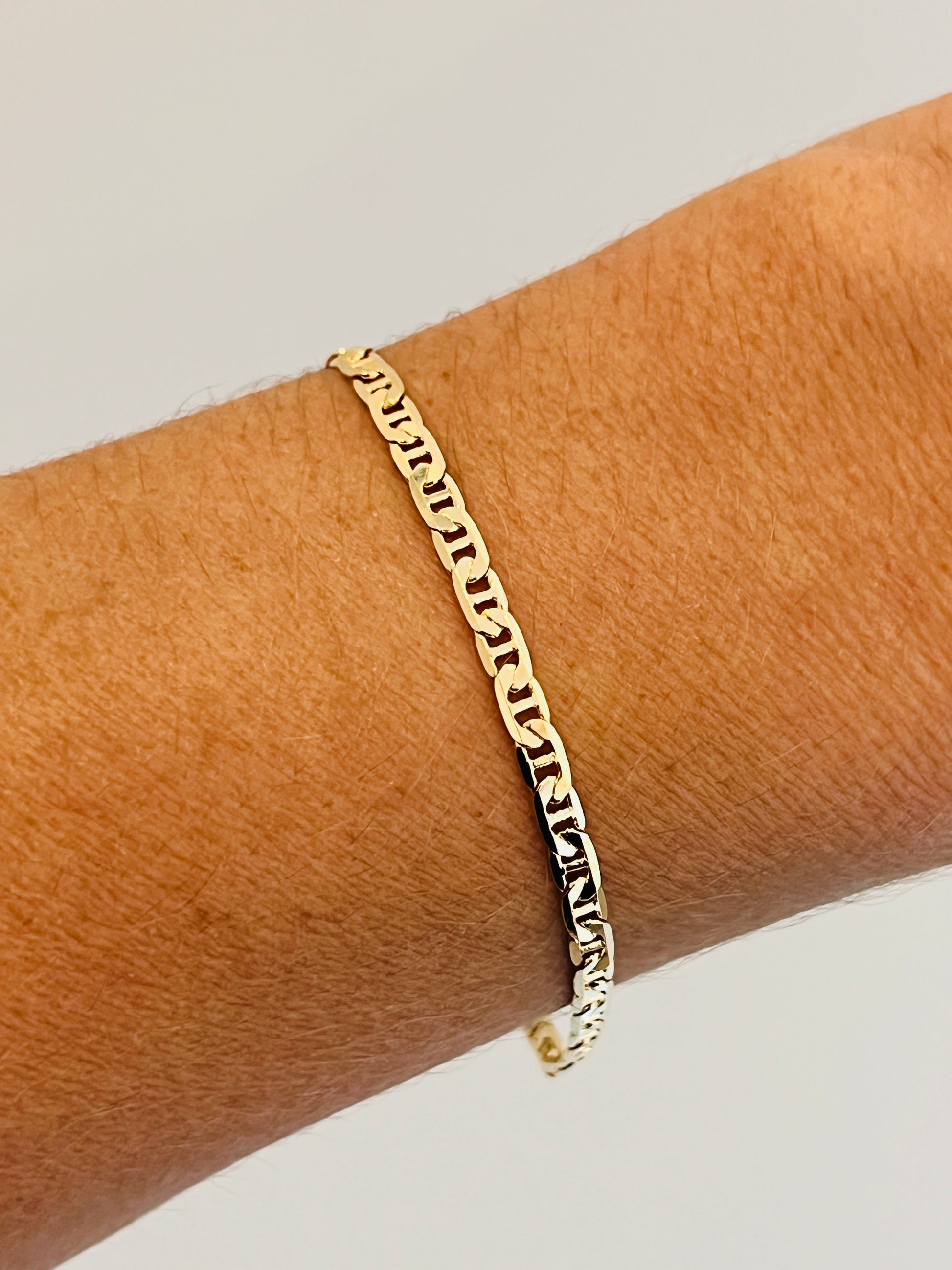 Elevate your wrist game with the Gold Filled 2.5mm Mariner Link Bracelet from Haus of Monogram. This sleek and minimal design features classic oval mariner links, known for their strength and elegance—perfect for daily wear or stacking with other favorites.
