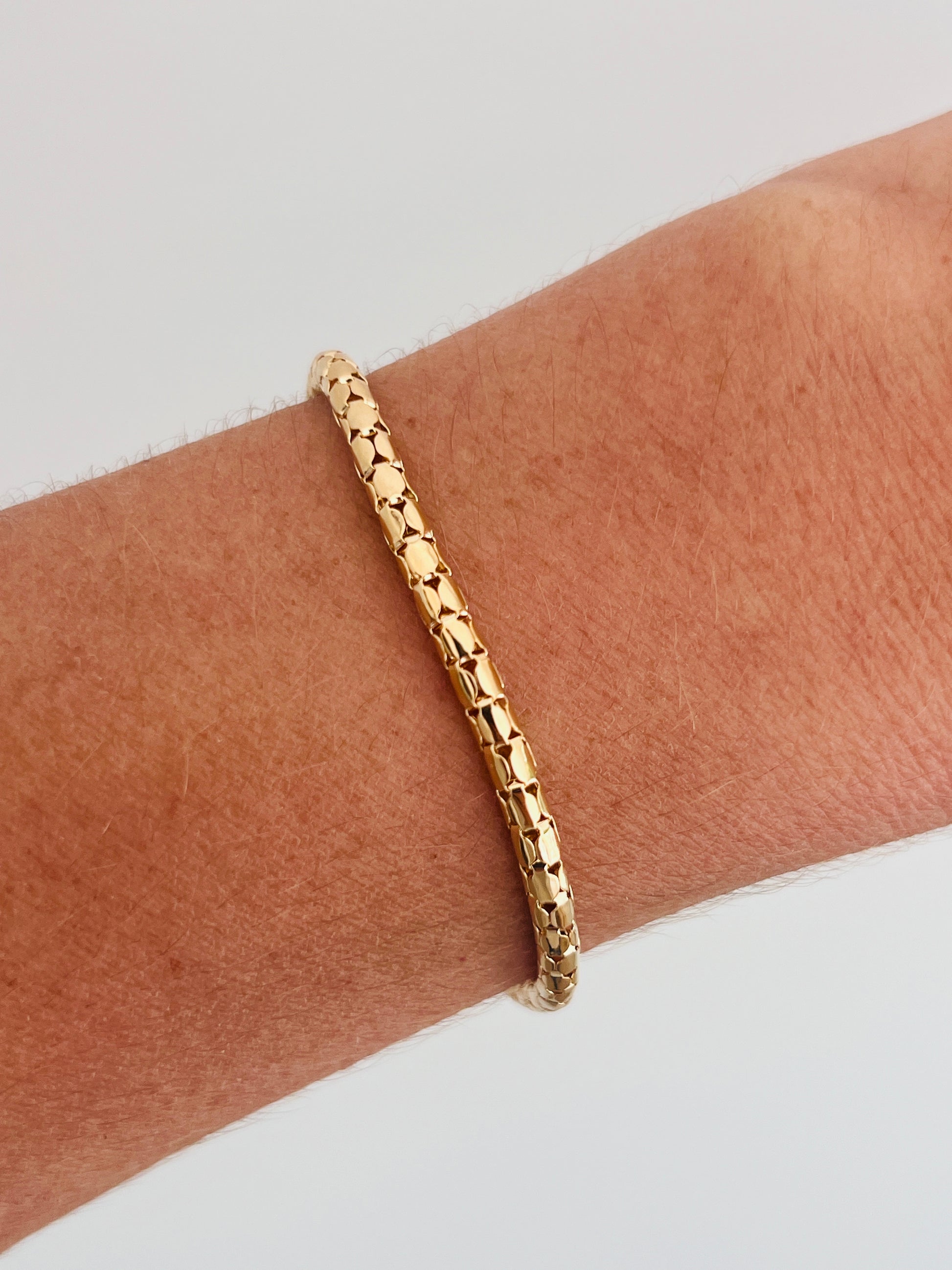 Whether styled alone or in a layered look, the Gold Filled Serpentine Bracelet adds refined shine to any outfit—exclusively from Haus of Monogram.