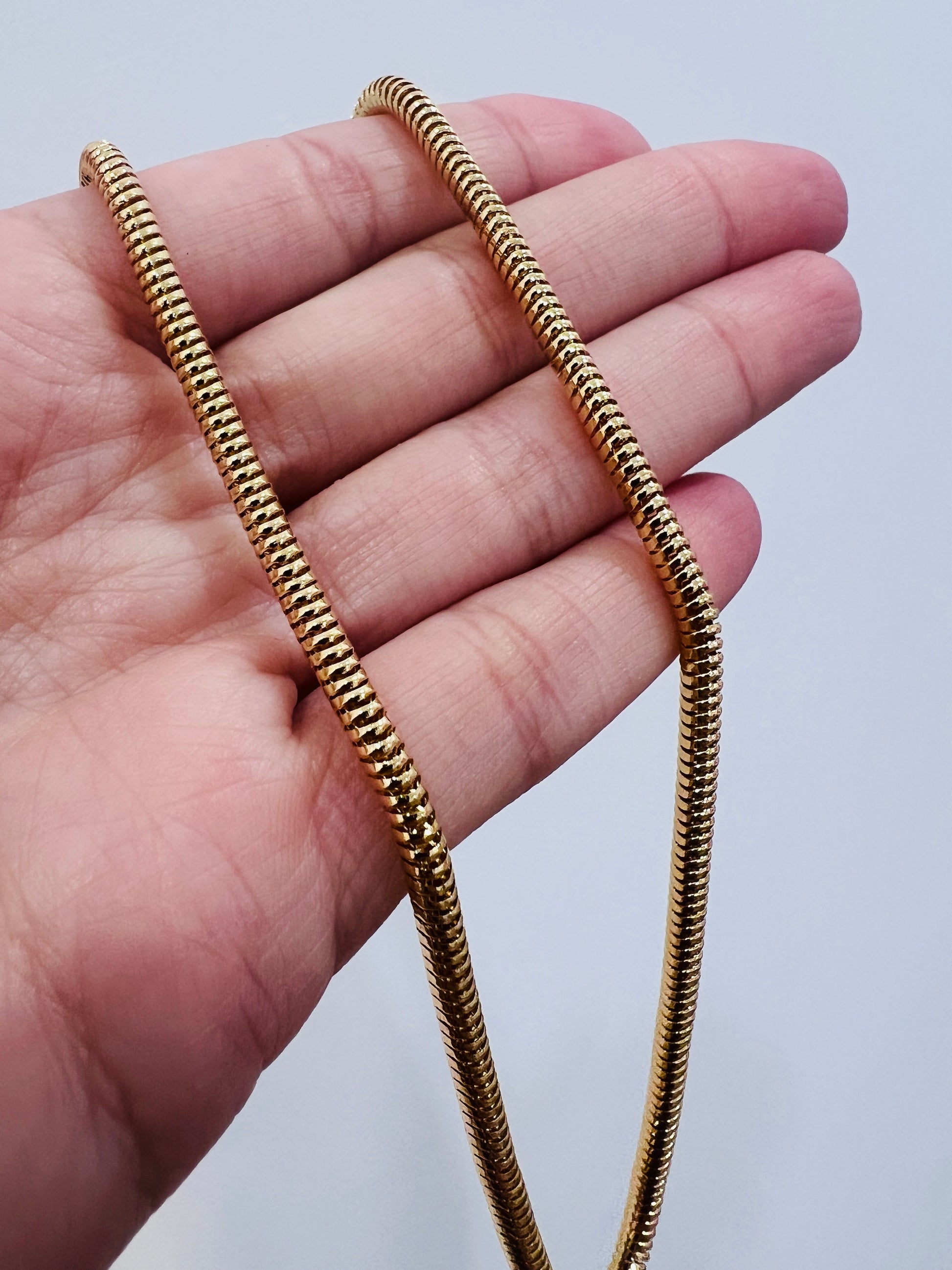 Add shine and fluidity to your jewelry wardrobe with the Gold Filled 2.5mm Snake Necklace—only from Haus of Monogram.