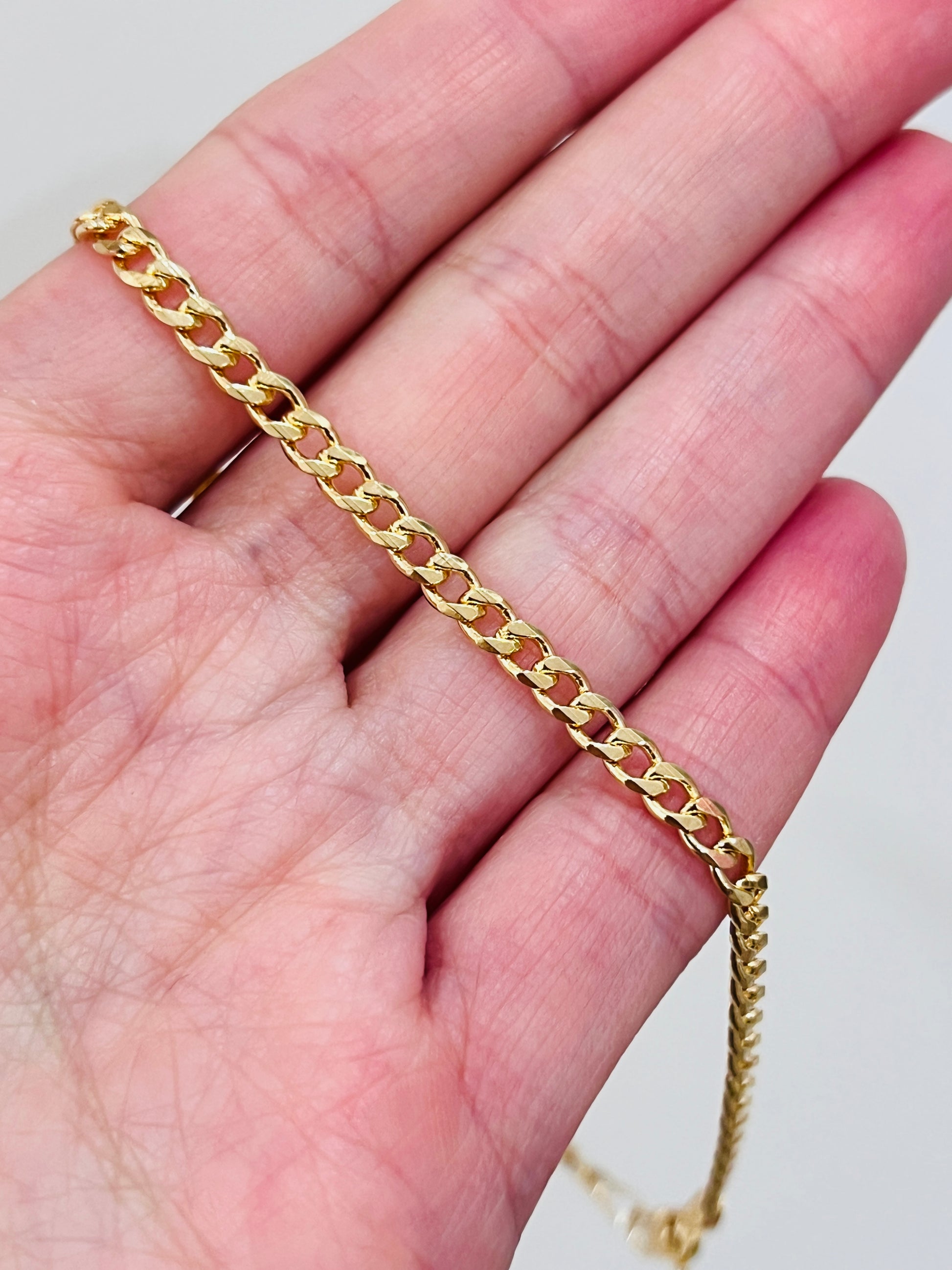 Gold Filled 3mm Curb Chain Bracelet – 18K Gold | 7.5"–8.5" Unisex