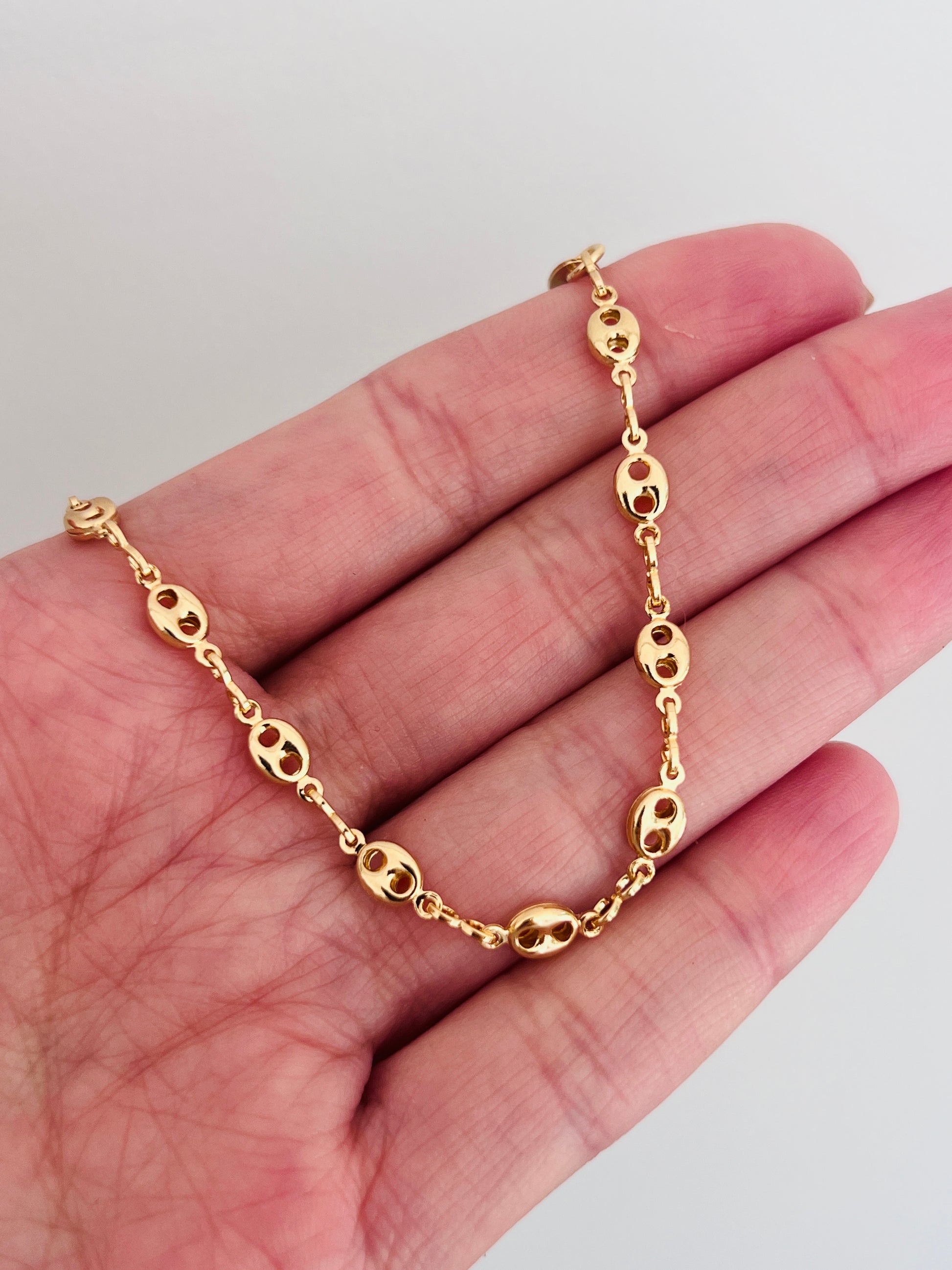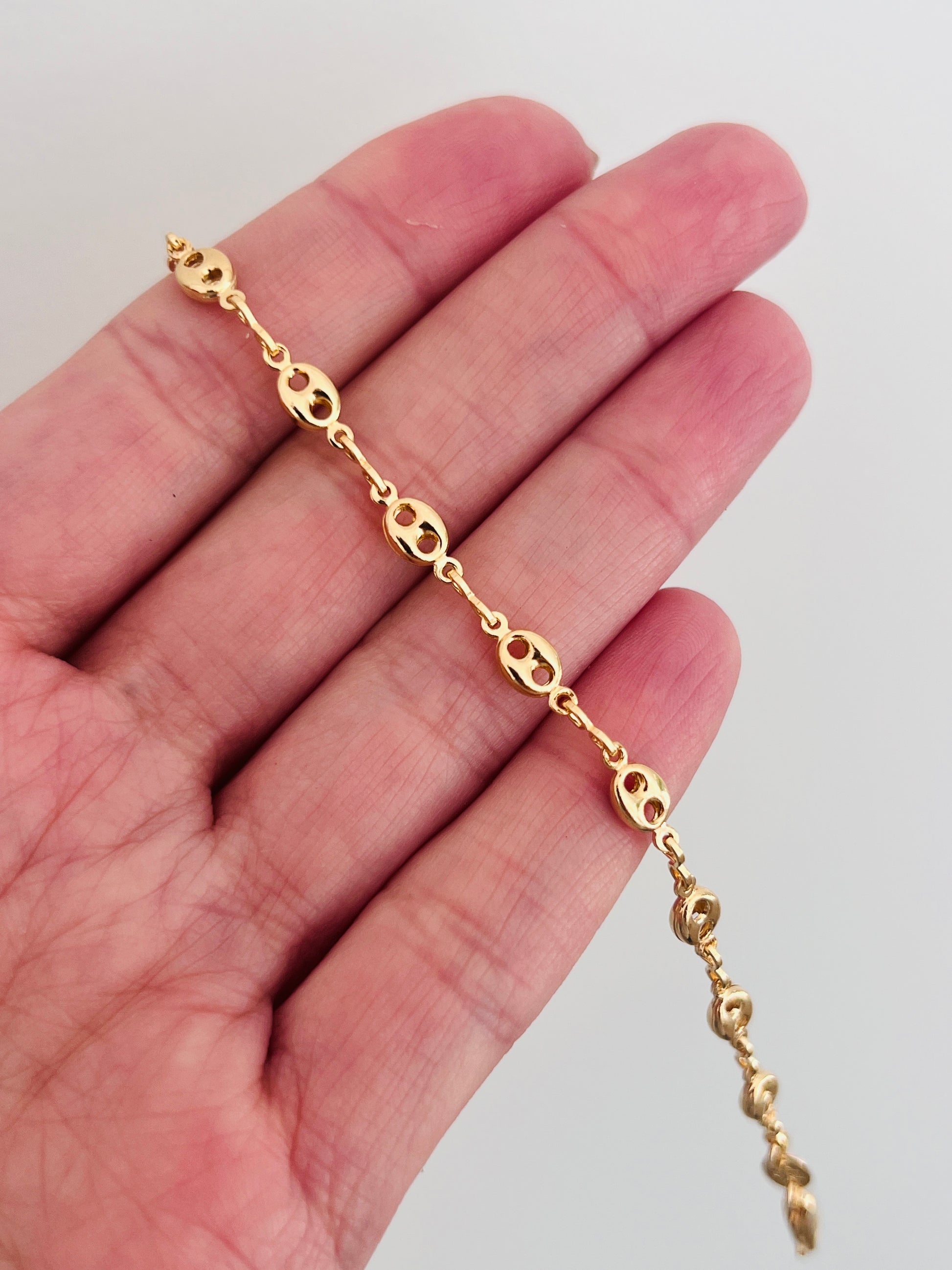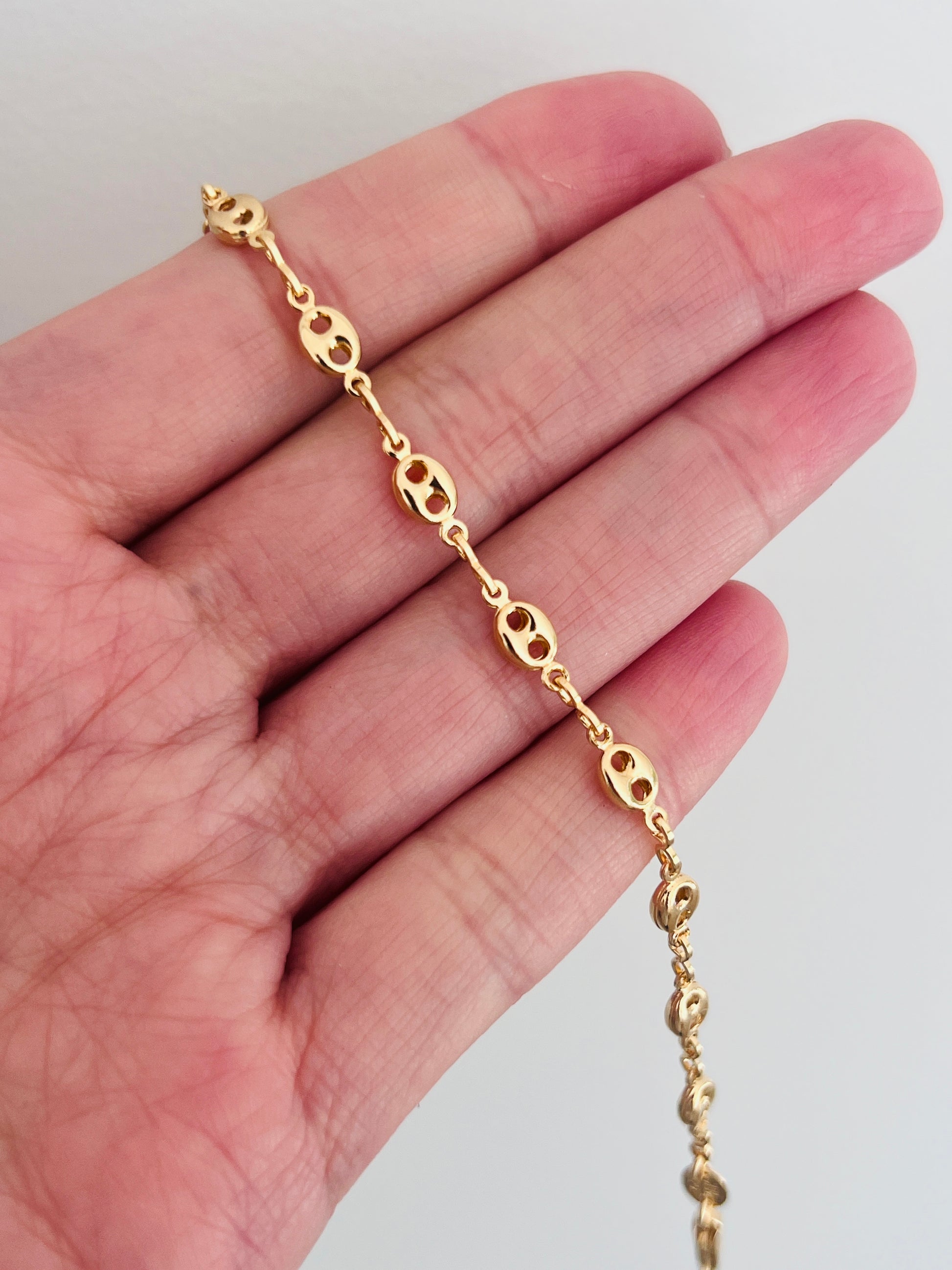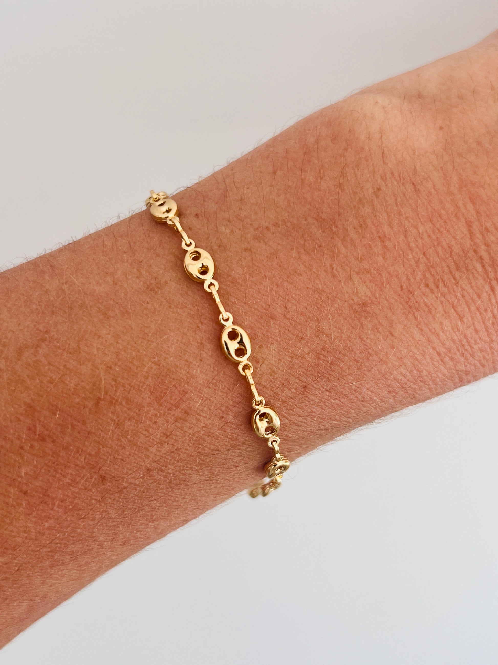 Crafted with a thick layer of 18kt gold bonded to a durable base metal, this bracelet has the radiant appearance of solid gold with the added benefit of affordability. It's hypoallergenic and resistant to tarnish, making it perfect for daily wear without compromising on style or quality. A modern classic designed to shine with you everywhere you go.
