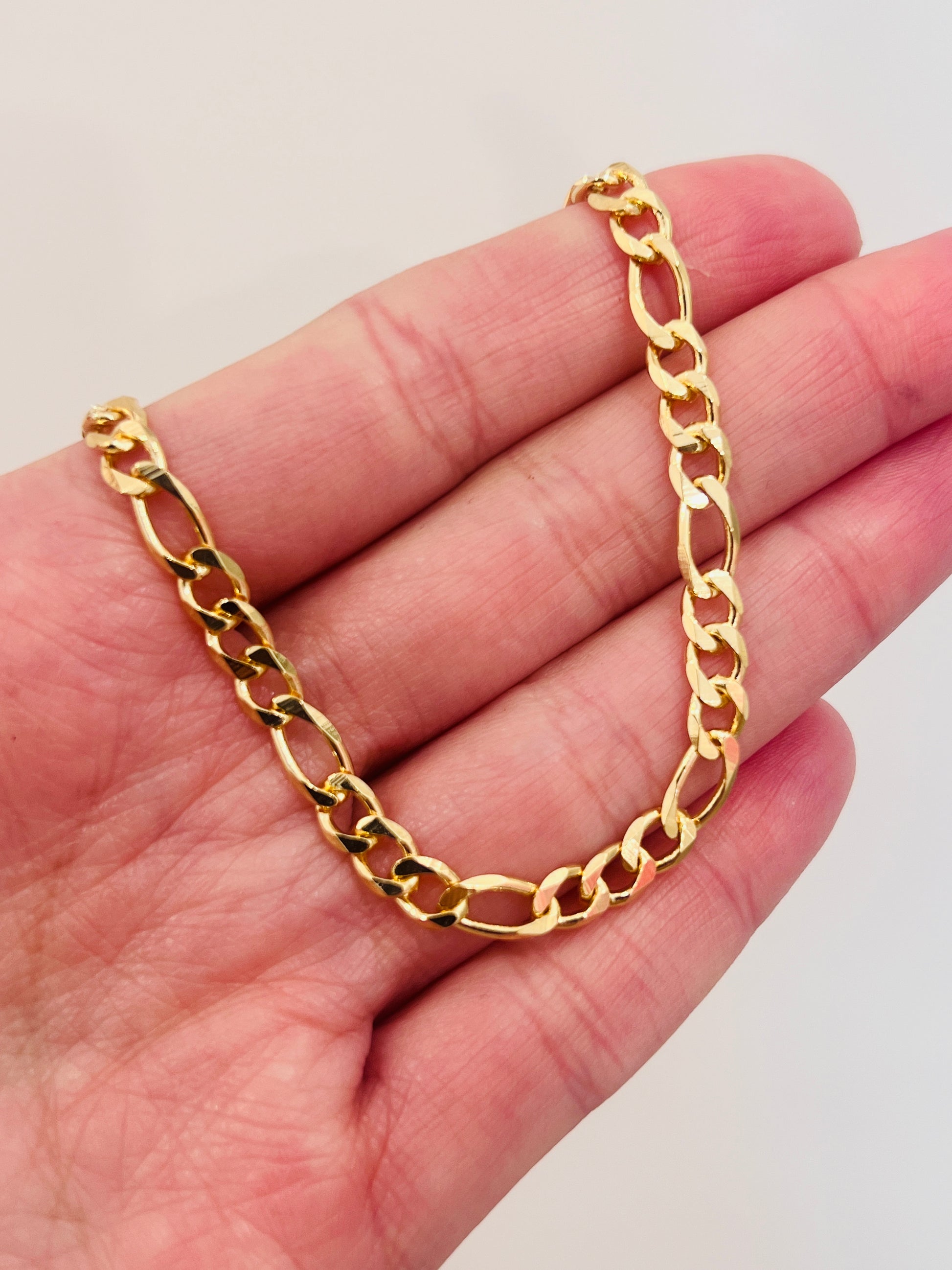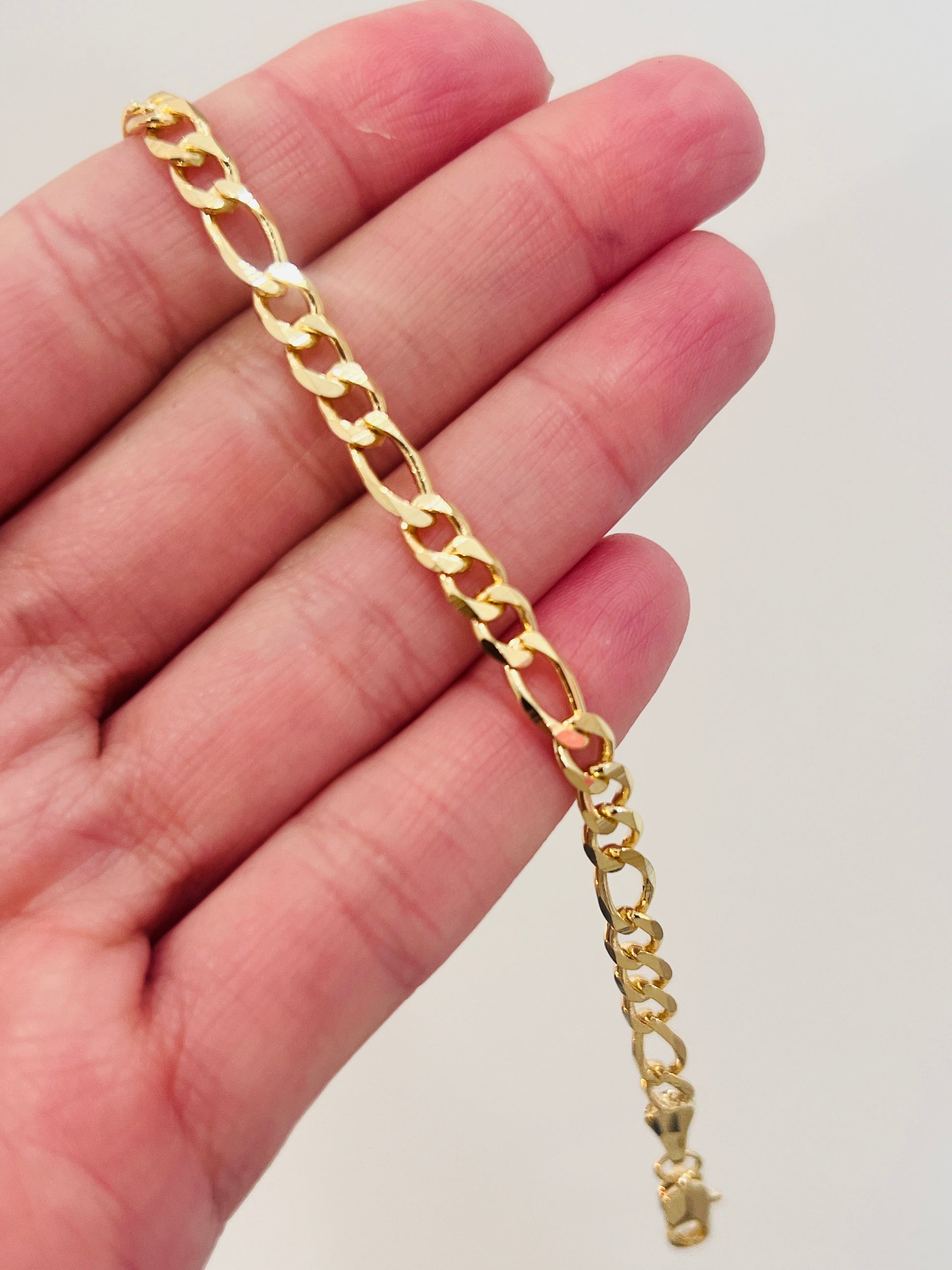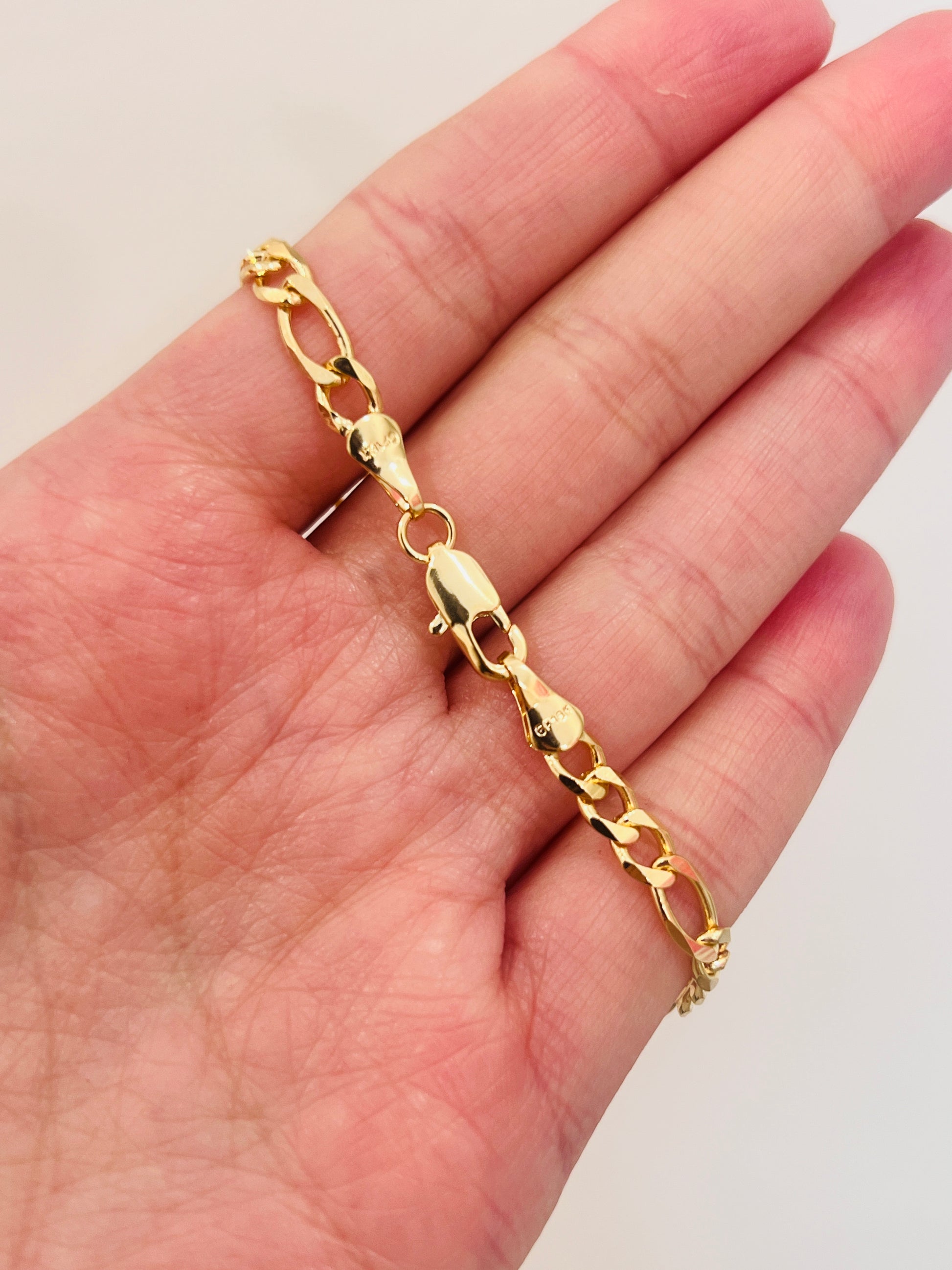 Gold Filled 4mm Figaro Bracelet | Chunky Gold Chain Bracelet for Men & Women