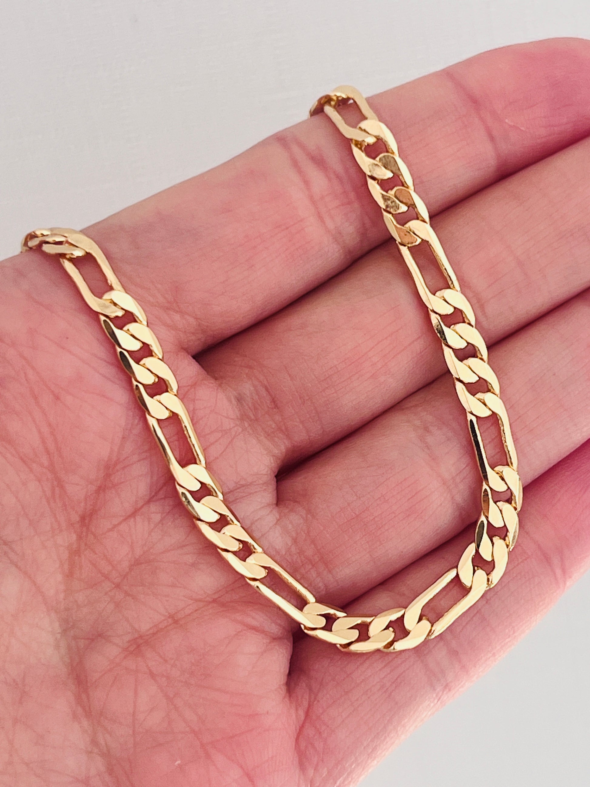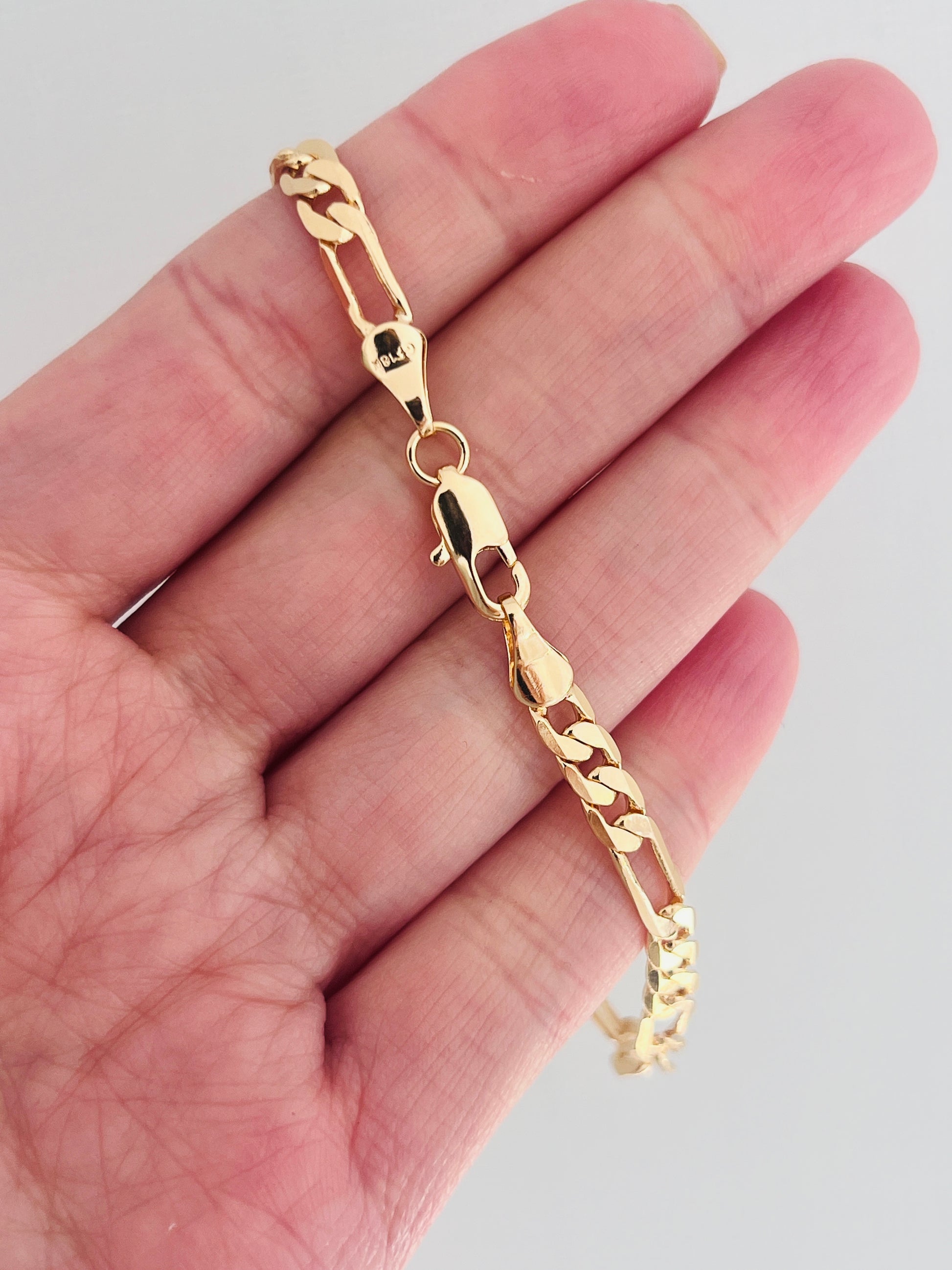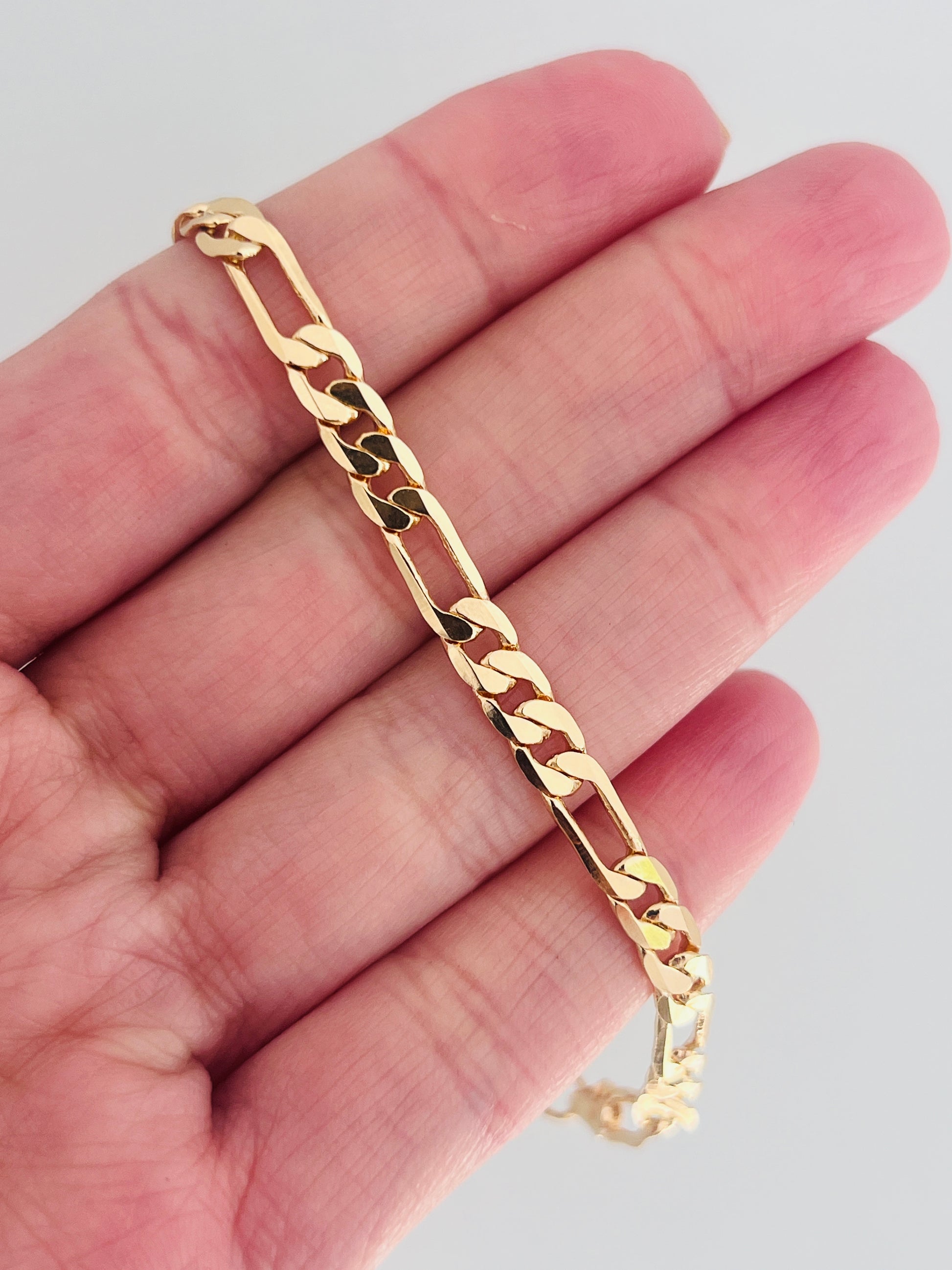 Gold Filled 4mm Flat Figaro Bracelet | Gold Link Chain for Everyday Wear