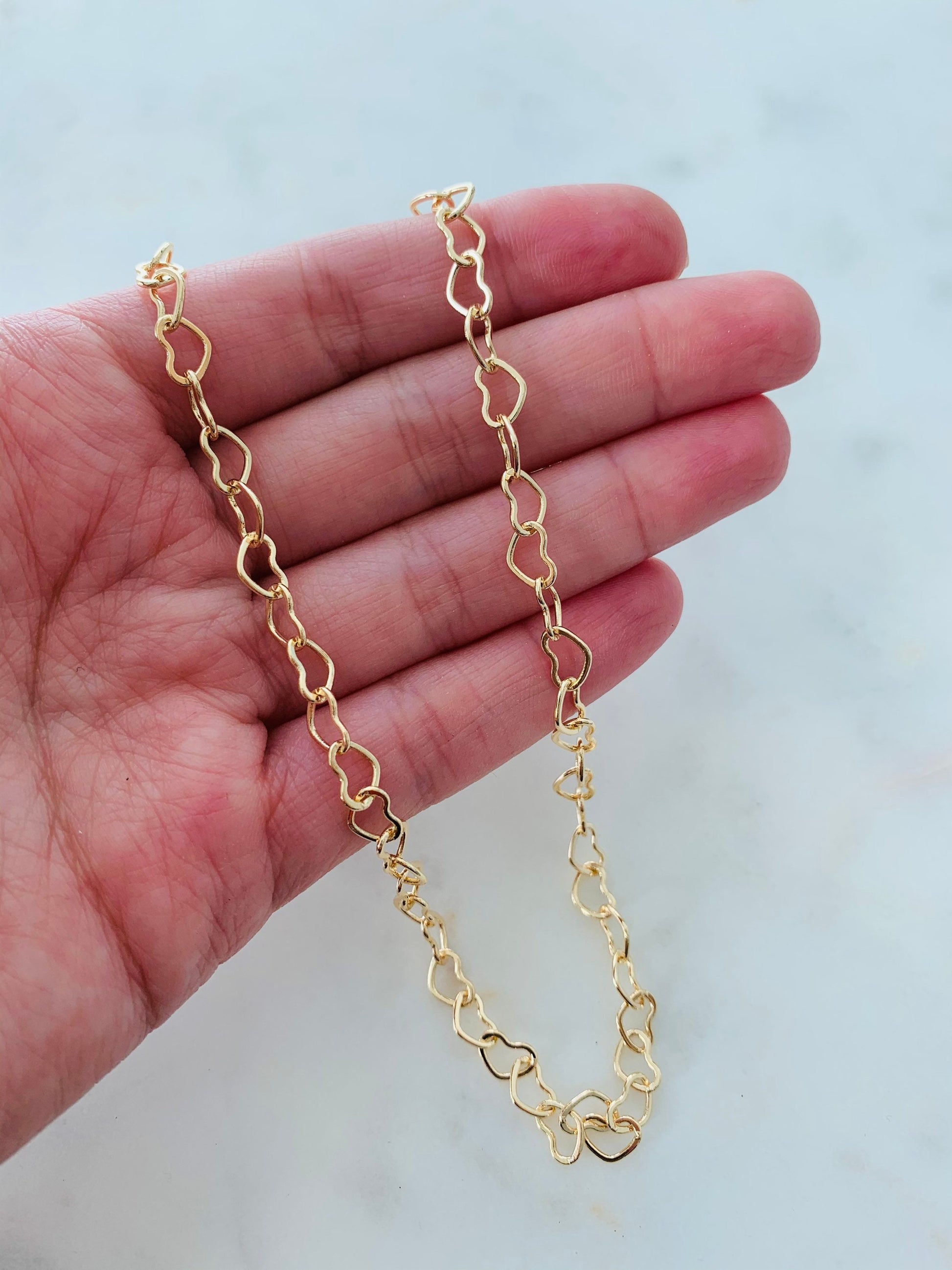 Make a statement with the Gold Filled 5mm Heart Necklace from Haus of Monogram. Featuring a bold heart link design in luminous 18kt gold filled material, this piece balances playful charm with standout elegance. Available in a variety of lengths from 16" to 28", it’s perfect for layering or letting it shine solo as your signature piece.