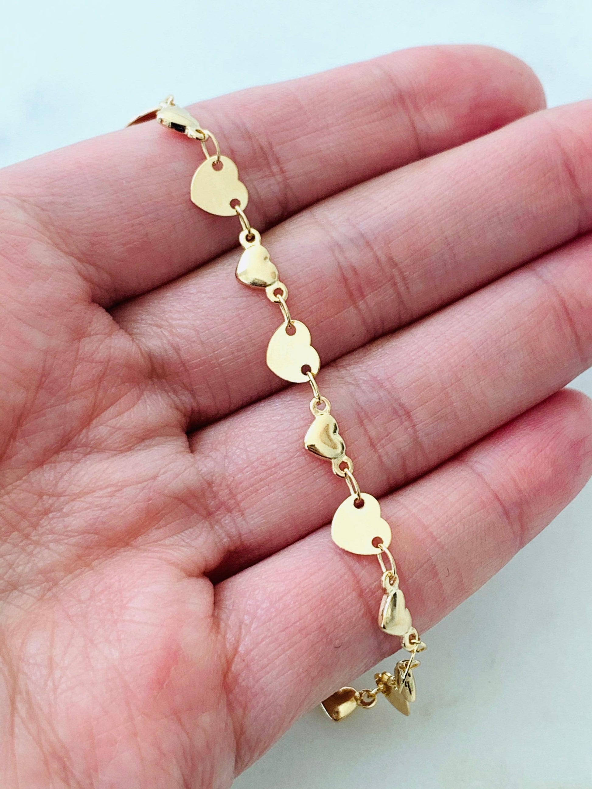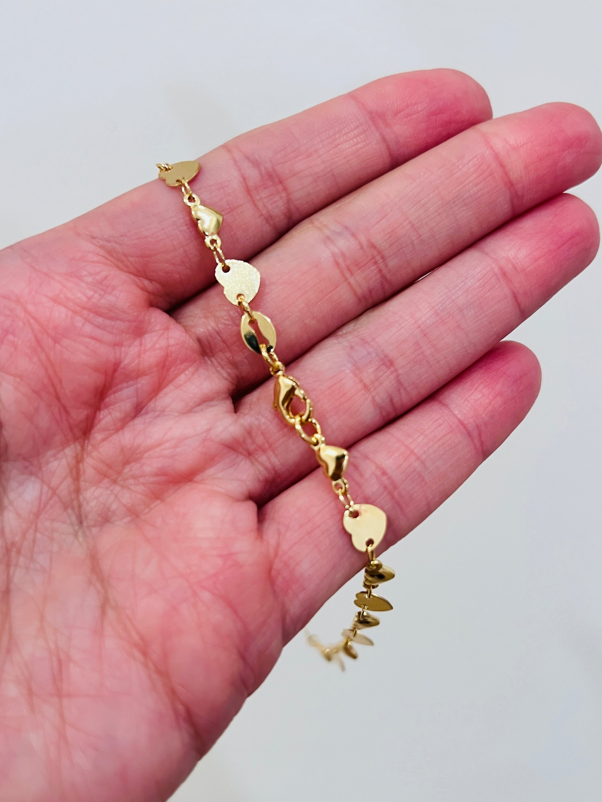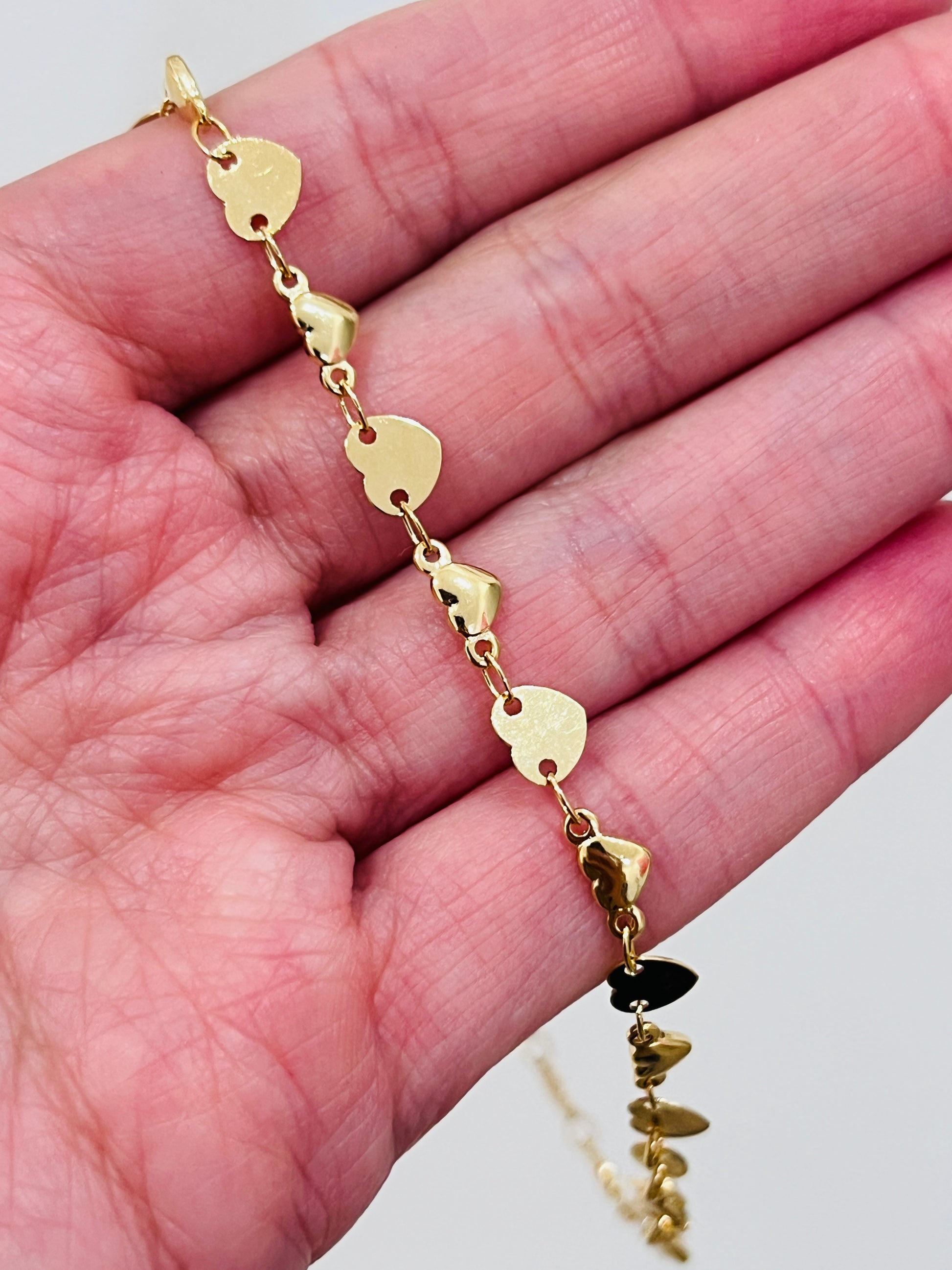 The Gold Filled 6mm Heart Anklet from Haus of Monogram adds a sweet, romantic touch to your jewelry collection with its bold shine and feminine design. Measuring 8.5" to 9.5" for a perfect adjustable fit, this anklet features charming heart-shaped links that reflect light beautifully, creating an eye-catching accent for any outfit. The 6mm width provides just the right amount of presence—delicate yet noticeable enough to elevate your warm-weather looks.