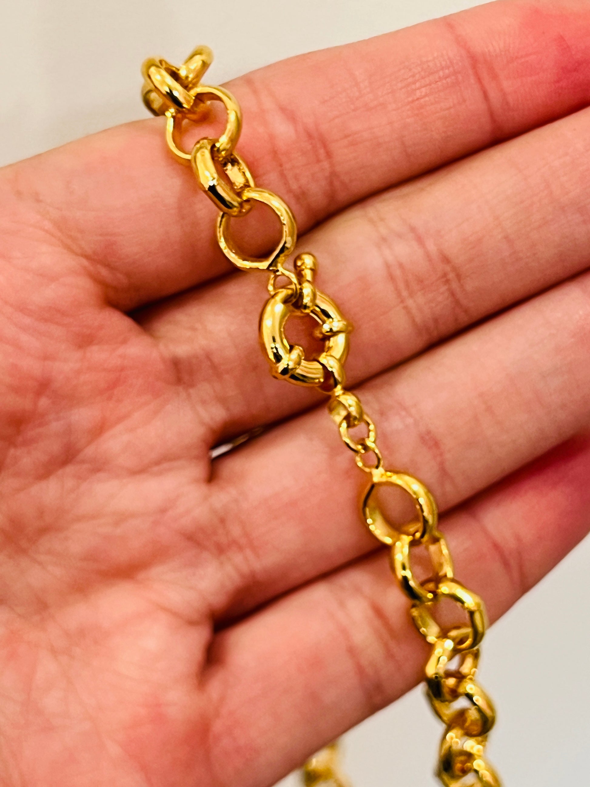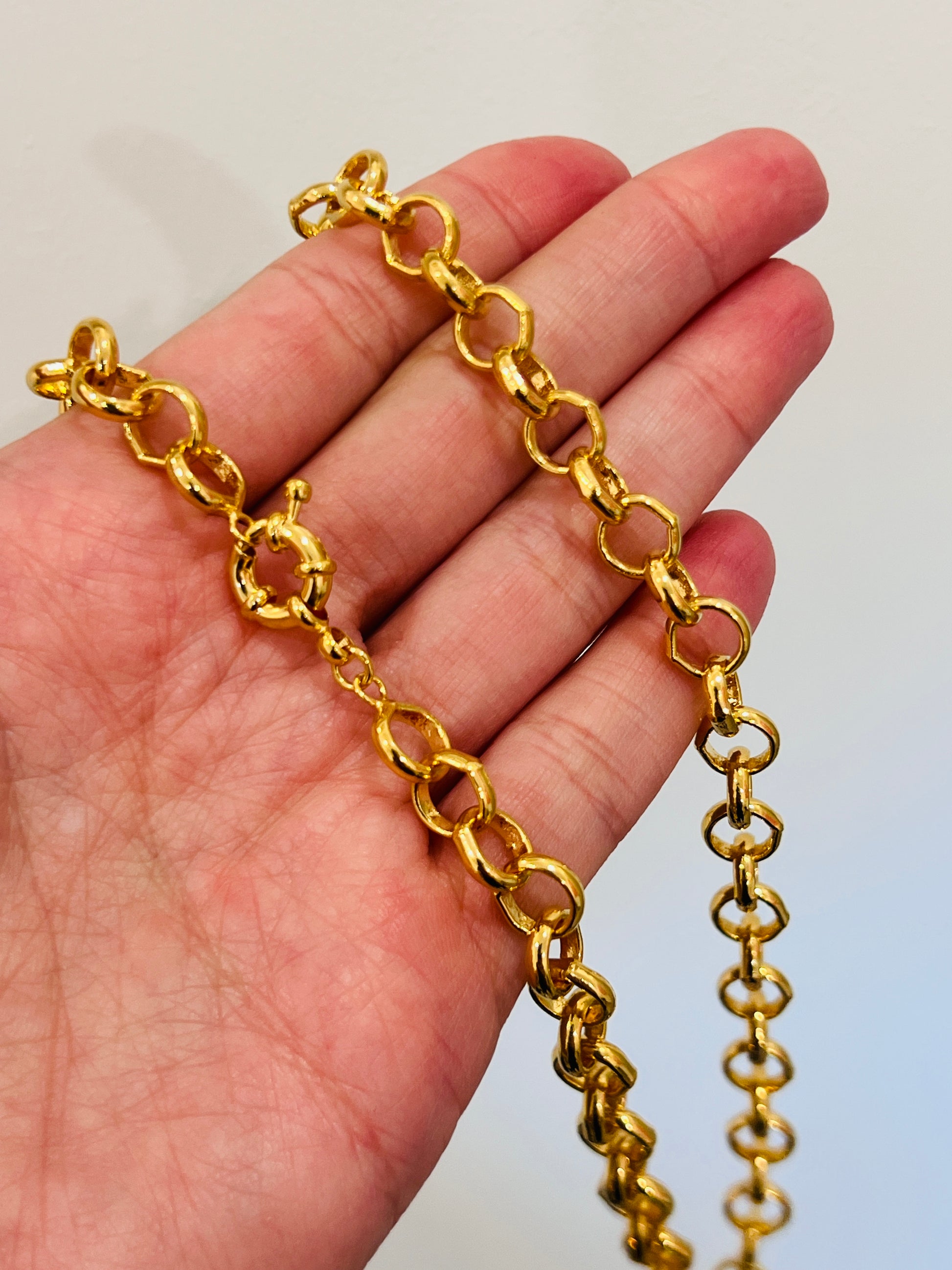 Upgrade your jewelry collection with the Gold Filled 8mm Cable Necklace by Haus of Monogram. Featuring a bold and sturdy 8mm wide cable chain crafted from 18K gold-filled metal, this 18" necklace offers the luxurious look of solid gold with enhanced durability and tarnish resistance. Perfect for everyday wear or layering with other pieces, this timeless necklace balances classic style and lasting quality.