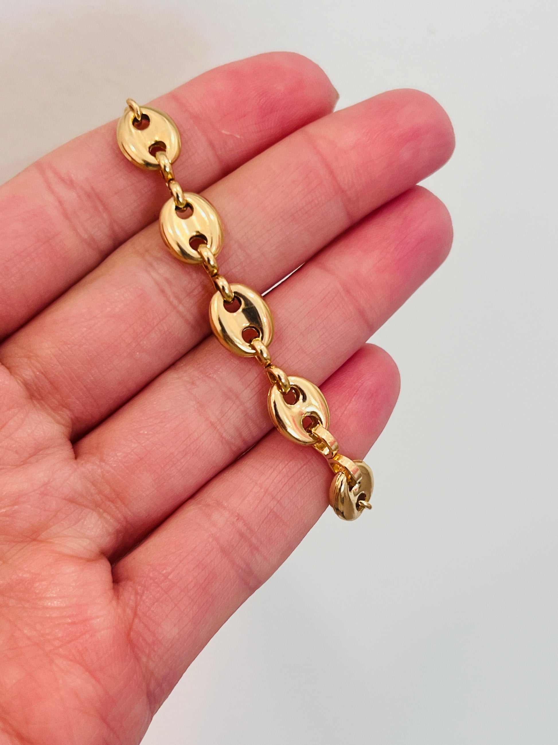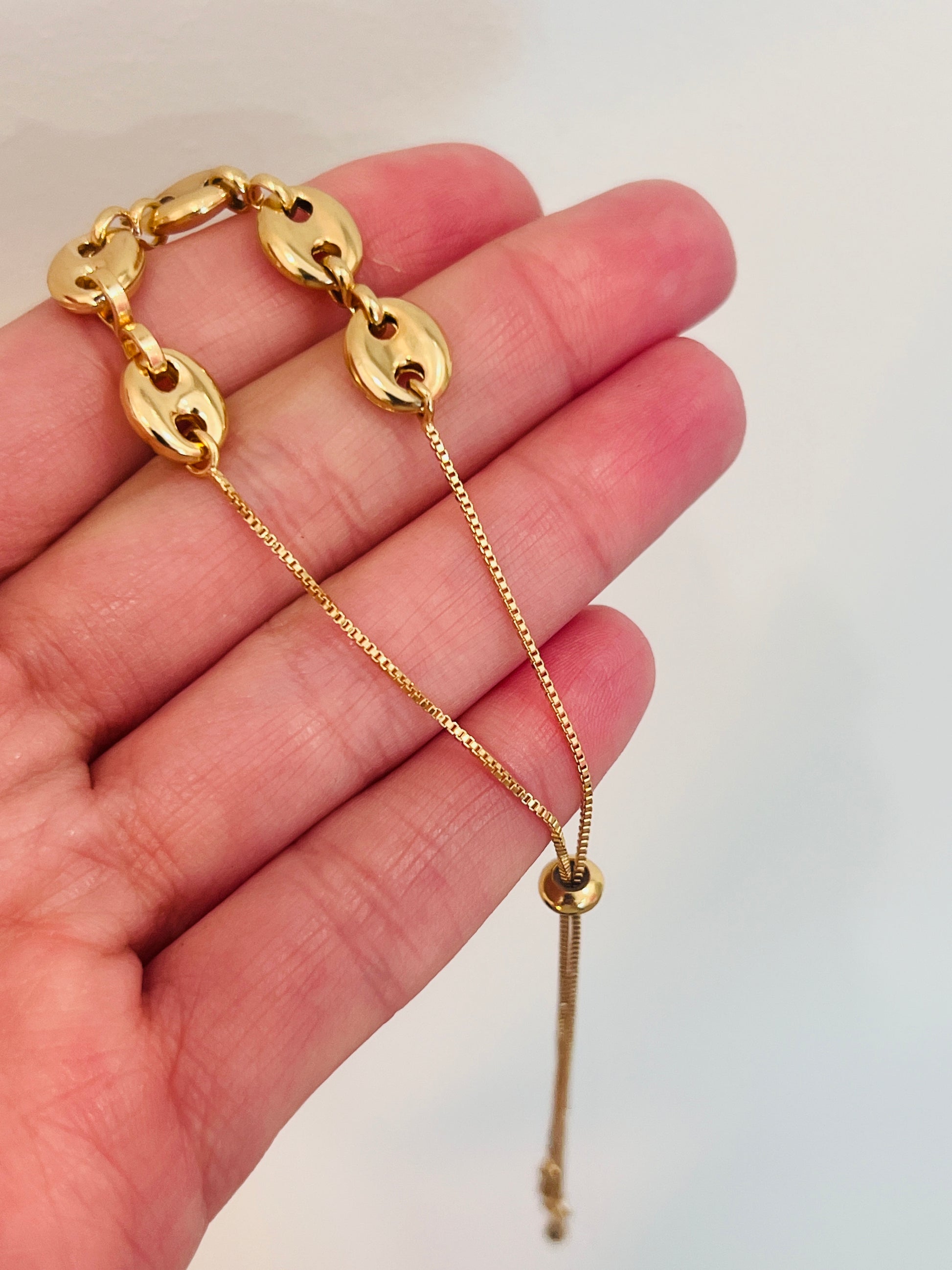 Make a bold, elegant statement with the Gold Filled 8mm Puff Adjustable Bracelet from Haus of Monogram. Featuring large, polished puff links and a convenient adjustable slider closure, this bracelet is the perfect blend of glam and function—designed to fit a range of wrist sizes with ease.