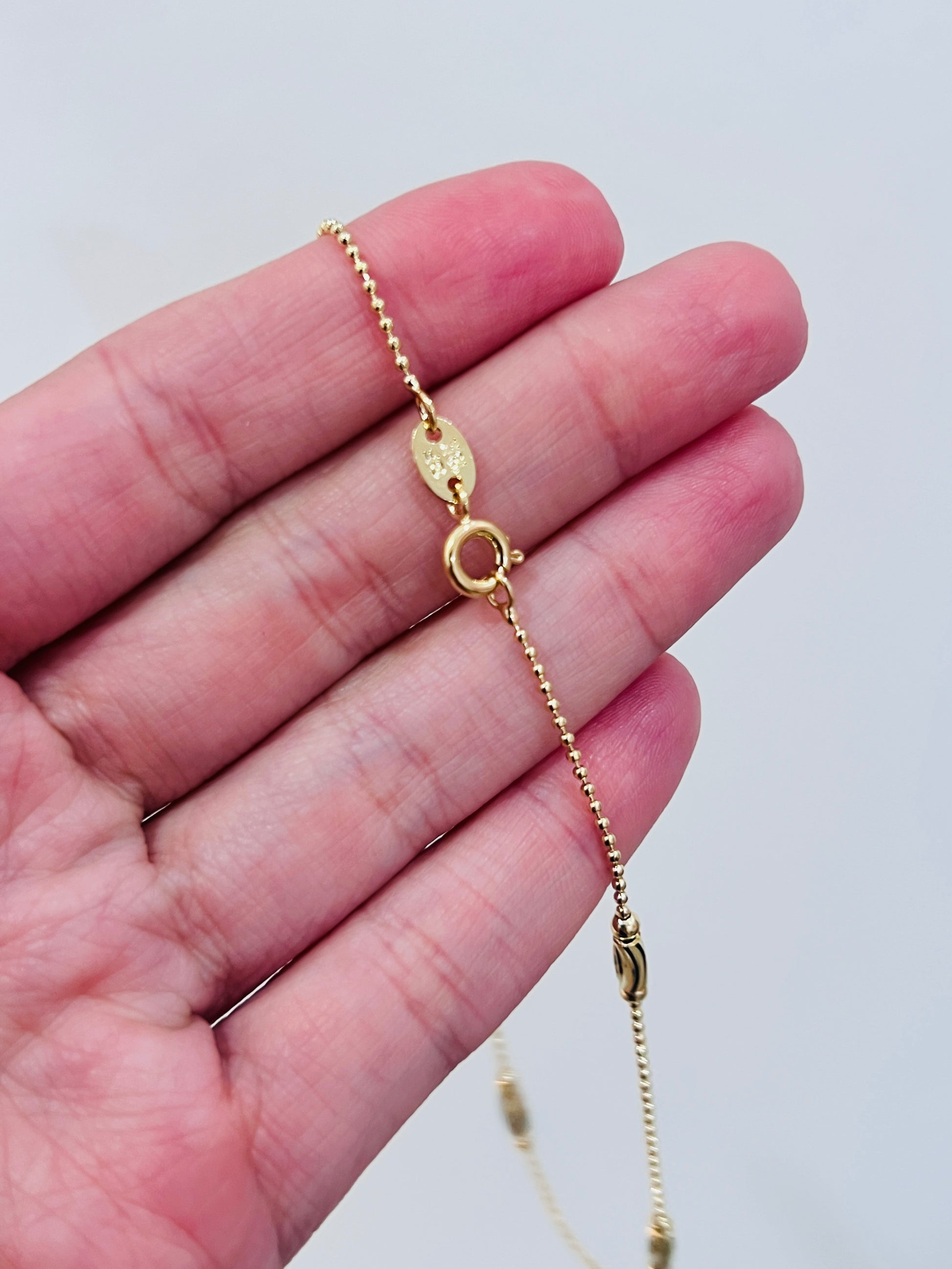 Gold Filled Beaded Bar Anklet | Dainty 18K Gold Bead Chain Ankle Bracelet