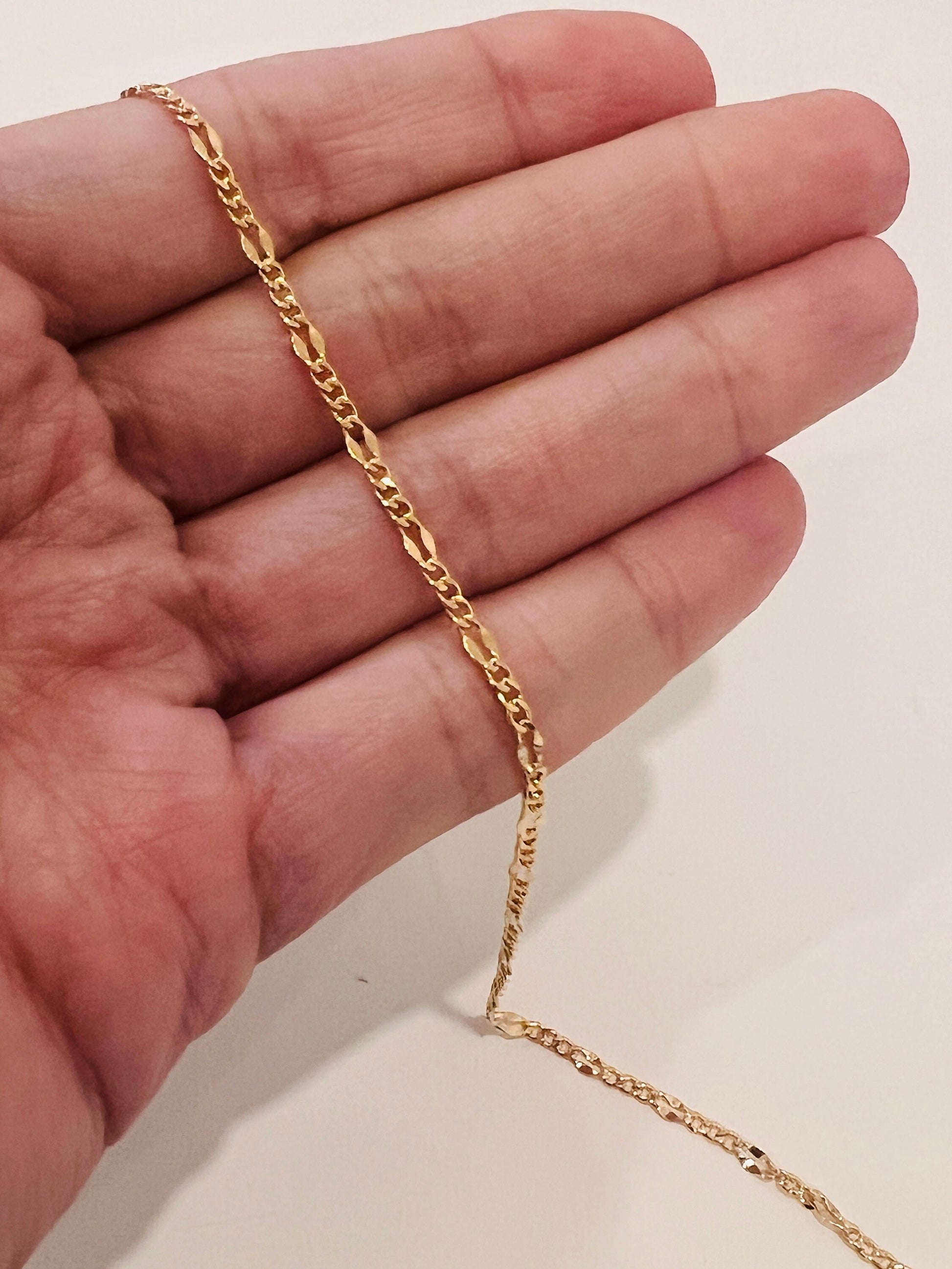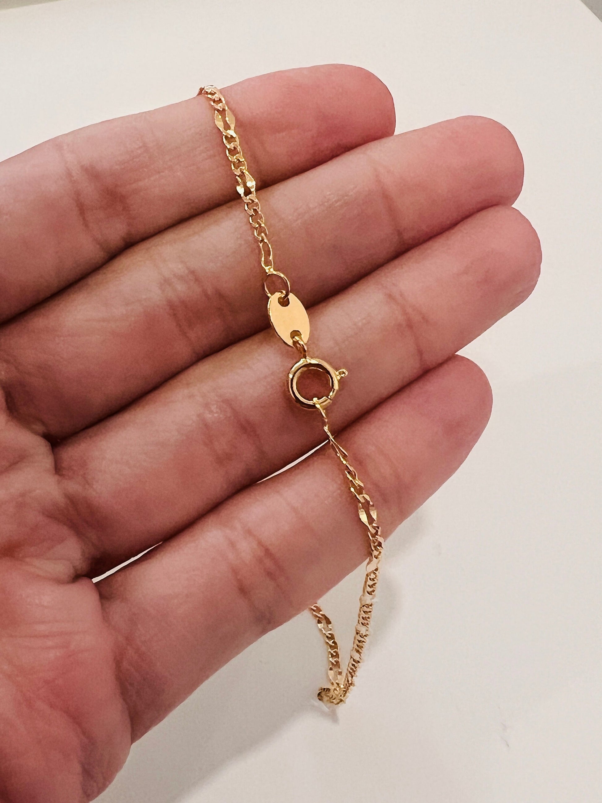 Delicate yet impactful, this Gold Filled 1mm Curb Anklet adds the perfect hint of shine to your ankle. Crafted with a fine 1mm curb chain, its minimalist design is ideal for daily wear or layering with chunkier anklets. Made with a durable layer of 18kt gold bonded to a strong base metal, this piece offers the look and feel of solid gold without the high price. Lightweight and comfortable, it flatters your look whether styled with sandals, sneakers, or barefoot on the beach. Designed by Haus of Monogram, this anklet delivers understated luxury and long-lasting quality that won’t tarnish easily when cared for properly.