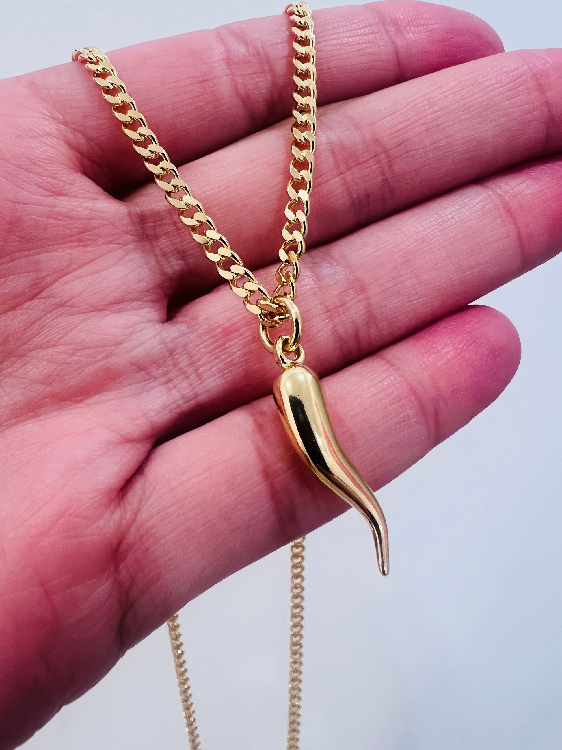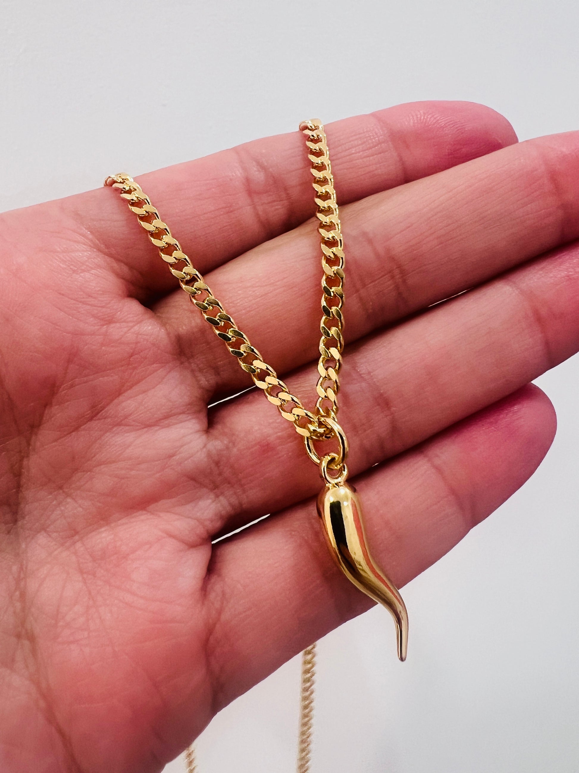 - 18kt gold filled curb chain with Italian Cornicello charm