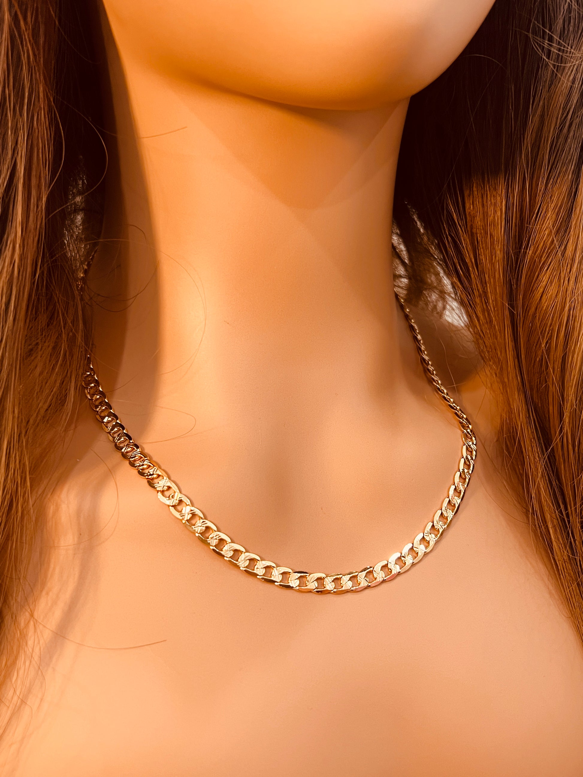 • Beveled curb link design for maximum shine and edge