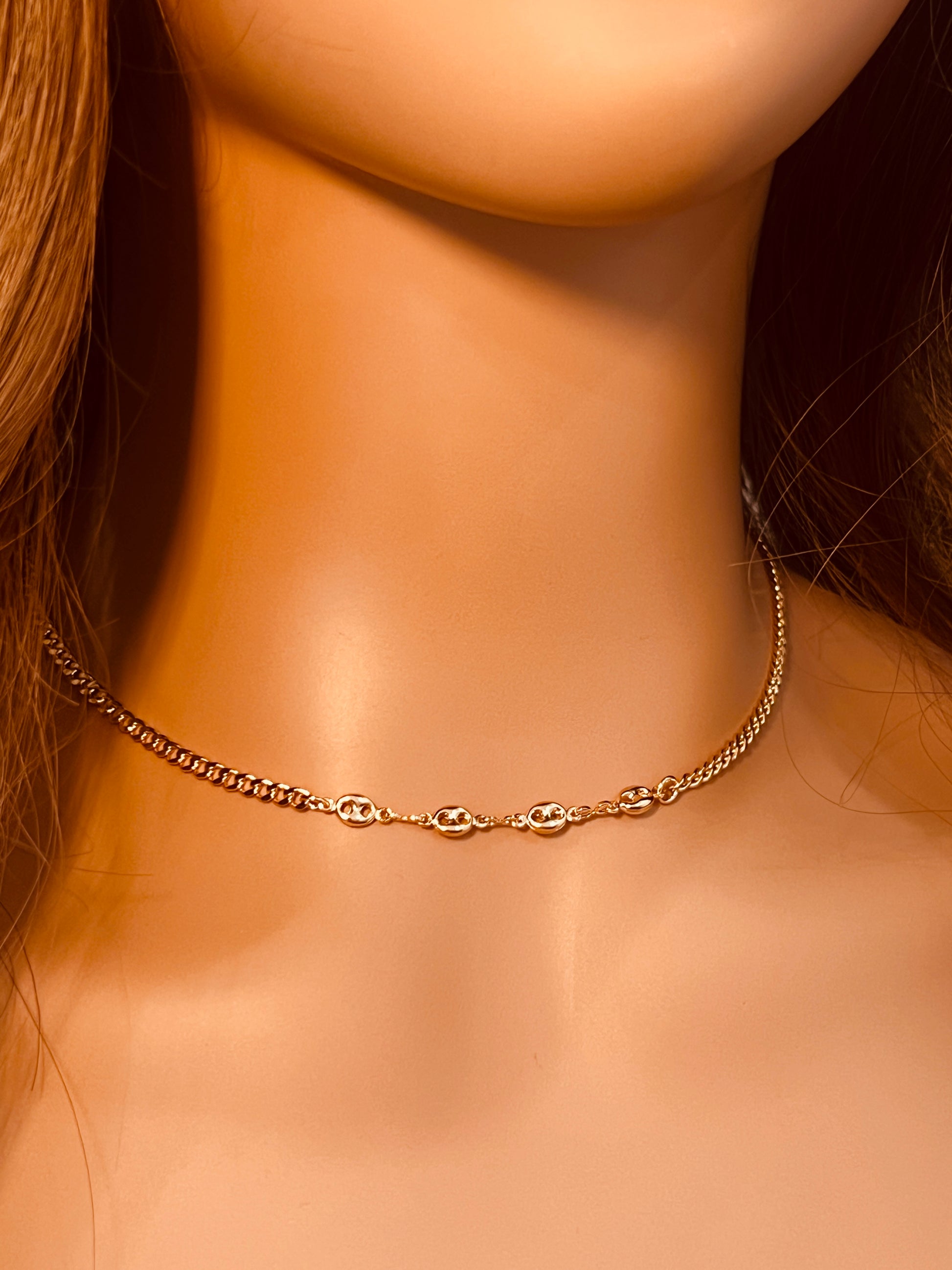 Gold Filled Curb Necklace | Puff Accent | 2.5mm Shine