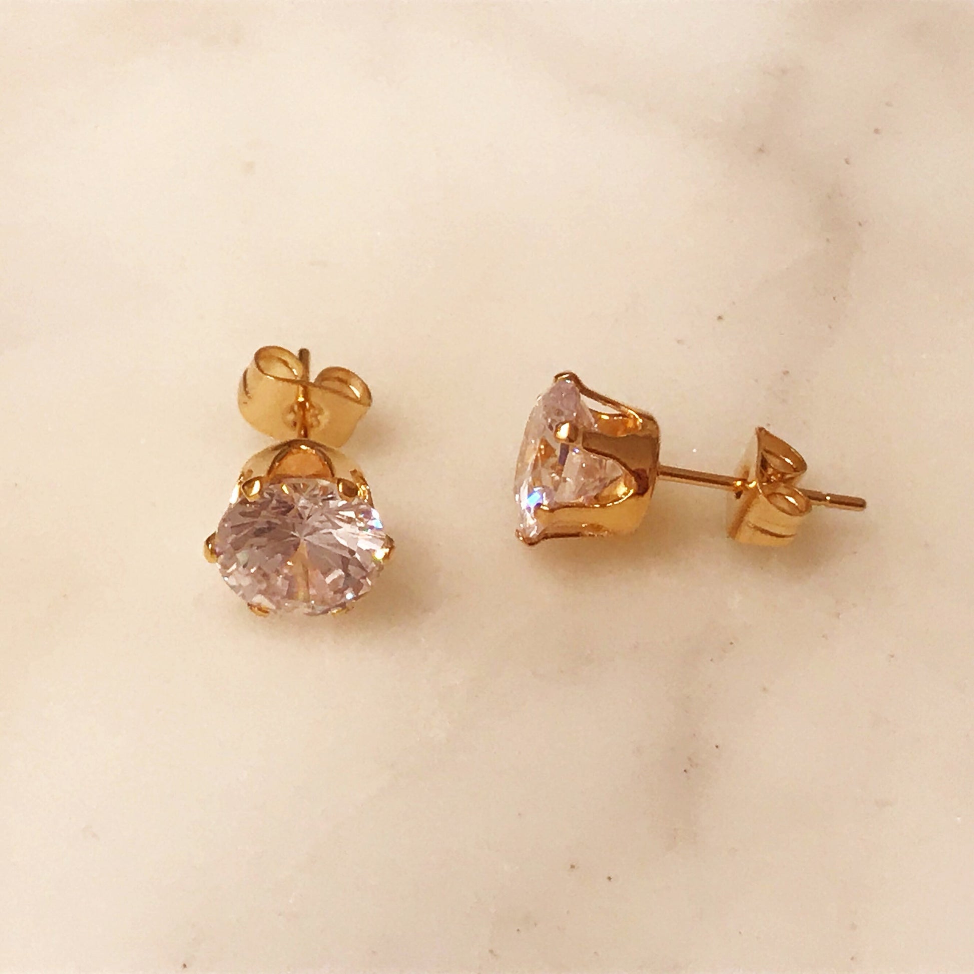 Gold Filled CZ Stud Earrings | 8mm Cubic Zirconia Everyday Sparkle