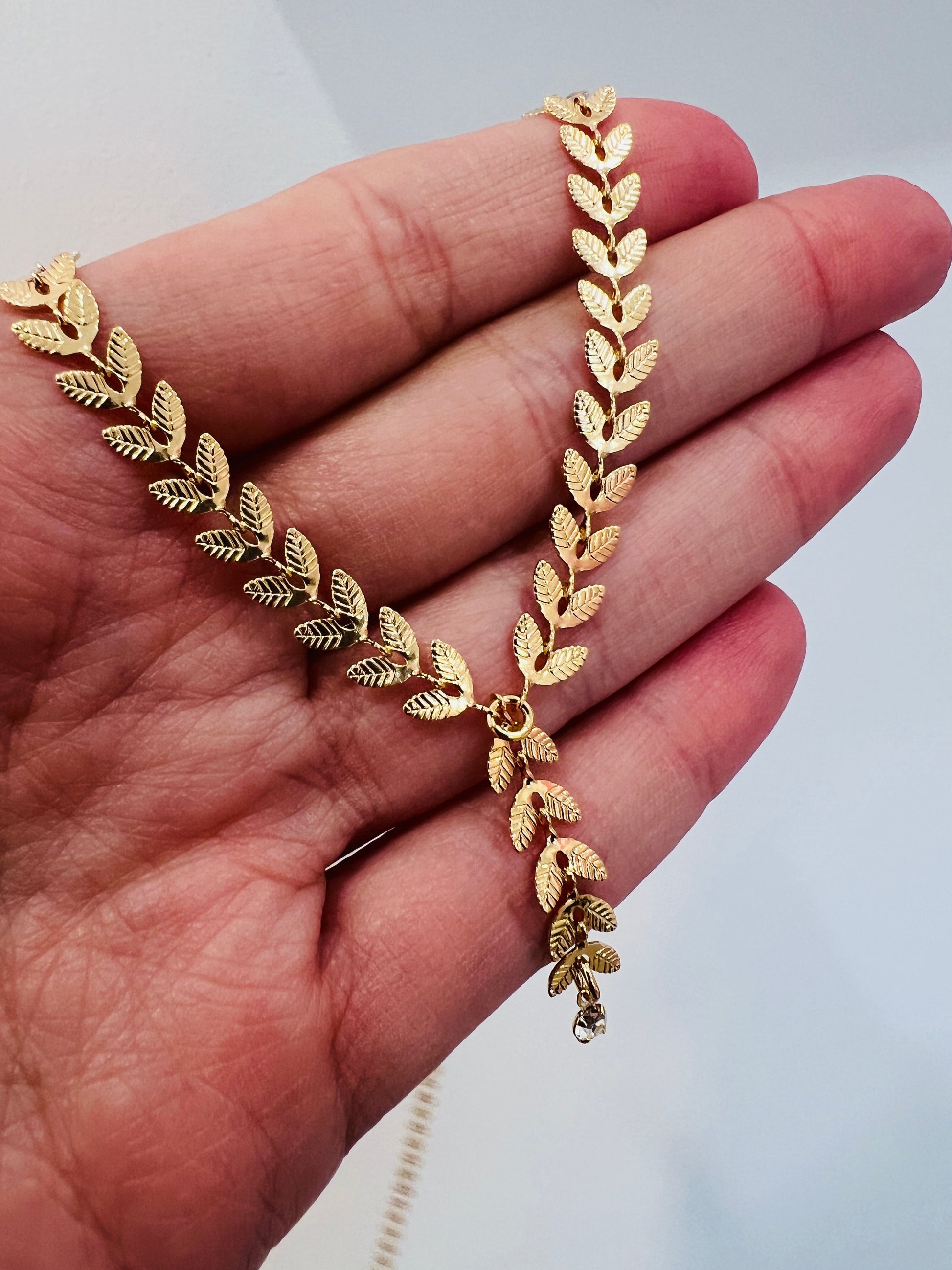 Make a bold yet elegant statement with the Gold Filled Dangling Chevron Necklace from Haus of Monogram. This standout piece features a striking 6mm-wide chain adorned with delicately dangling chevron links, designed to catch the light and create eye-catching movement with every step. At 17.75" in length, it sits beautifully along the collarbone, making it ideal for solo wear or pairing with shorter dainty chains. Crafted from thick 18kt gold filled material, this necklace offers the radiant glow of solid gold with the durability needed for everyday styling. Perfect for those who love standout textures with refined finishes.
