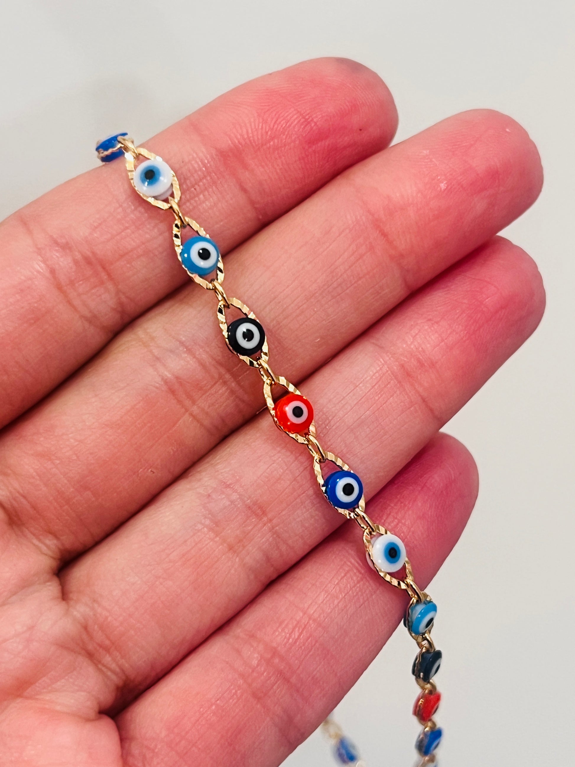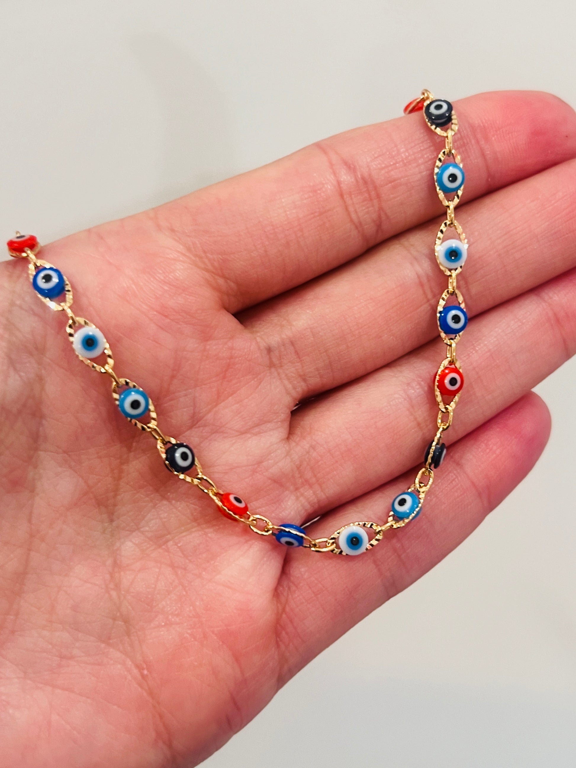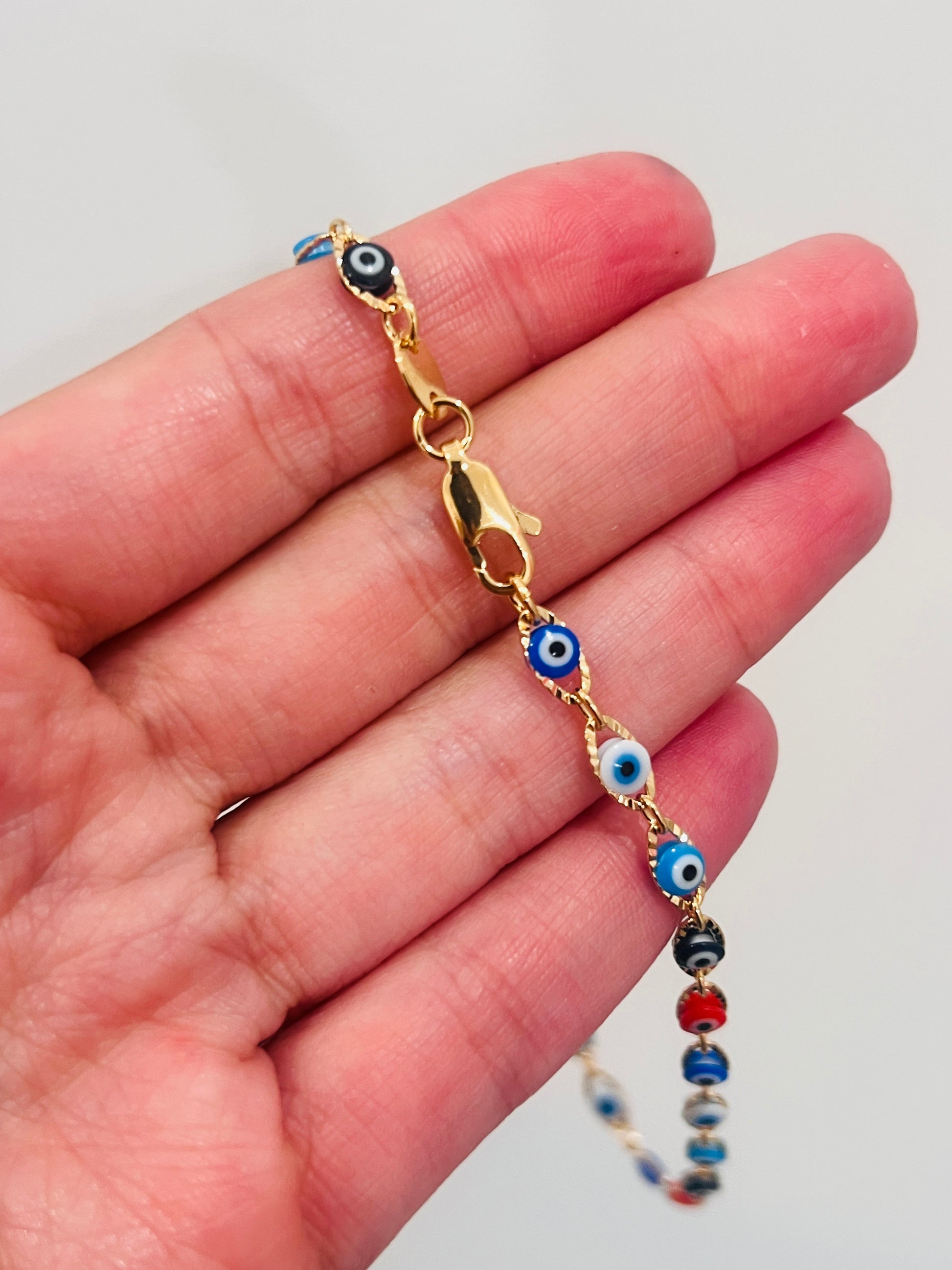 Gold Filled Evil Eye Anklet | Size: 10" | 3.5mm Charm