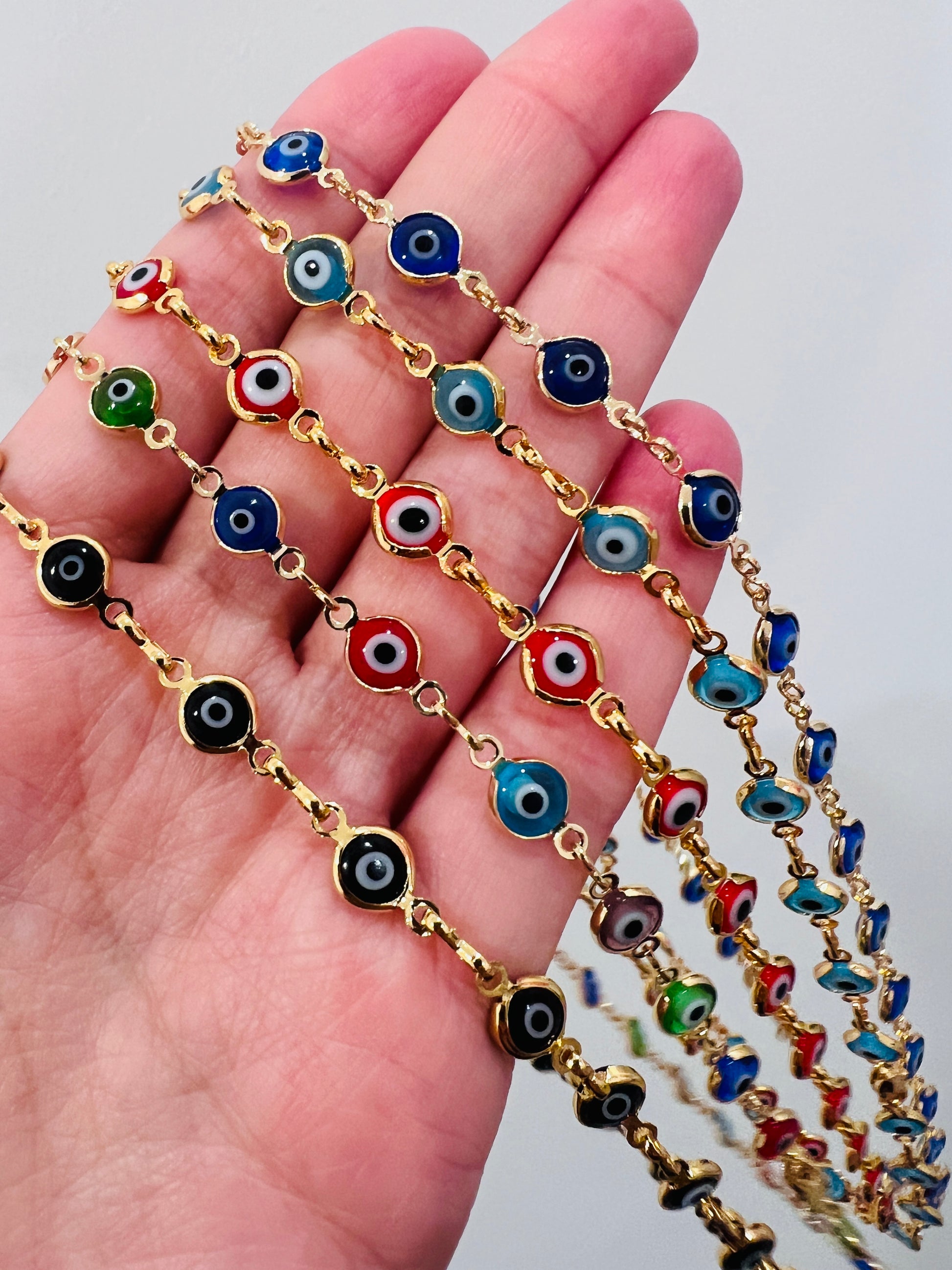 Shield your energy in style with the Gold Filled Evil Eye Necklace from Haus of Monogram. This bold piece features a striking 6mm chain paired with the iconic Evil Eye symbol—known for warding off negativity and inviting good fortune. Available in 16" and 18" lengths, it’s crafted from 18kt gold filled for lasting brilliance and strength, making it a perfect blend of meaning and beauty.