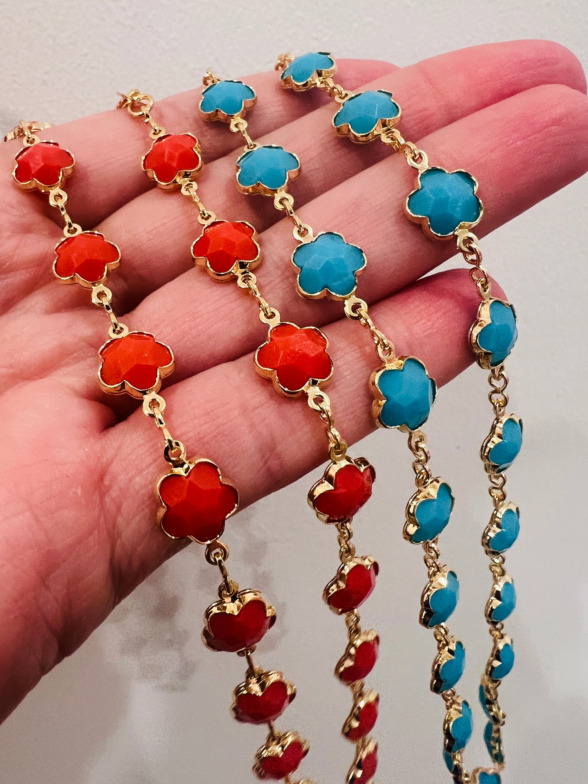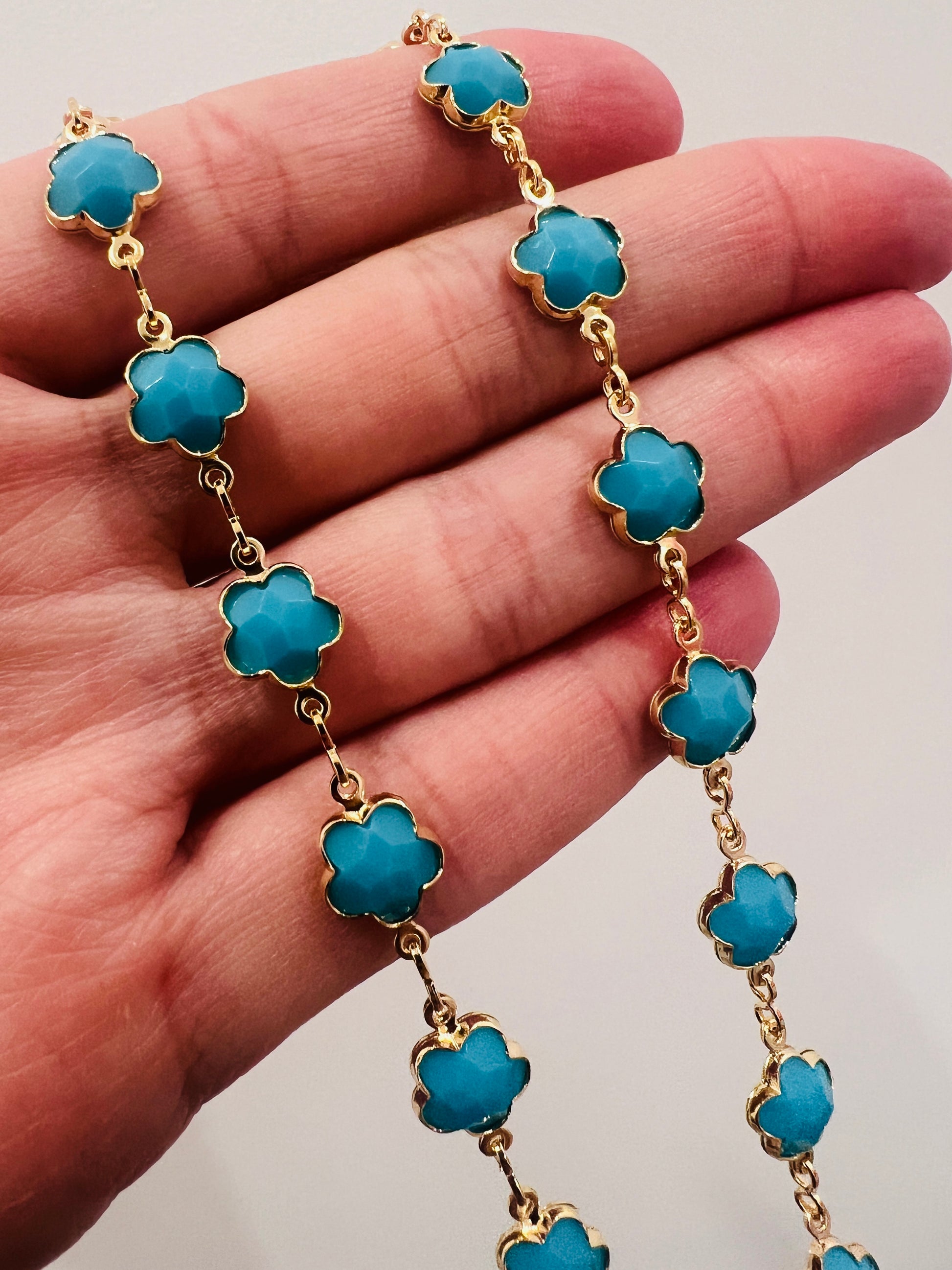 The Gold Filled Flower Gemstone Necklace from Haus of Monogram brings a fresh bloom of elegance to your jewelry rotation. Featuring a radiant floral charm embedded with shimmering gemstones, this piece captures a soft yet luxurious aesthetic. The bold 8mm chain is both eye-catching and graceful, while the adjustable 14"–18" length offers versatile wear whether you’re layering or letting it shine on its own. The flower motif evokes beauty, joy, and natural harmony—perfect for everyday elegance or meaningful gifting.