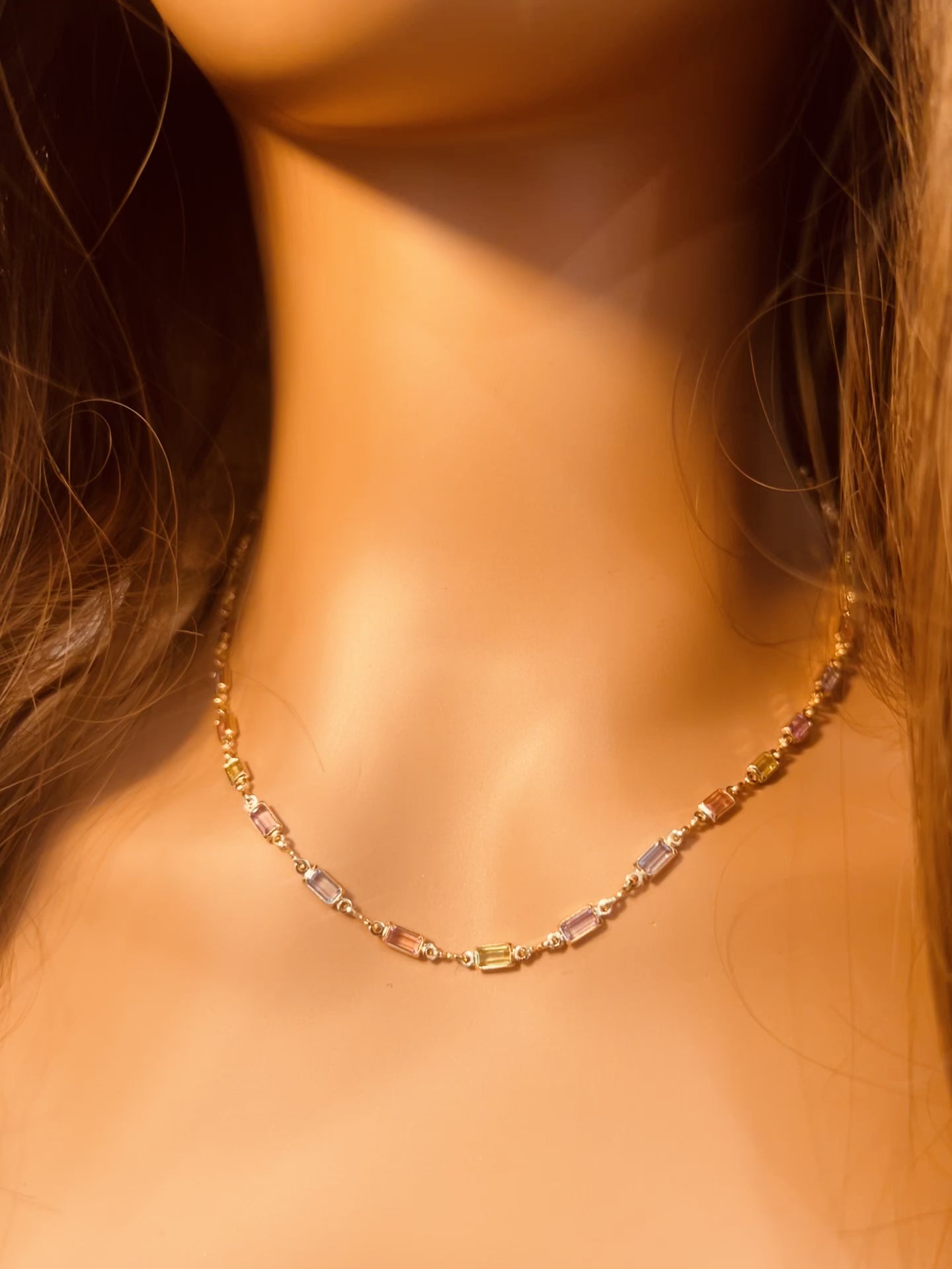 Gold Filled Gemstone Necklace | 18kt Dainty Colorful Choker
