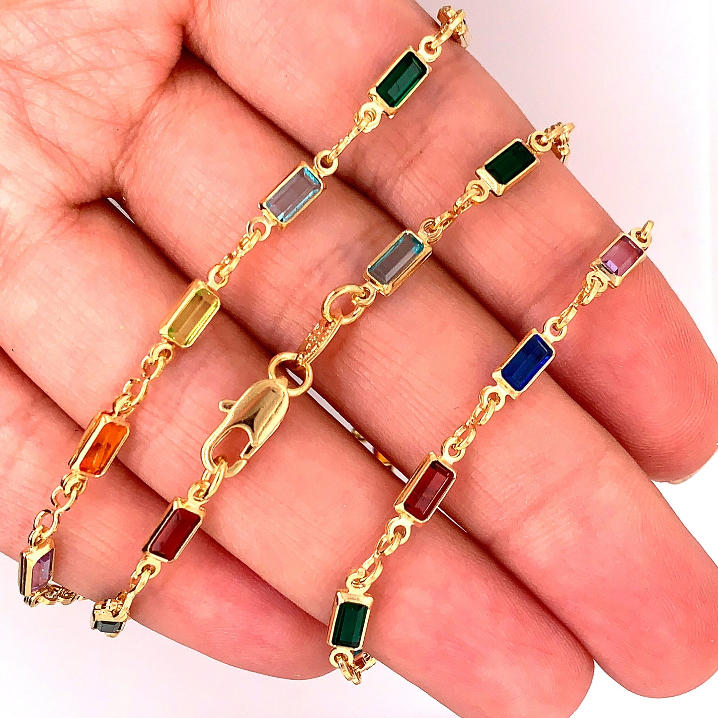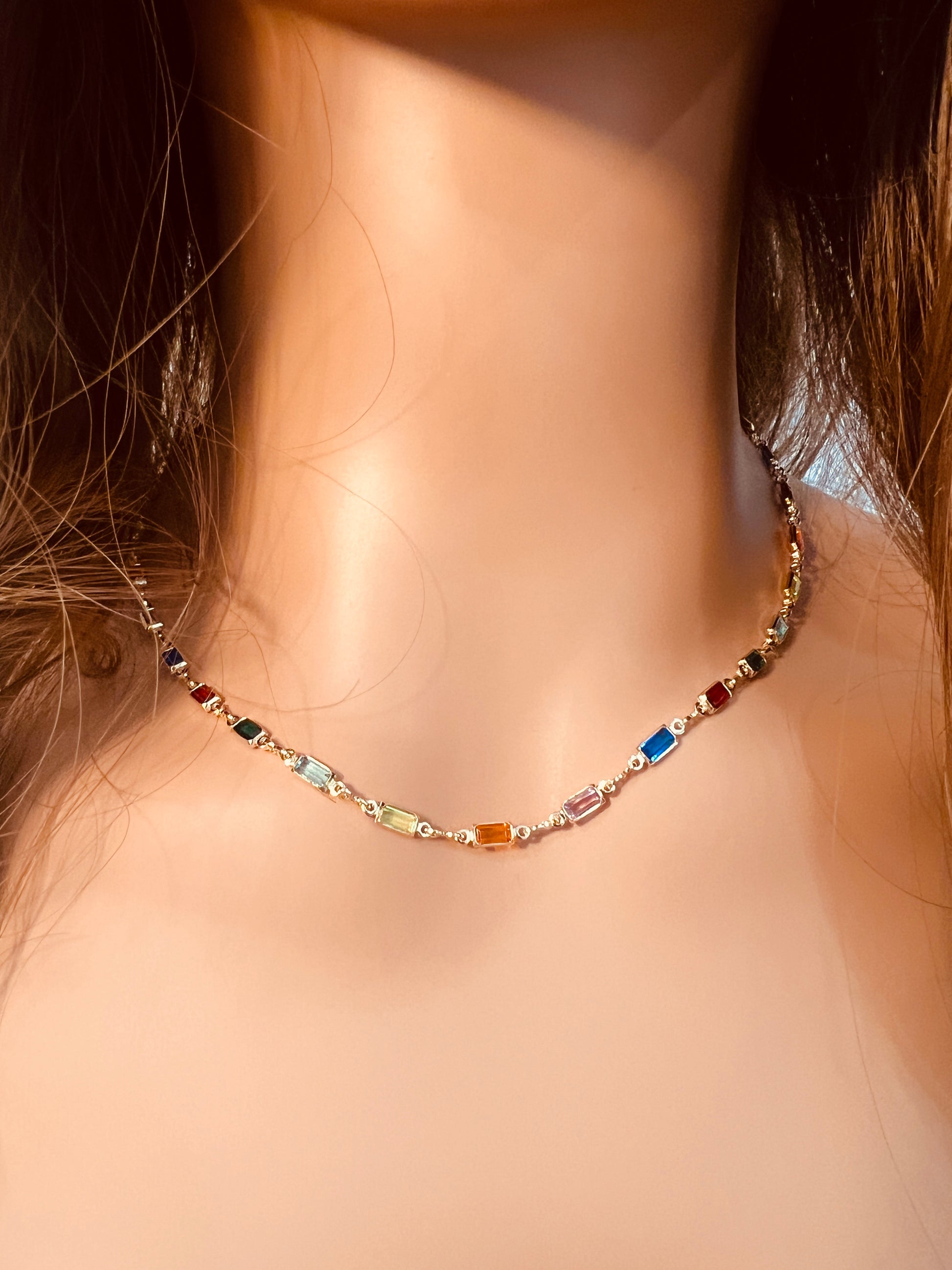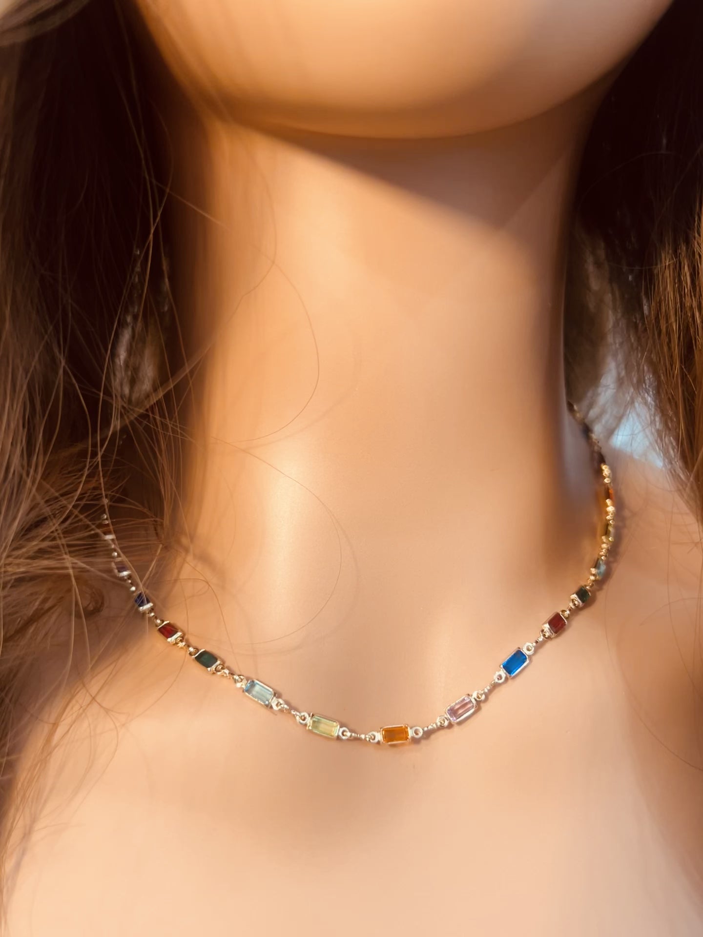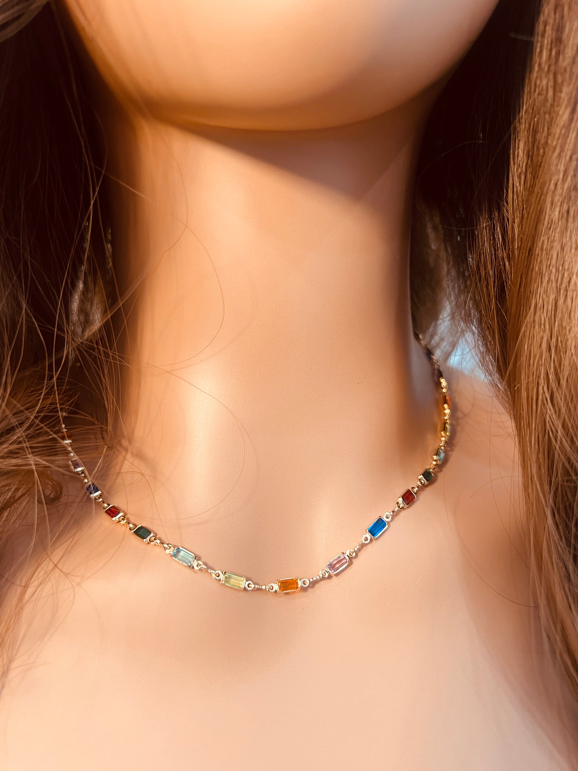 Keep it dry and store it in the plastic bag included in your purchase. Avoid harsh chemicals such as perfume, hairspray, lotions, and oils. Never use abrasive products to clean your jewelry. A beautiful blend of elegance and color, this gemstone necklace is your go-to for effortless layering — exclusively at Haus of Monogram.