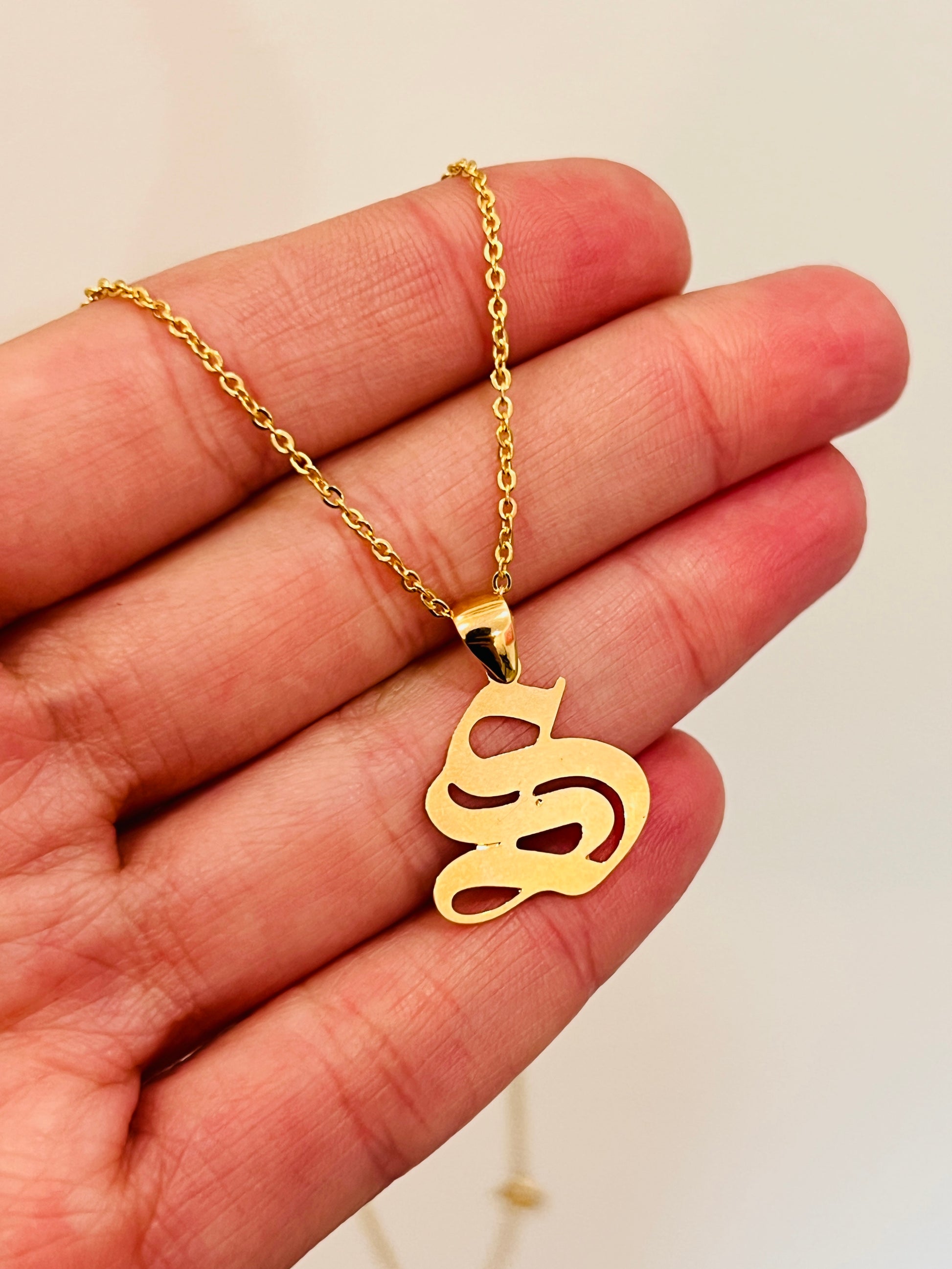 Gold Filled Gothic Initial Necklace | Pendant Size 17mm x 18mm + Bail | 16", 18", or 20" Length