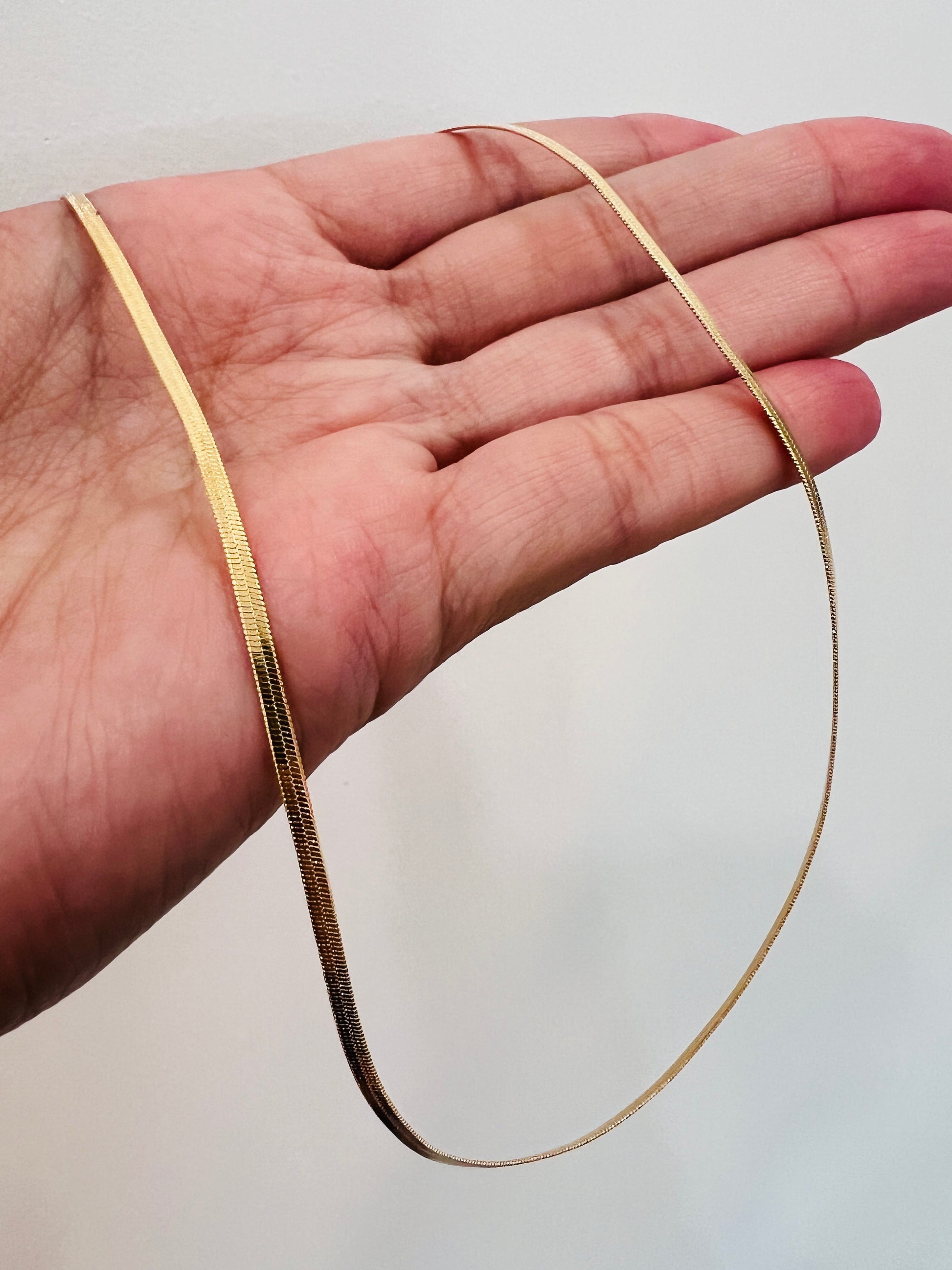 Gold Filled Herringbone Necklace | 2mm Flat Chain 16–18
