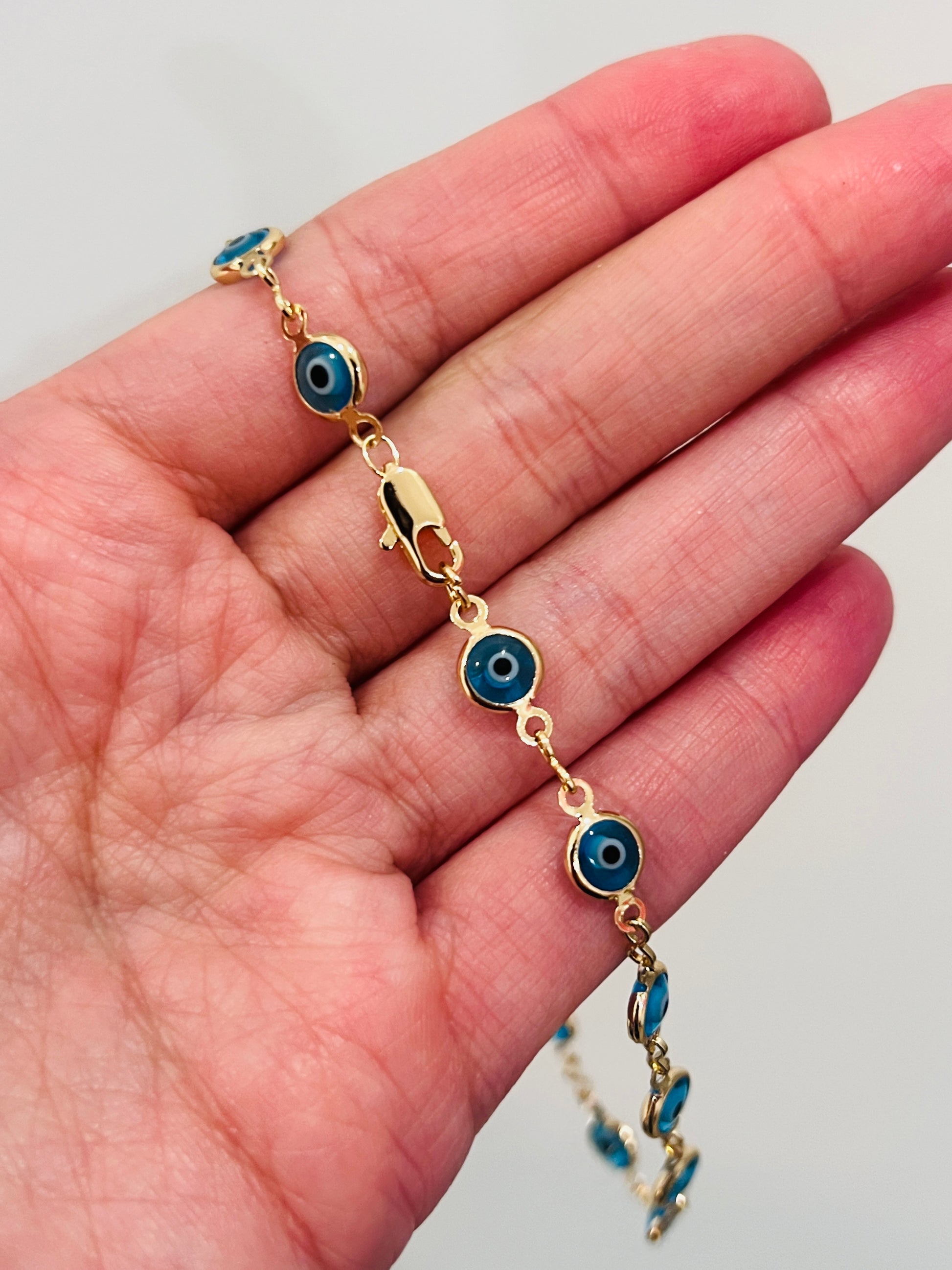 - Eye Size: 6mm light blue evil eye charm