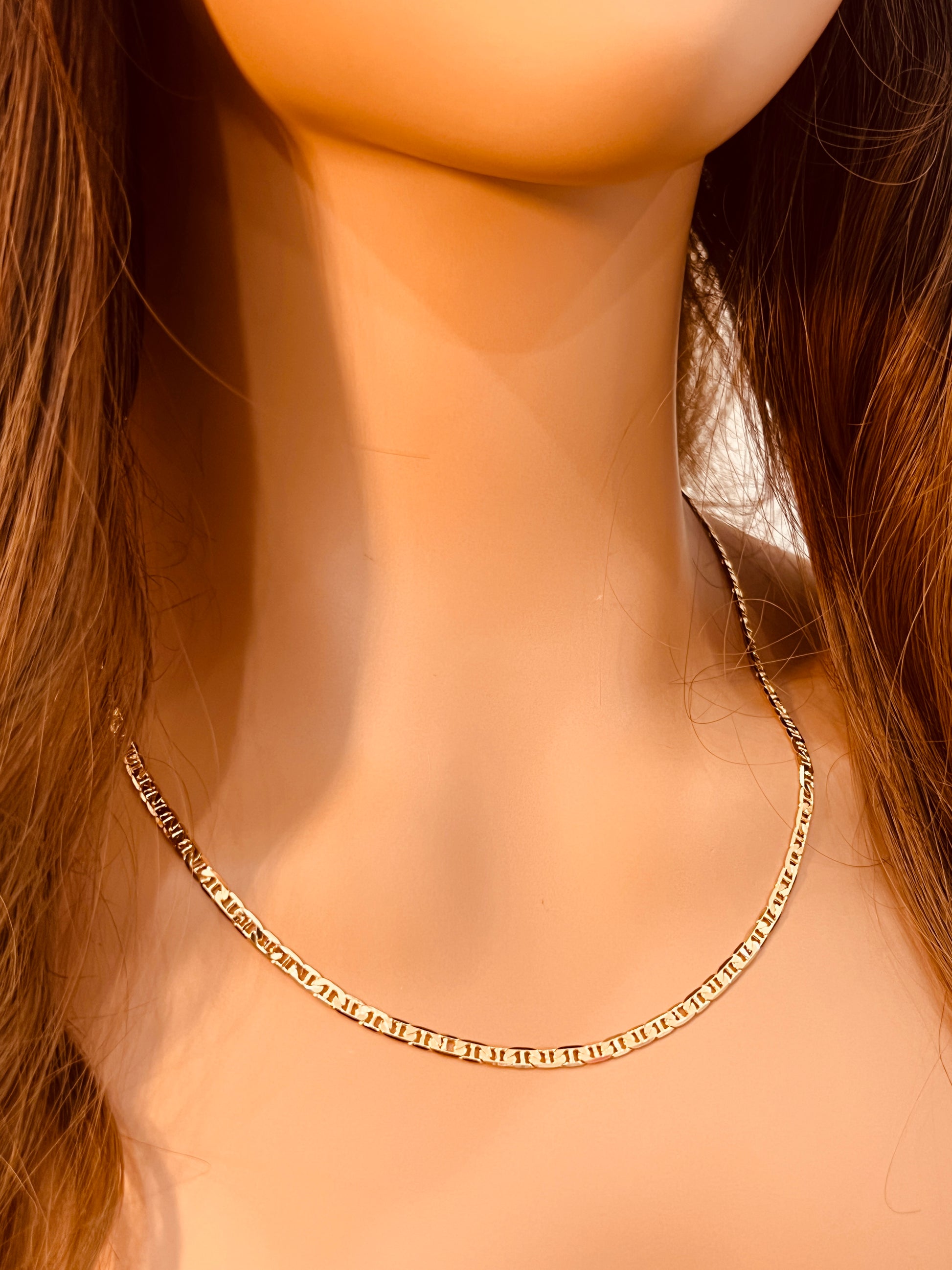 Add a sleek touch to your jewelry lineup with this Gold Filled 2.5mm Mariner Necklace, available in lengths from 14" to 24", including an adjustable 14" + 2" extender for added versatility. The mariner link design is a classic choice that offers a refined nautical feel—ideal for layering or making a subtle solo statement. The 2.5mm width delivers just the right amount of shine without overwhelming your look. Made with a thick layer of 18kt gold bonded to a strong base metal, this piece from Haus of Monogram is hypoallergenic, tarnish-resistant, and built to last. Whether you're dressing up or going casual, this chain adapts effortlessly.