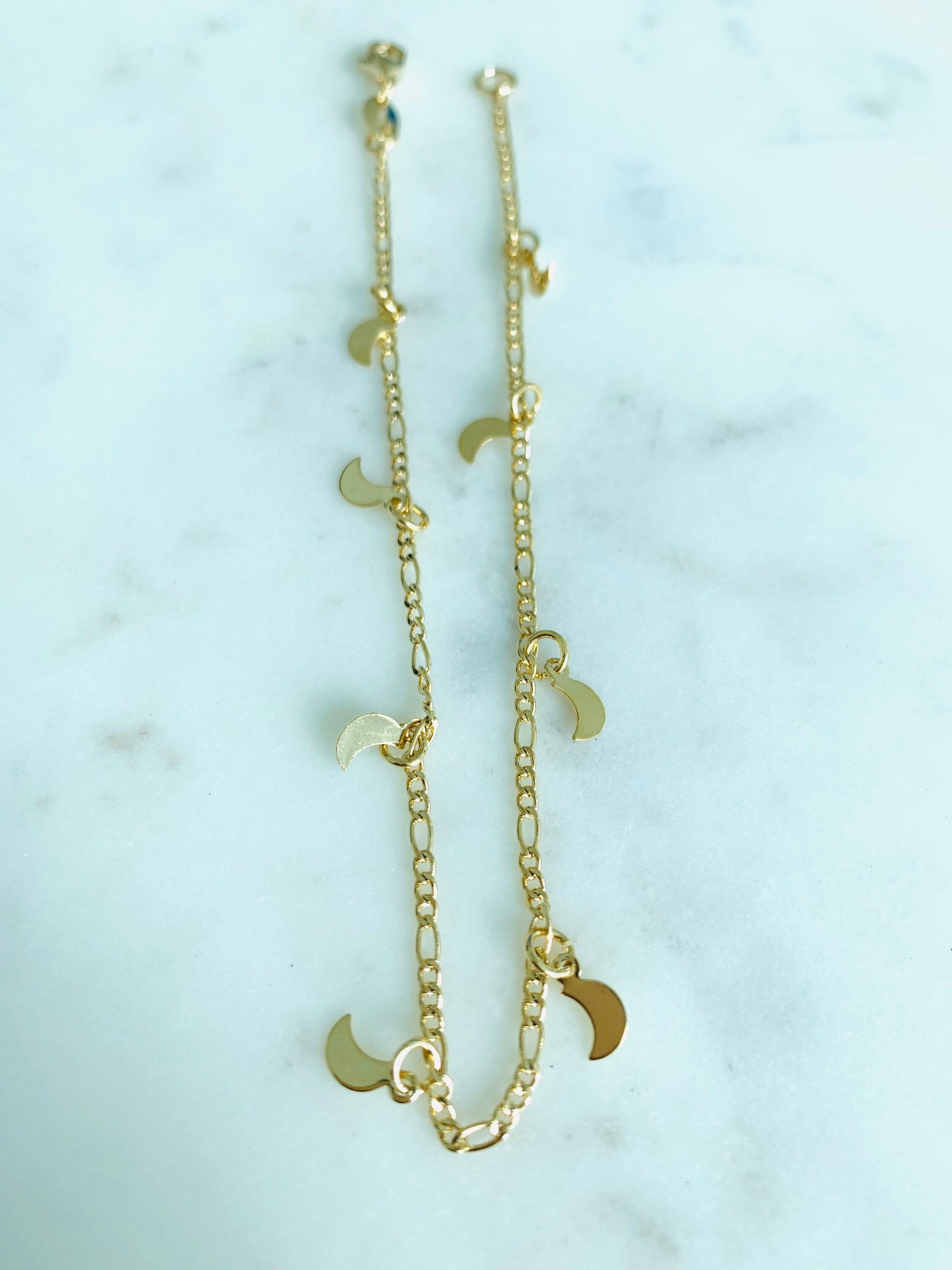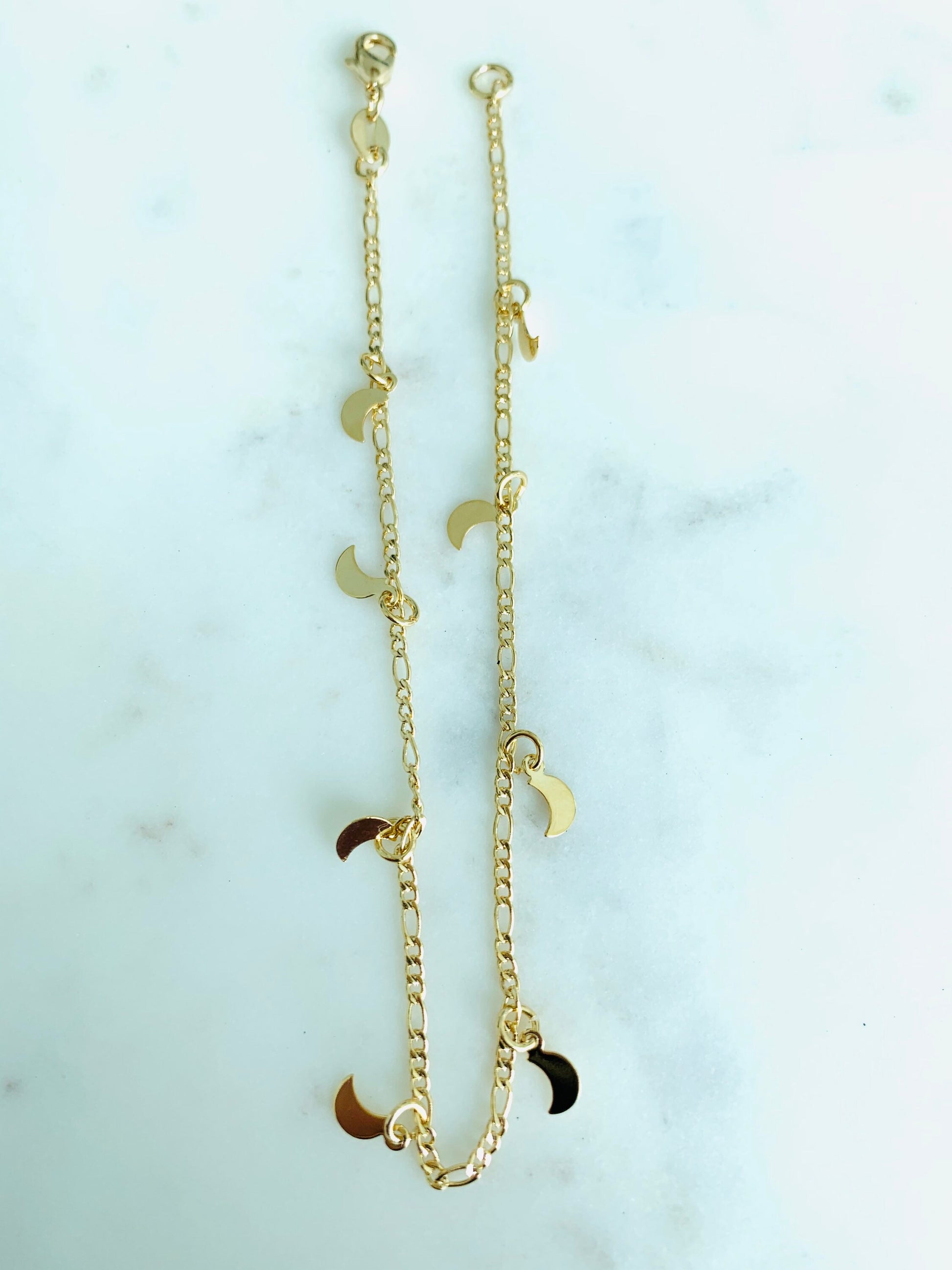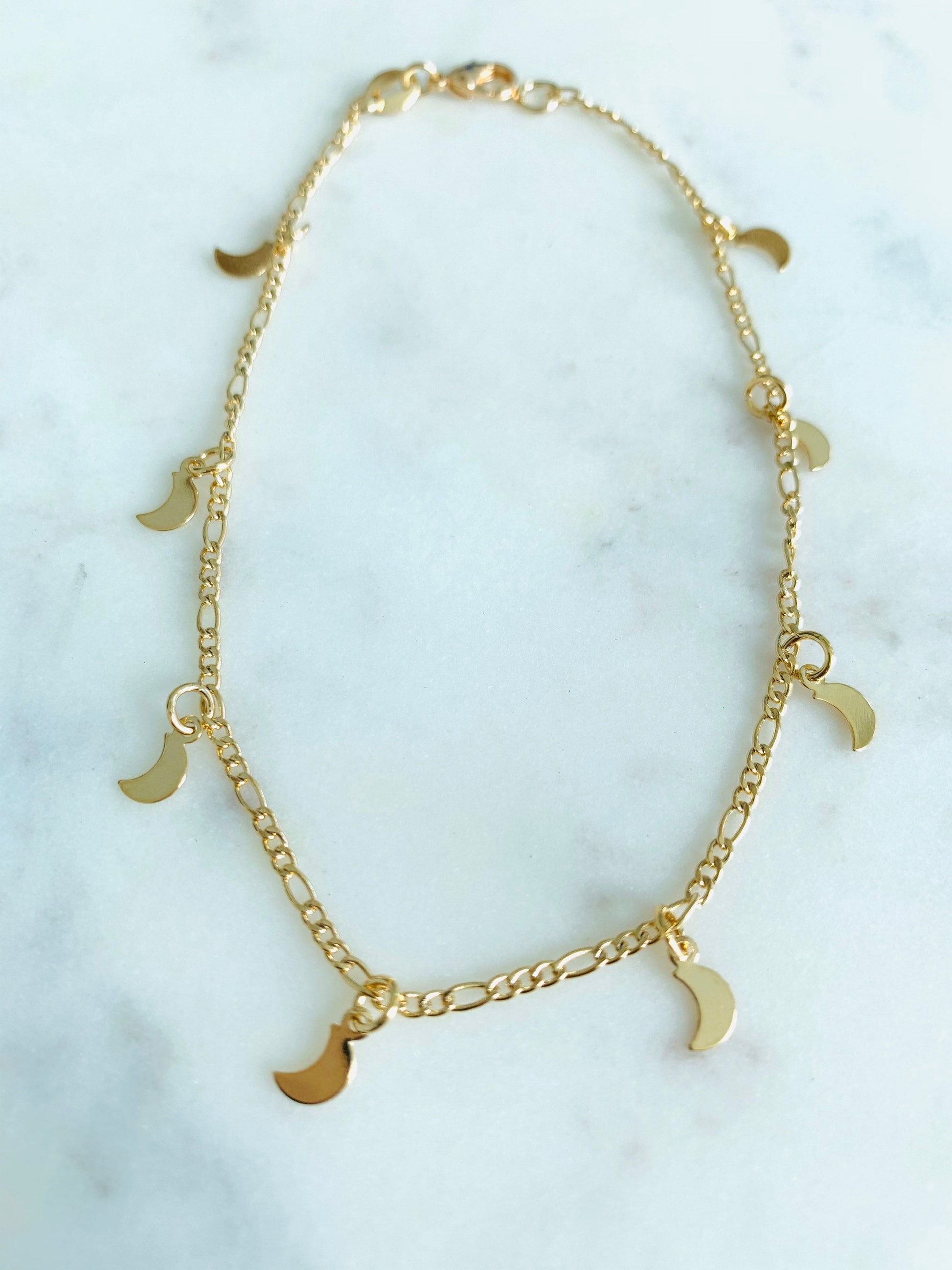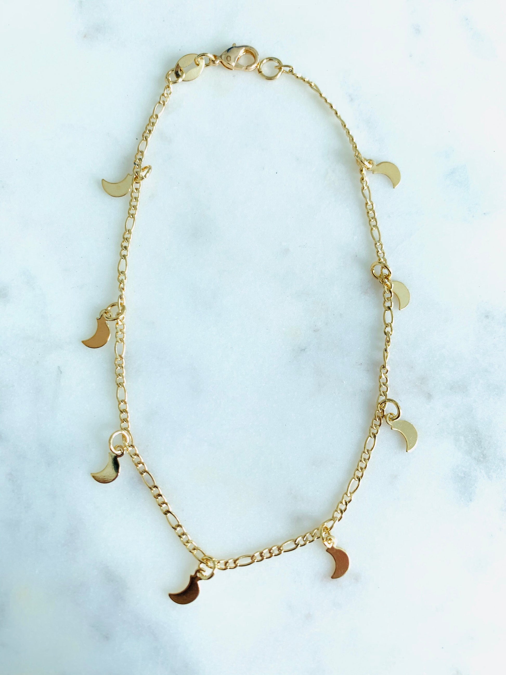 Gold Filled Moon Charm Anklet | Dainty Celestial Accent