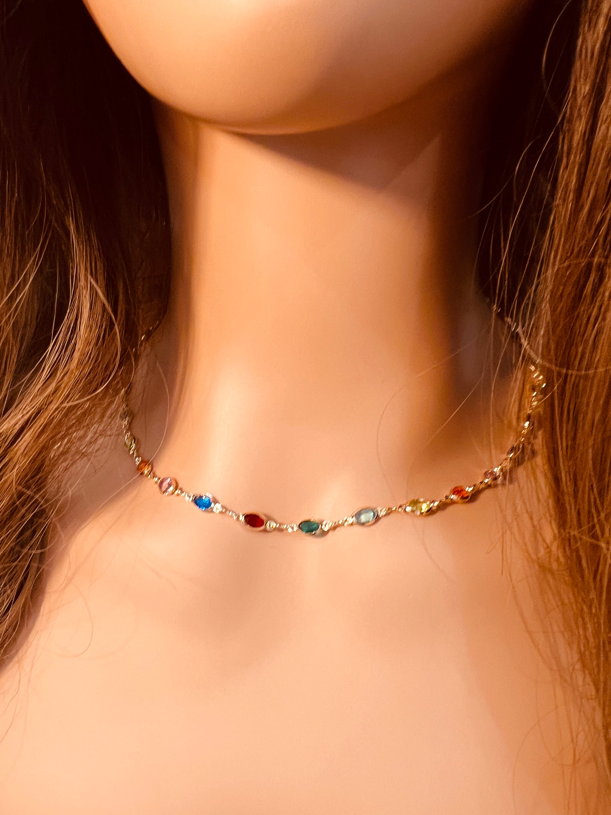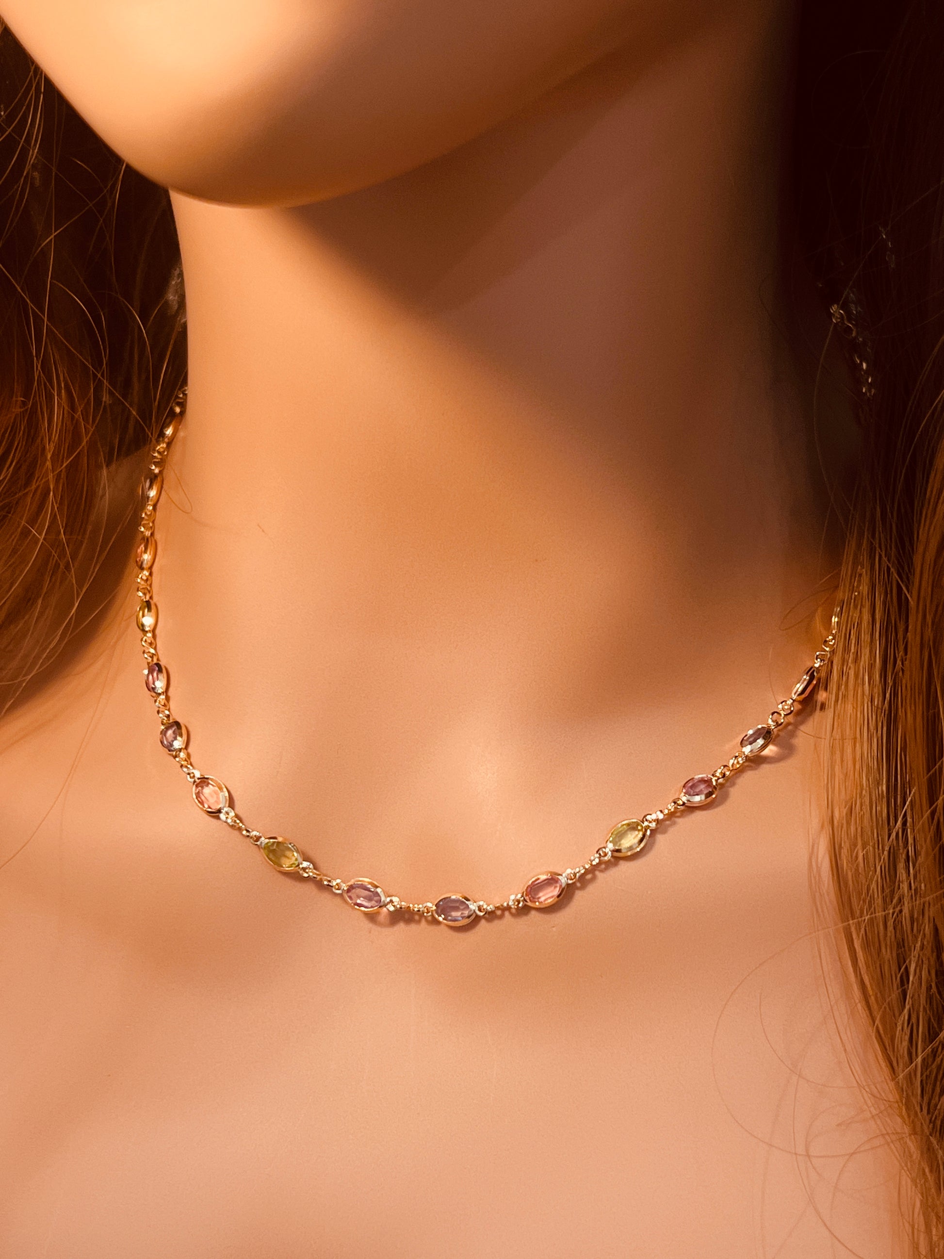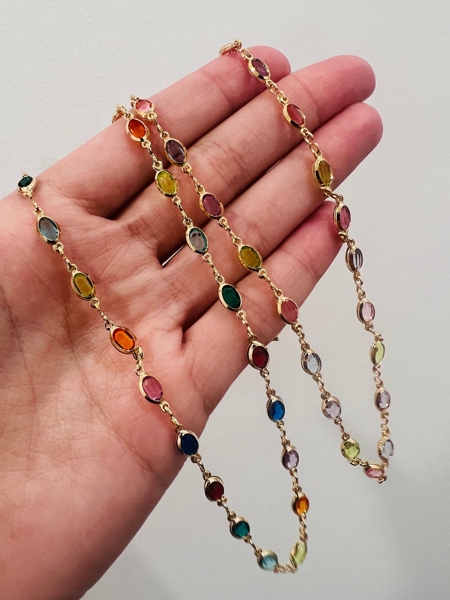 Gold Filled Oval Gemstone Necklace | Elegant Statement Chain with 18kt Shine