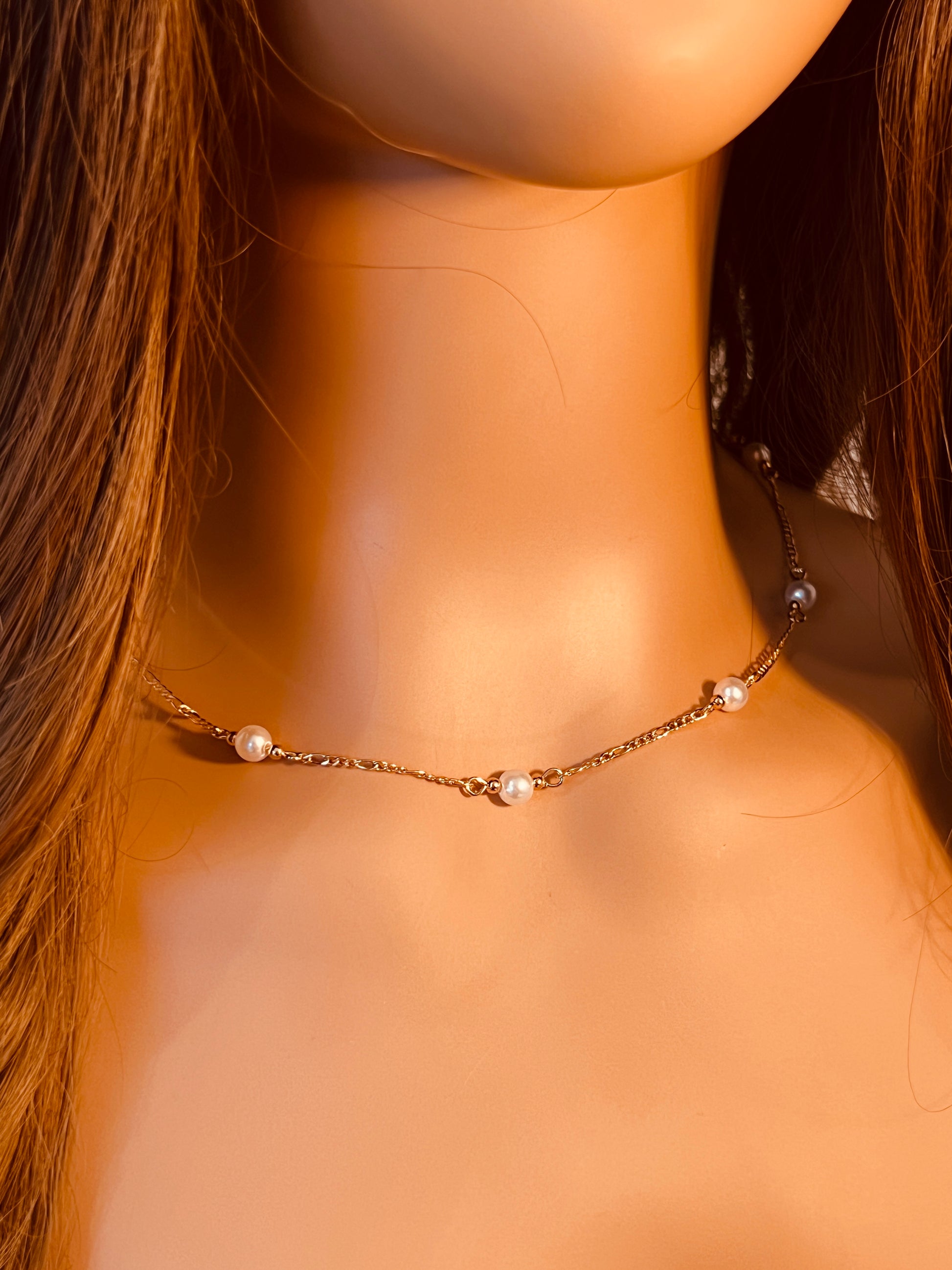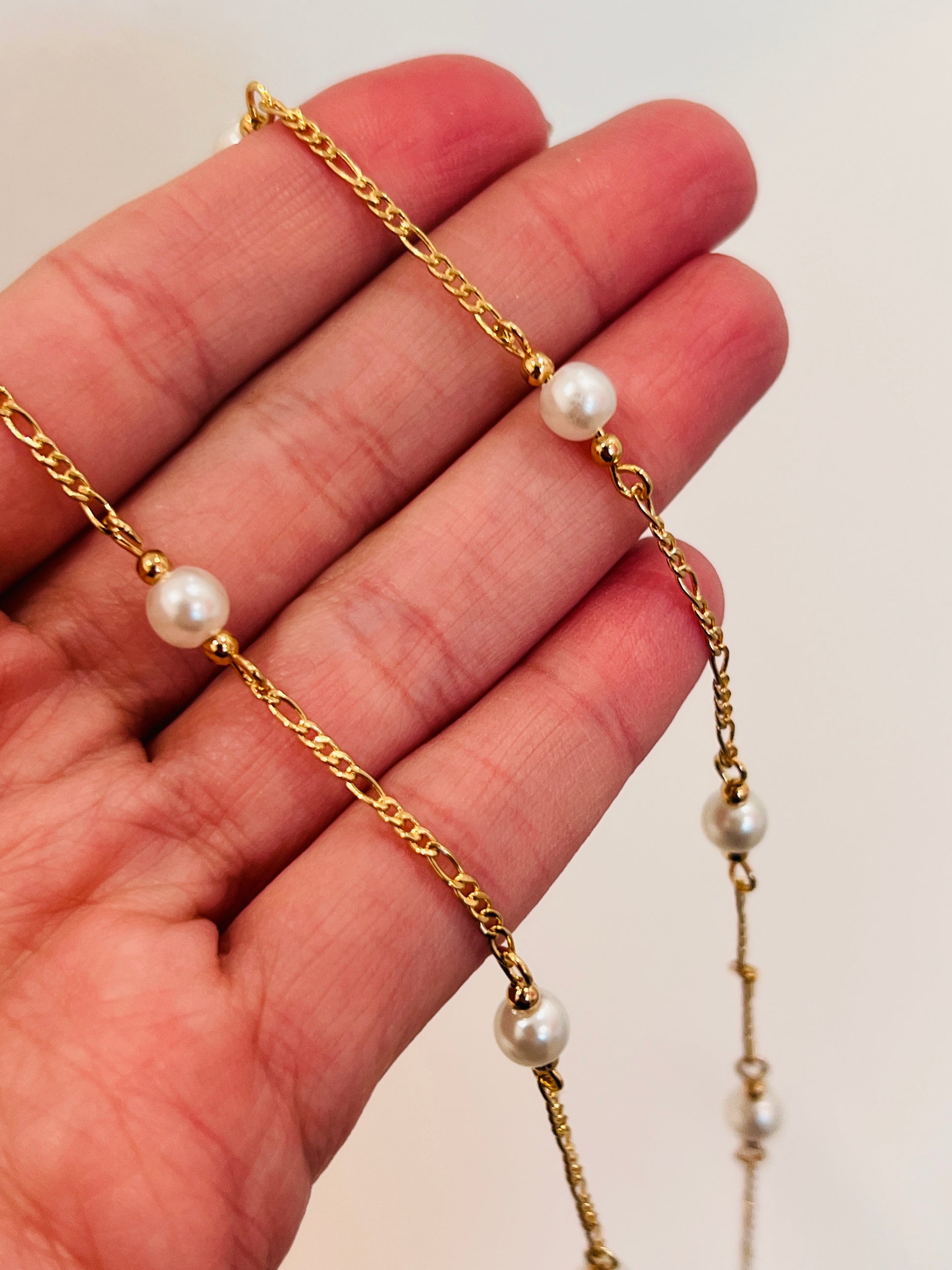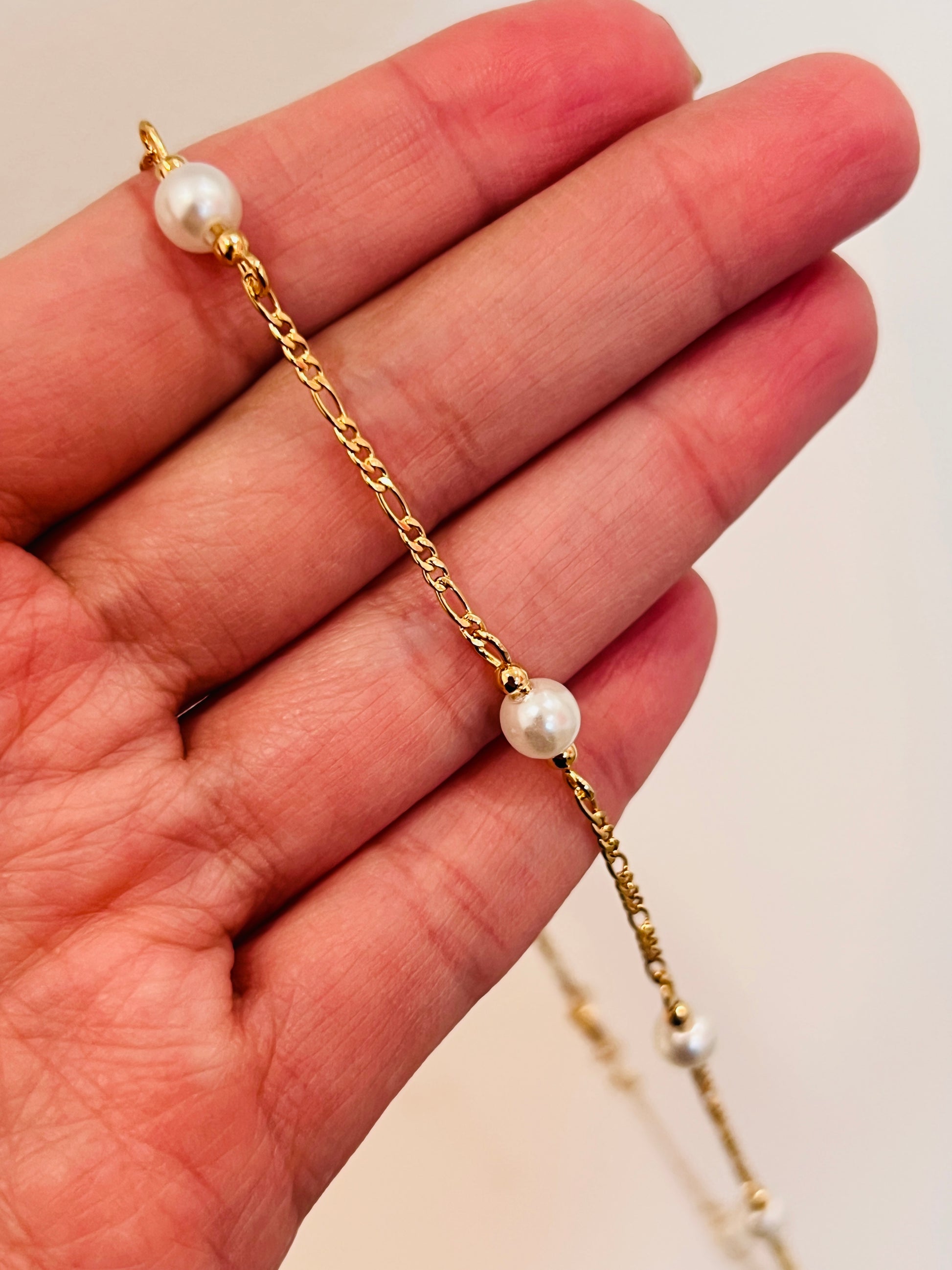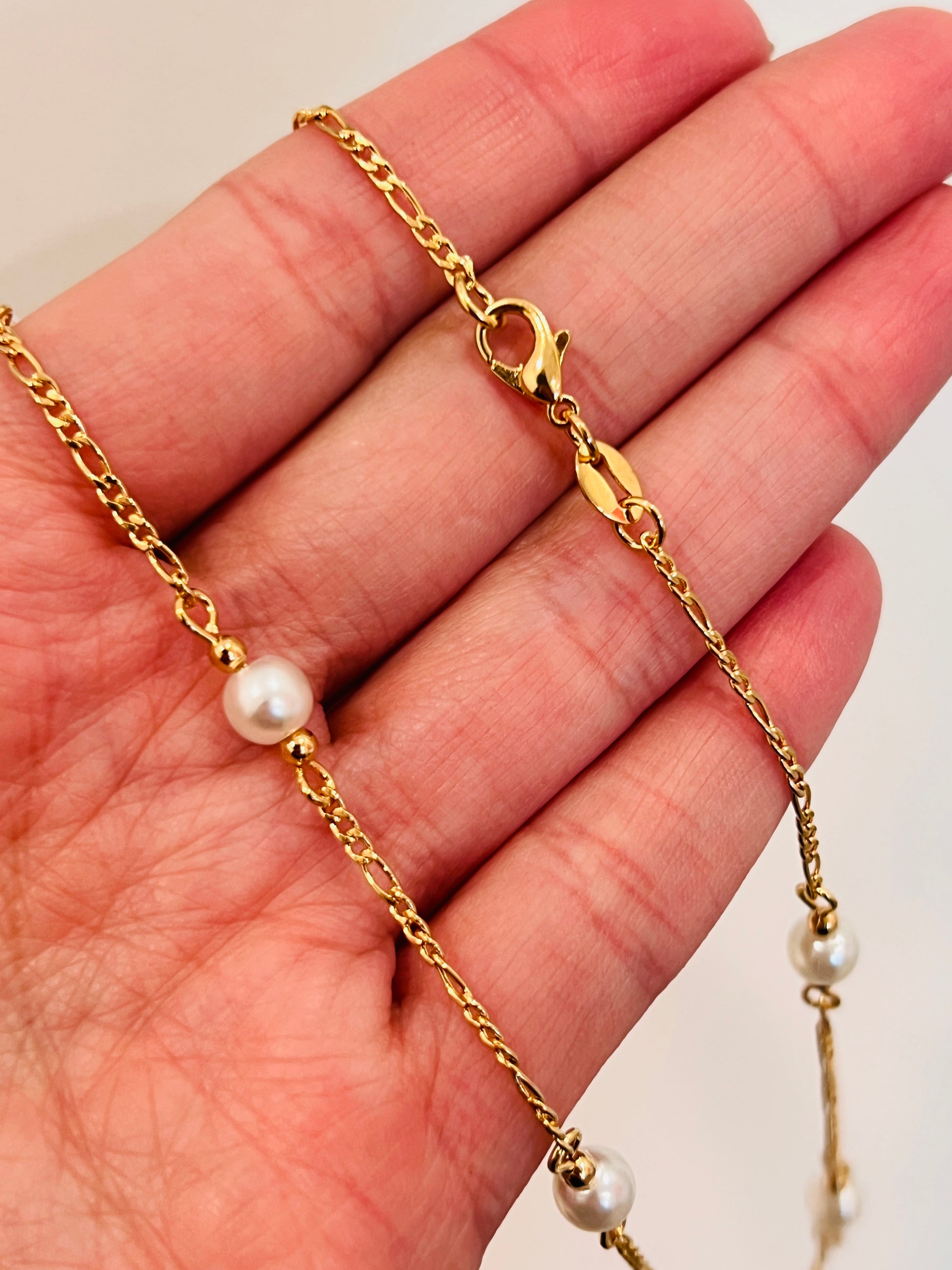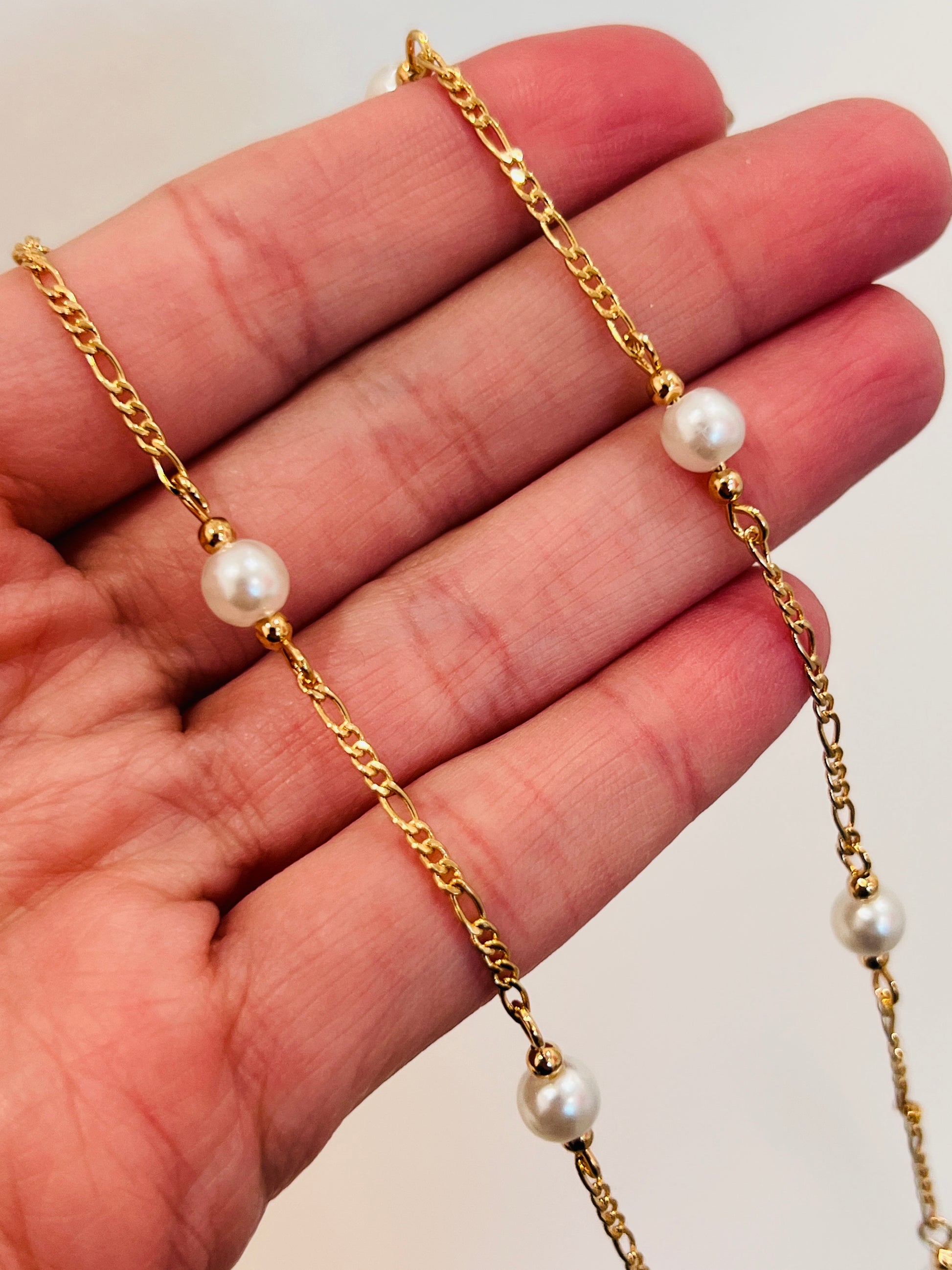 Gold Filled Pearl Figaro Necklace | 6mm Beaded Chain