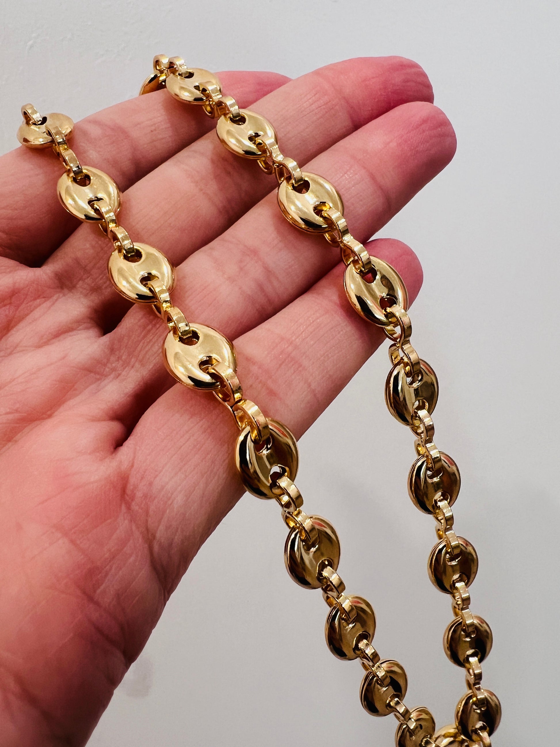 Turn heads with our Gold Filled Puff Necklace, crafted to make a bold and elegant statement. With a thick 8mm width and lengths ranging from 14 to 30 inches, this piece offers full styling flexibility—from chokers to long layered looks. Made with a solid layer of 18kt gold pressure-bonded to a durable base metal, this chain gives you the rich look of solid gold at an accessible price. Its high-polish finish resists tarnishing, while the weighty puff design adds luxury to everyday styling. Whether worn alone or layered with other favorites, every piece from Haus of Monogram is built to shine through seasons and trends. Add this timeless staple to your collection and enjoy lasting elegance, day after day.