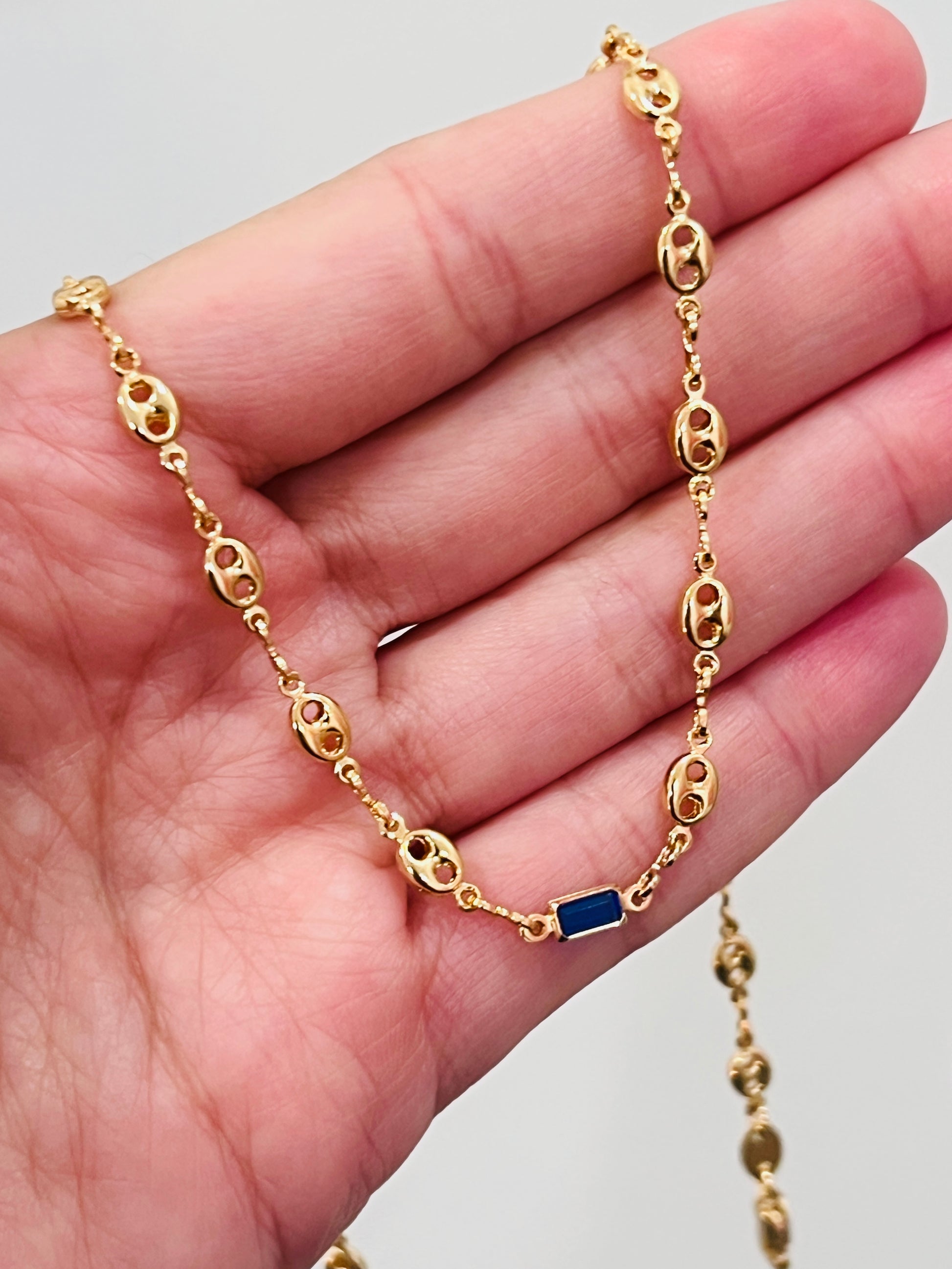 Add a touch of vibrant elegance to your jewelry collection with our Gold Filled Puff Necklace featuring a stunning blue rectangle gemstone accent. The 16" chain with a 2" extension offers a versatile fit, while the 4mm width provides a bold yet refined look. The vivid blue gemstone adds a pop of color, making this necklace perfect for layering or standing alone as a statement piece. Crafted from durable 18kt gold filled material, this necklace is hypoallergenic and tarnish-resistant, making it ideal for everyday wear or special occasions. Whether you're dressing up or down, it brings a perfect balance of sophistication and modern charm. Crafted with care by Haus of Monogram.