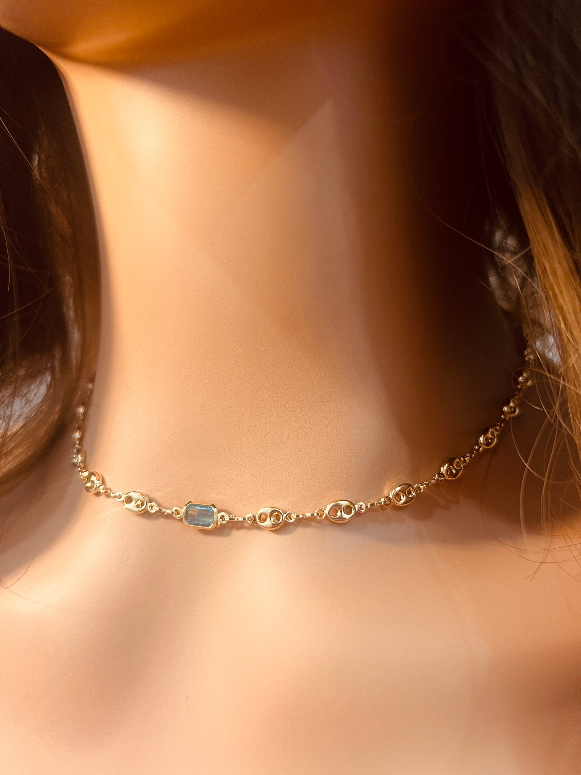 Gold Filled Puff Necklace | Light Blue Gemstone Accent