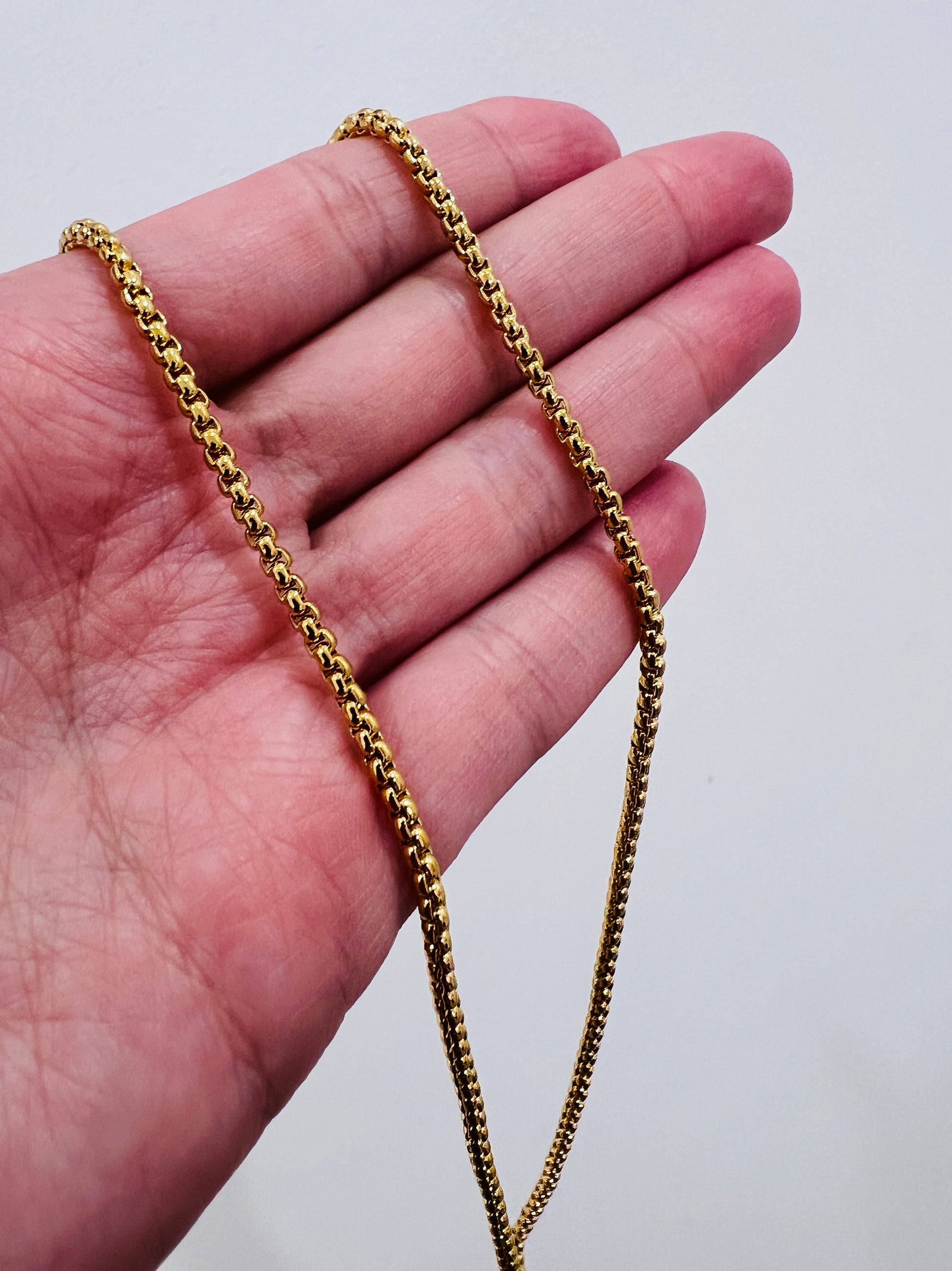 Crafted with a thick layer of 18kt gold bonded to a durable base metal, this chain offers the luxurious look of solid gold without the cost. It’s hypoallergenic, tarnish-resistant, and made to endure daily wear with proper care. To keep your chain looking its best, avoid contact with moisture, perfumes, oils, and other harsh chemicals. Always store it in the protective plastic bag provided and avoid abrasive cleaners. The Gold Filled 2mm Rolo Chain from Haus of Monogram is a sleek, long-lasting essential for modern minimalists.