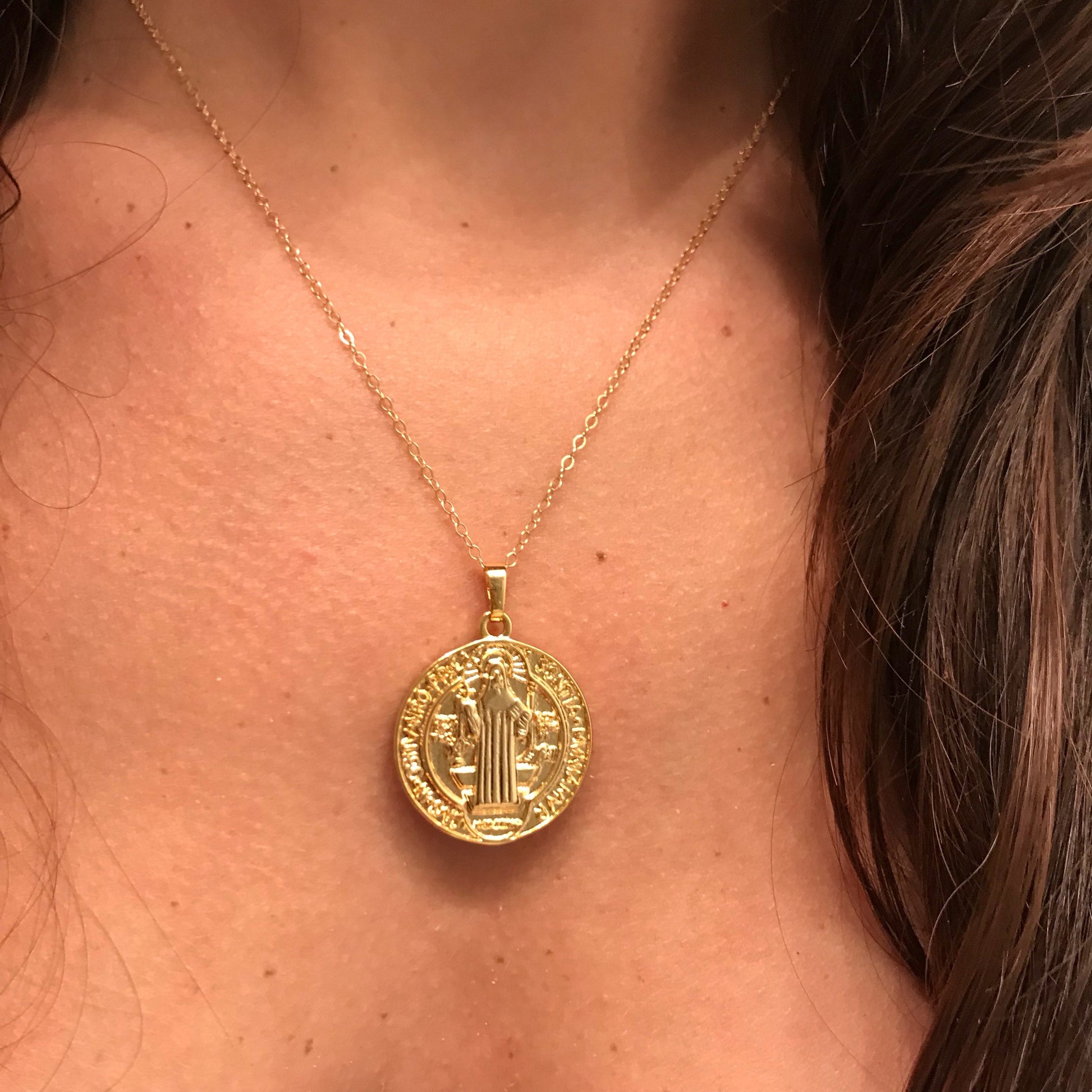 Gold Filled Saint Benedict Medal Necklace | Catholic Protection Pendant