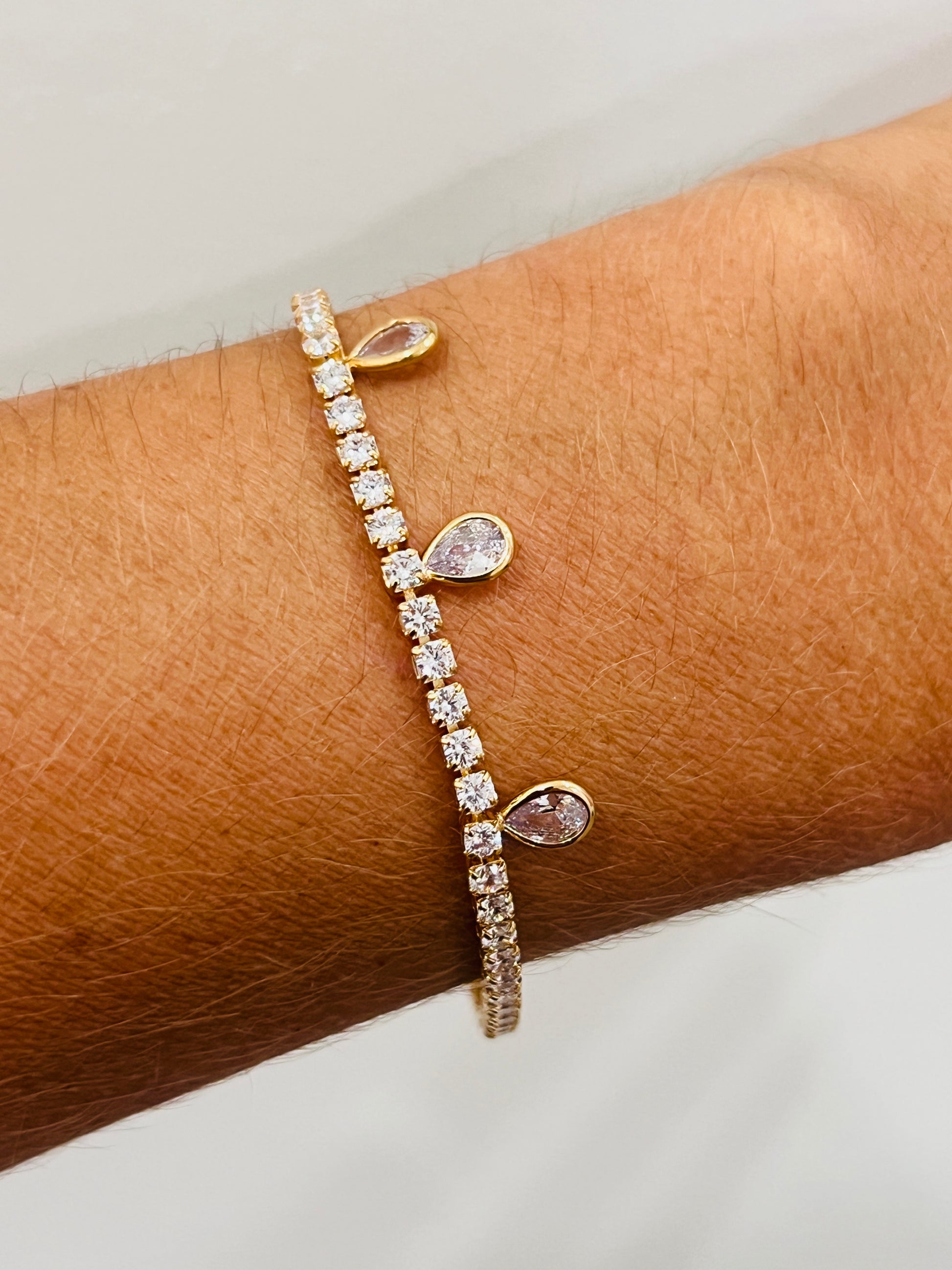 Gold Filled Tennis Bracelet | CZ Teardrop | 2mm Width