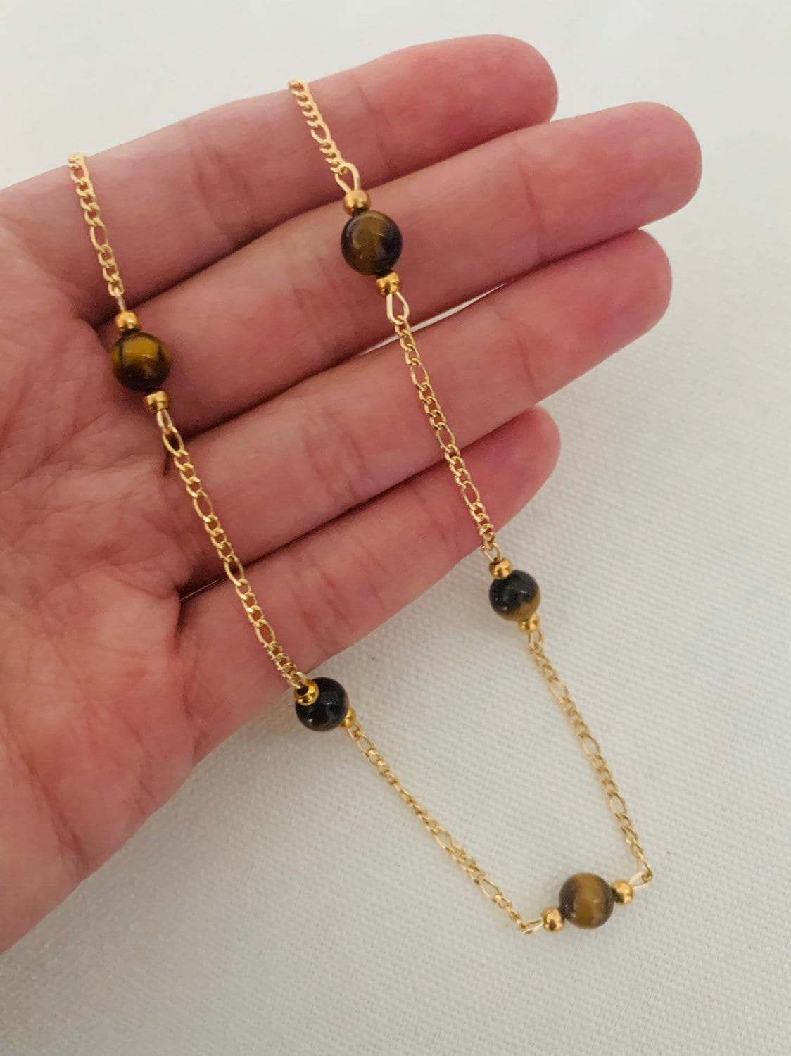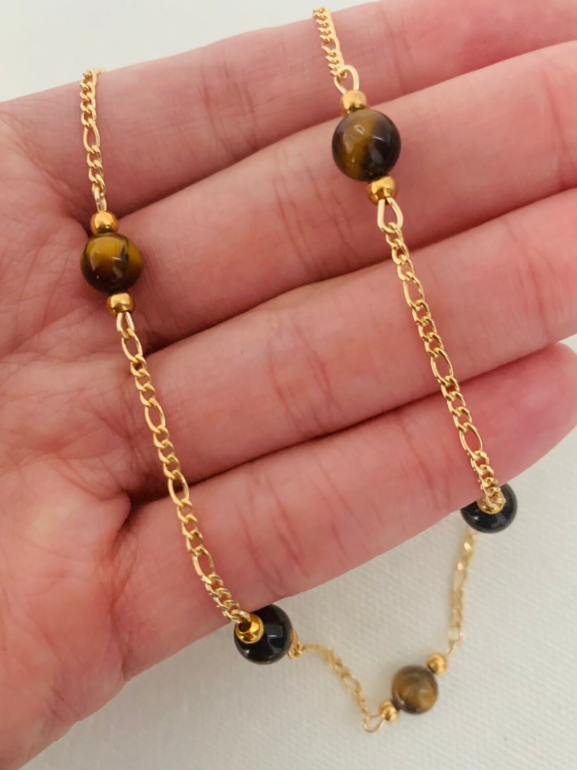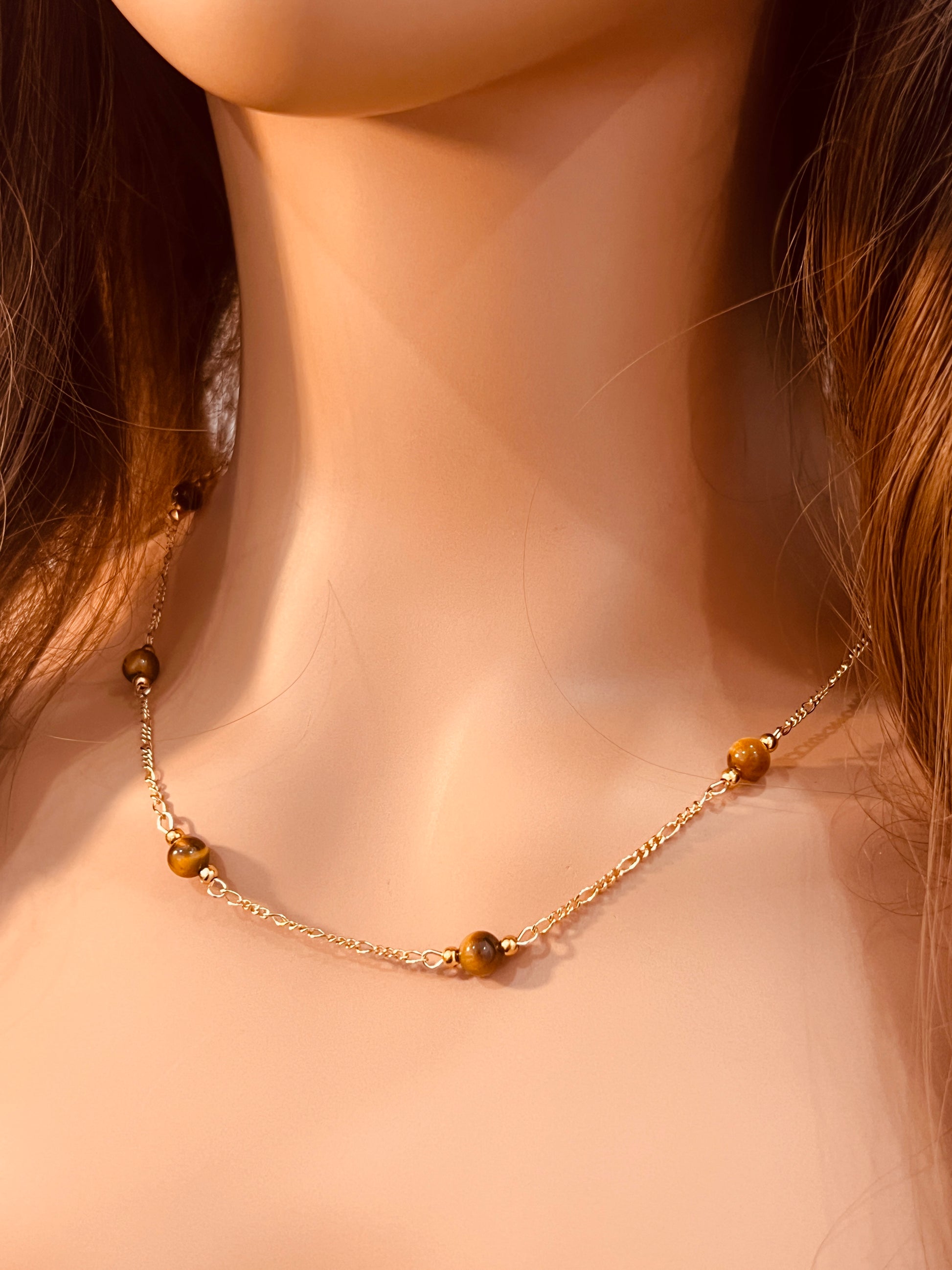 Gold Filled Tiger Eye Figaro Necklace | 6mm Natural Stone Beads