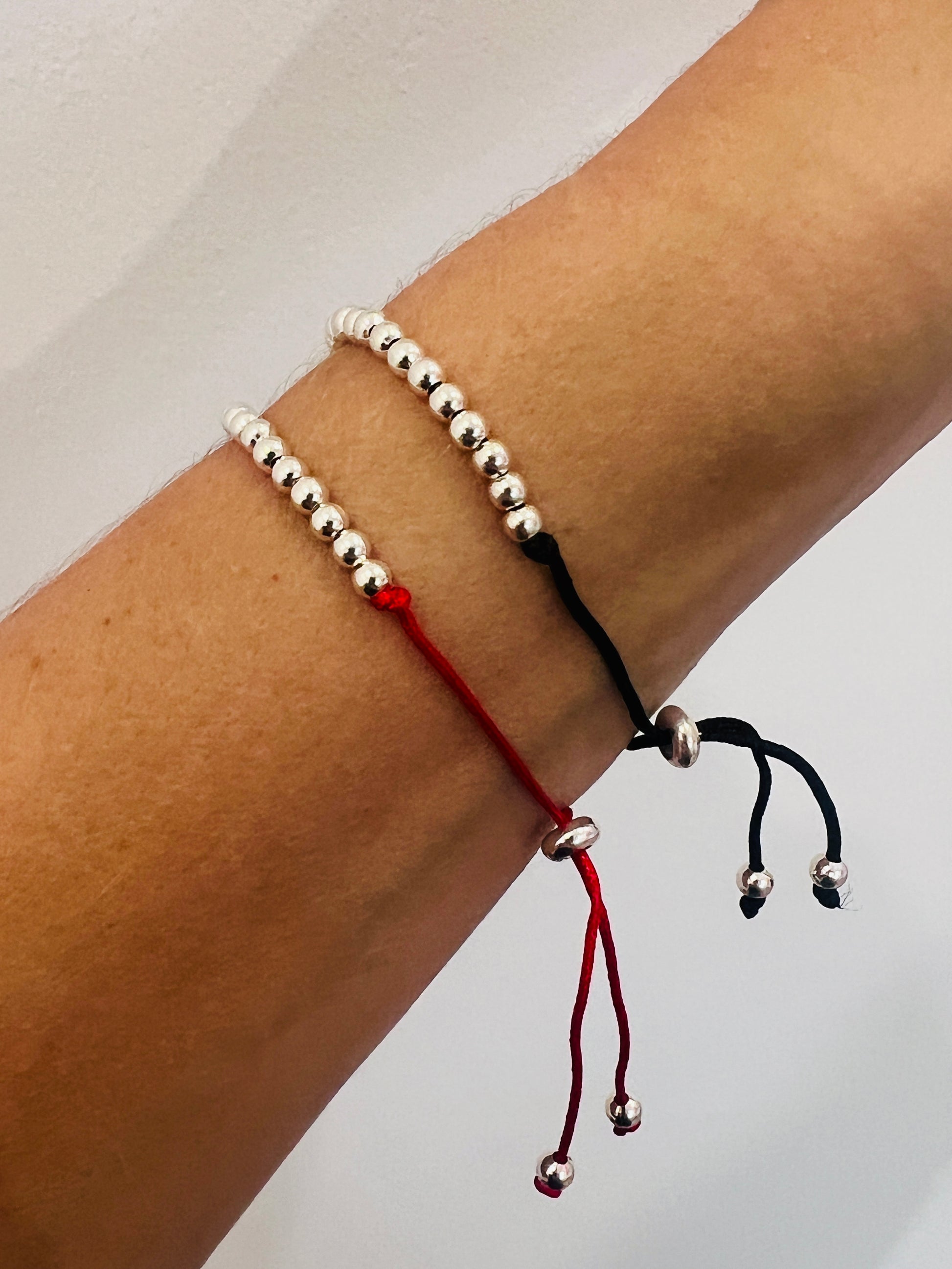 Sterling Silver Adjustable Bracelet | 3mm Red or Black