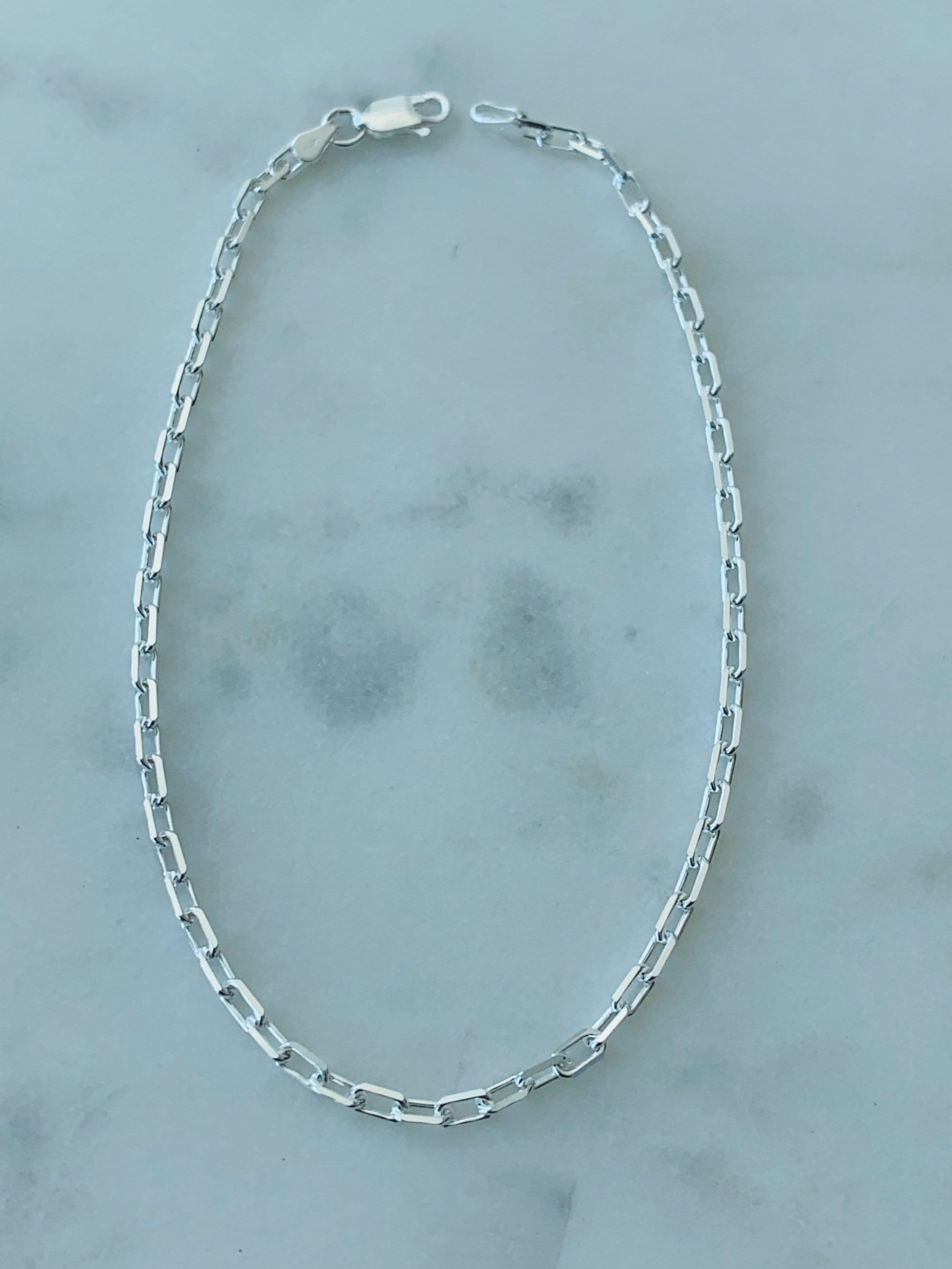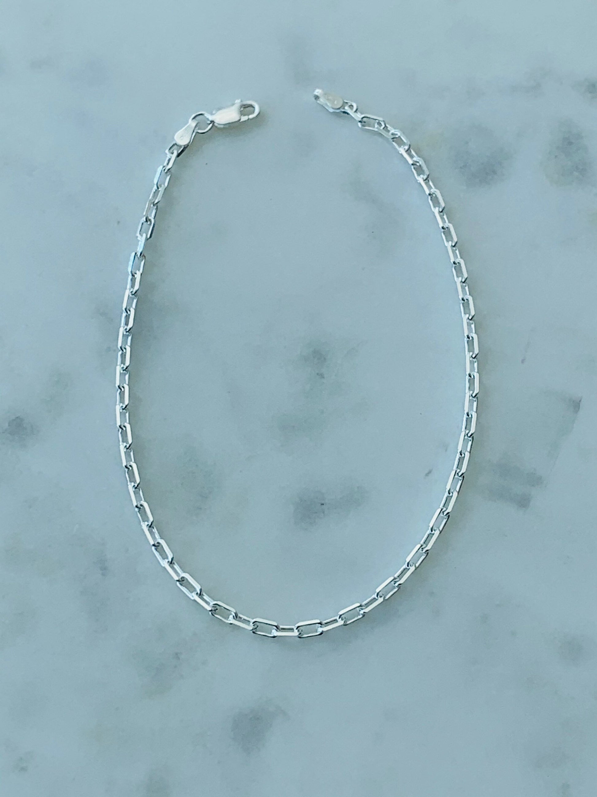 The Sterling Silver 3mm Paperclip Anklet is your new go-to for effortless shine and modern elegance—only from Haus of Monogram.
