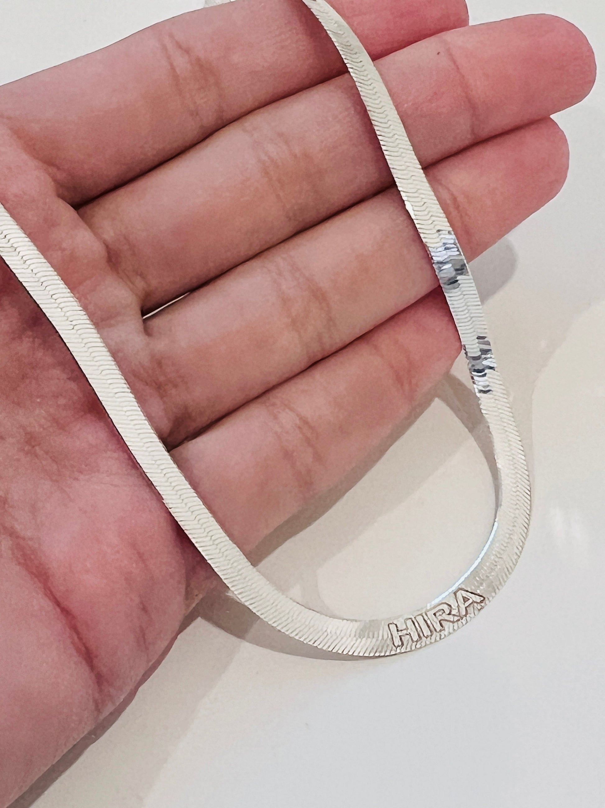 Sterling Silver 4mm Engraved Herringbone Necklace | Sleek, Timeless Shine