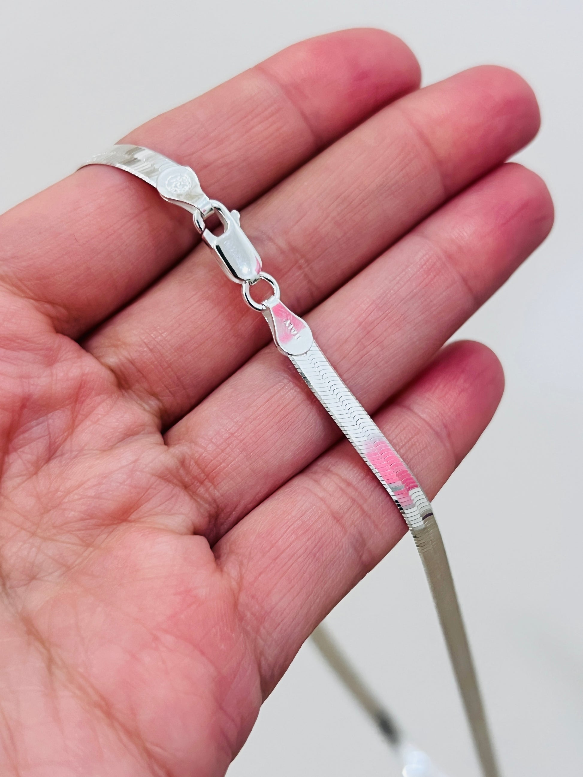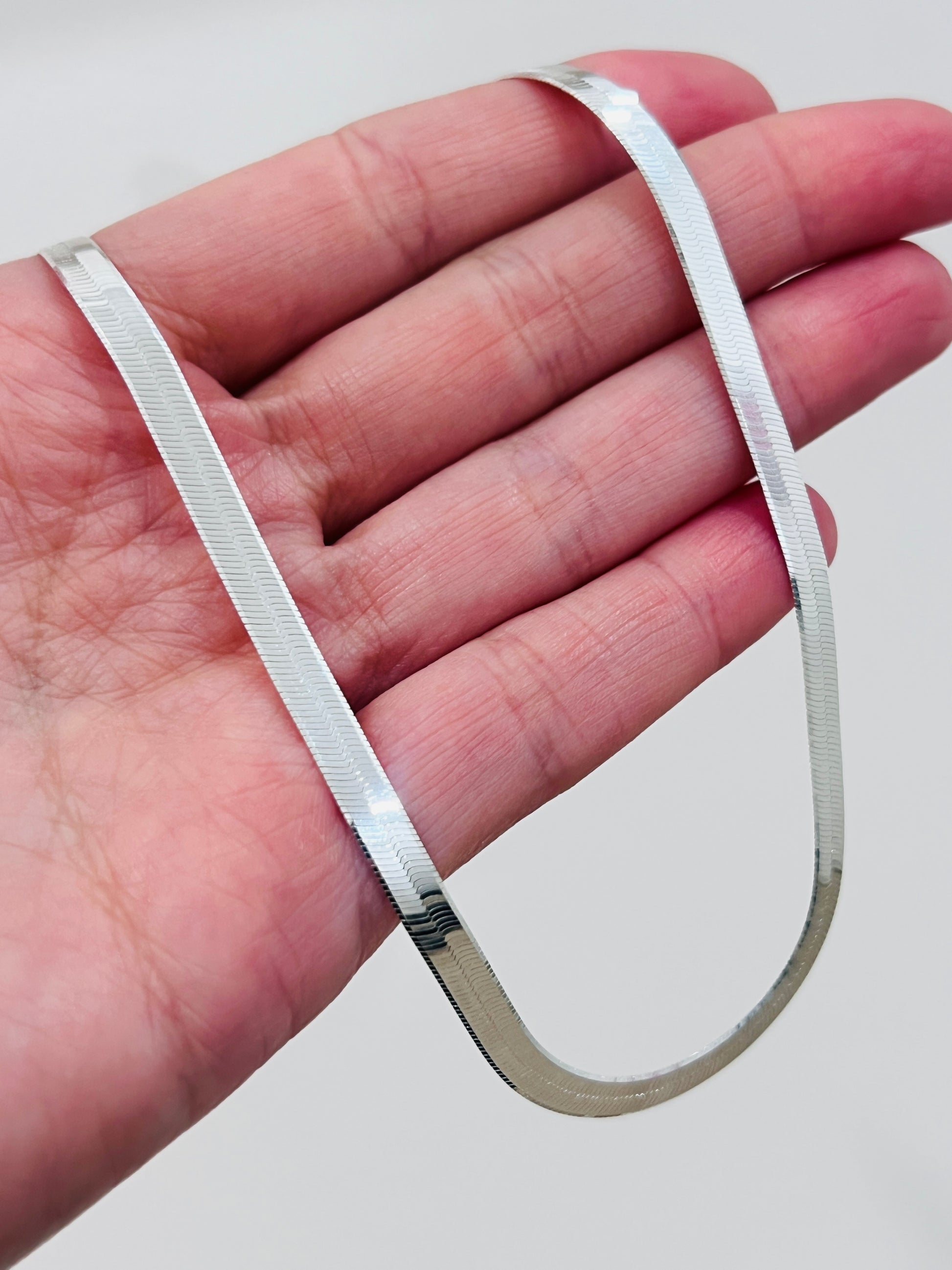Sterling Silver 4mm Herringbone Necklace | Sleek Sophistication in 925 Silver