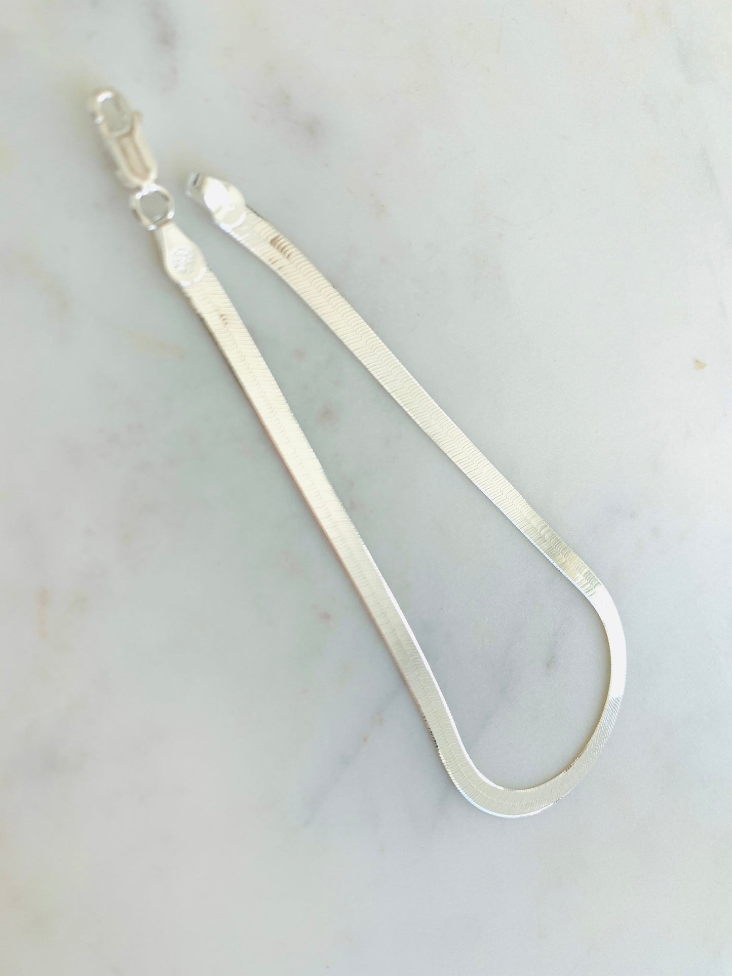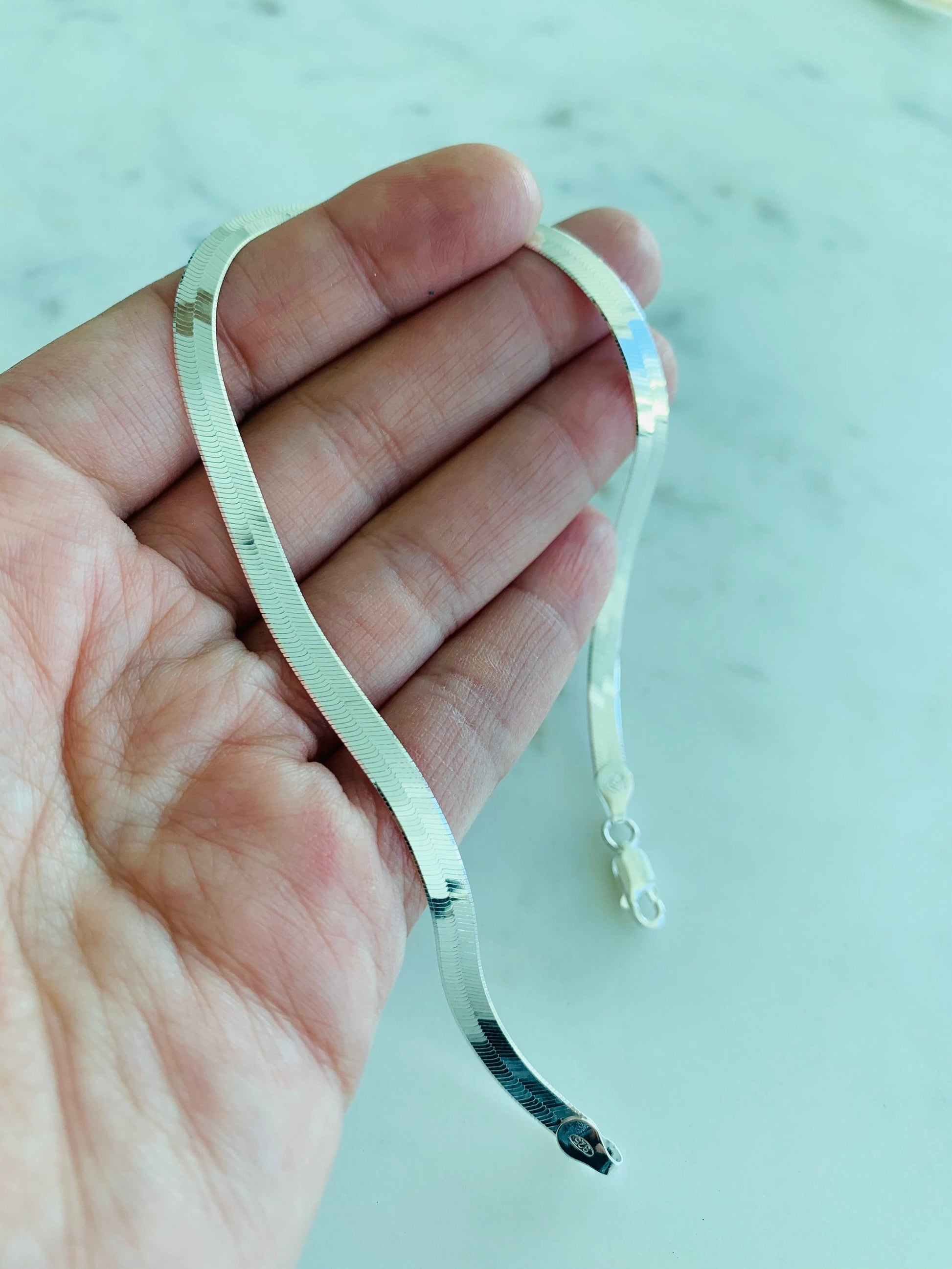 Sterling Silver Herringbone Anklet | 4mm Wide Chain | Modern Shine