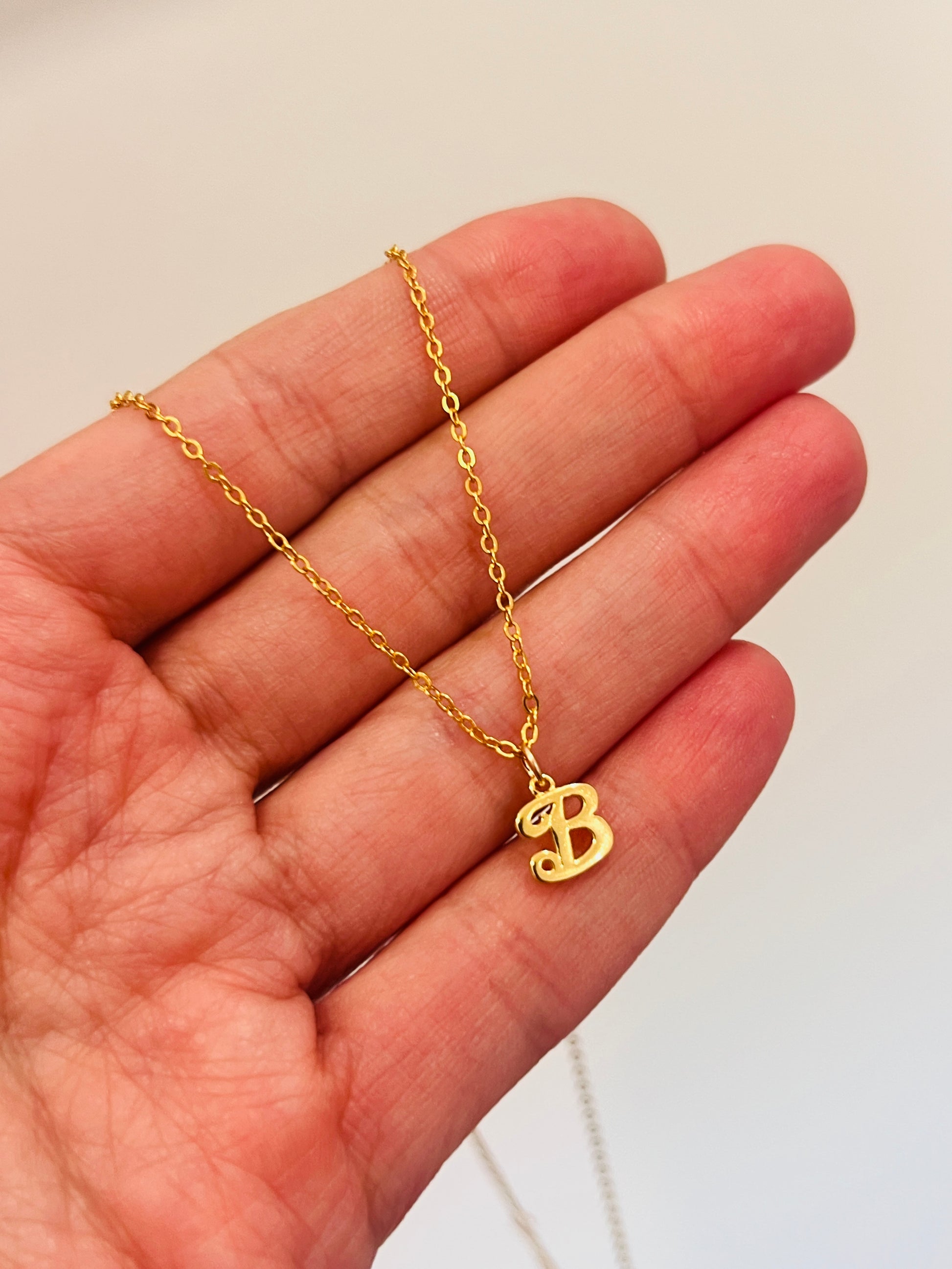 Sterling Silver Necklace with Script Initial Charm | 16" or 18" Length